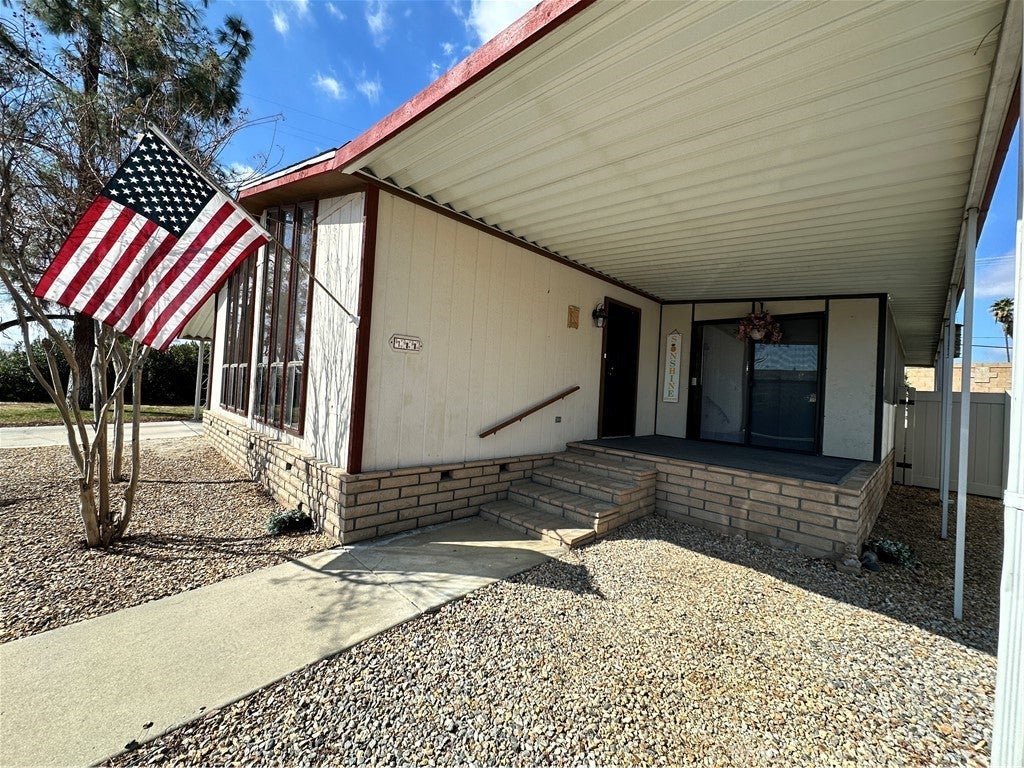 Motivated seller for this upgraded 2-bedroom, 2-bath gem in the beautiful, picturesque Soboba Springs 55+ gated park. Nestled at the end of a quiet cul-de-sac, this move-in ready home is bursting with upgrades: sleek quartz countertops, soft-close cabinetry, newer appliances, stylish French doors in dining room and main bedroom plus more! Bonus solar panels power a newer (2022) HVAC system-keeping you cool while saving hundreds every summer! Enjoy your morning coffee in the bright sunroom or watching the sunrise from the cozy front porch with stunning views of the San Jacinto mountains. Fully fenced yard to keep your pets safe and no immediate neighbor on one side for added peace and space. Don’t wait – schedule your tour today and get your offer into motivated seller!