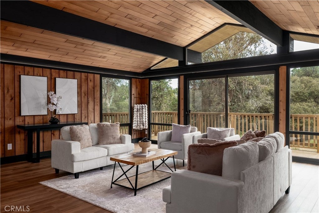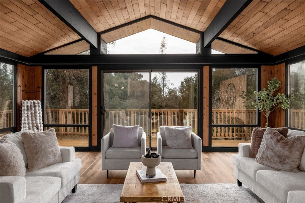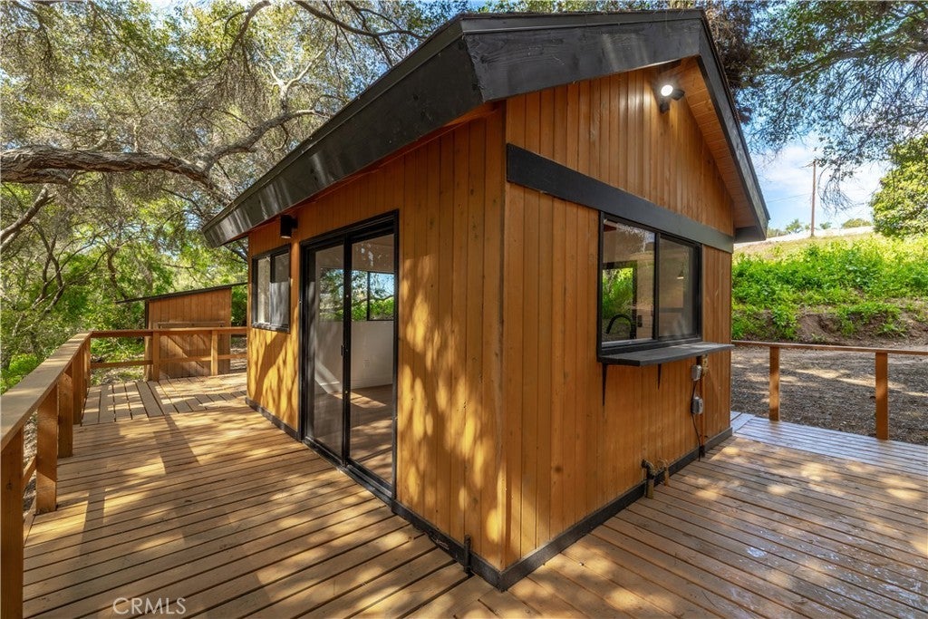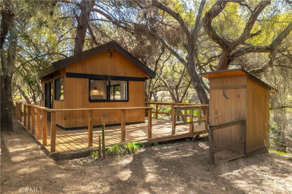 Welcome to a rare custom cedar estate set on 3.58 private acres where nature, craftsmanship, and modern design come together. This first-time-on-the-market property features an approx. 2,800 sq ft main residence (4 bed / 2 bath), a 1 bed / 1 bath ADU, and a detached flex retreat, all surrounded by mature oaks, a year-round stream, and a tranquil pond. The main residence has been extensively updated while preserving its character. The upper level features beautiful cedar ceilings, rich wood textures, and cove lighting, with a dramatic brick fireplace anchoring the living space. The remodeled kitchen is a centerpiece with custom cabinetry, quartz countertops, stone backsplash, new appliances, under-cabinet lighting, and a custom range hood. The guest bath includes a free-standing vanity, brass hardware, fluted tile, and limewash walls, while the primary suite is a serene retreat with floor-to-ceiling windows, a walk-in closet with built-in cabinetry, and a master bath featuring a walk-in rain shower, slate tile, free-standing vanity, and limewash walls. The Jr. ADU / Next-Gen suite boasts a white oak kitchen with quartz countertops, a bathroom with zellige tile and brass hardware, providing flexibility for multigenerational living, guests, or rental potential. Outdoor living is exceptional, with a wrap-around wood deck, mature oak groves, and a year-round stream feeding a pond with a fountain, creating a picturesque and peaceful setting. A studio/workshop with kitchenette and wrap-around deck adds versatile space for creative, office, or potential ADU use. The 3.58-acre grounds are meticulously landscaped, featuring fresh sod near the ADU, mature fruit trees, and a concrete and gravel driveway. Additional highlights include solar with battery storage, an automatic Generac generator, and epoxy-coated garage floors. Private, scenic, and full of character, Patti Oaks offers a rare opportunity to own a custom estate where nature, craftsmanship, and modern luxury finishes—including quartz, stone, zellige tile, fluted tile, slate tile, cove lighting, and built-in closet systems—come together to create an extraordinary lifestyle.