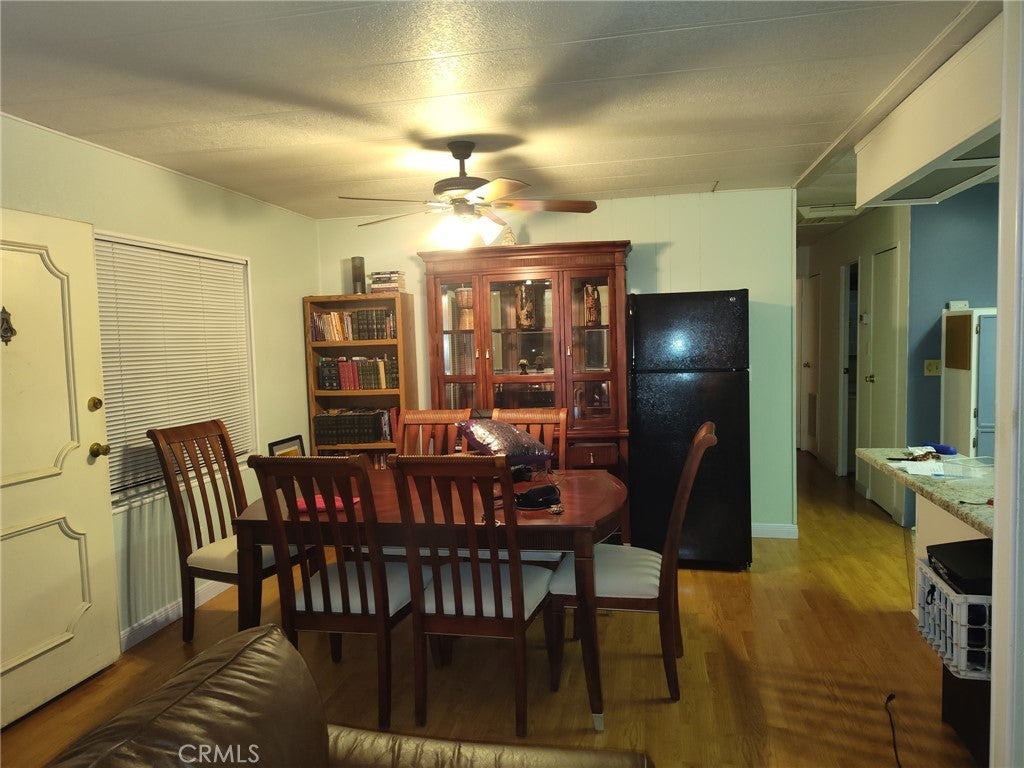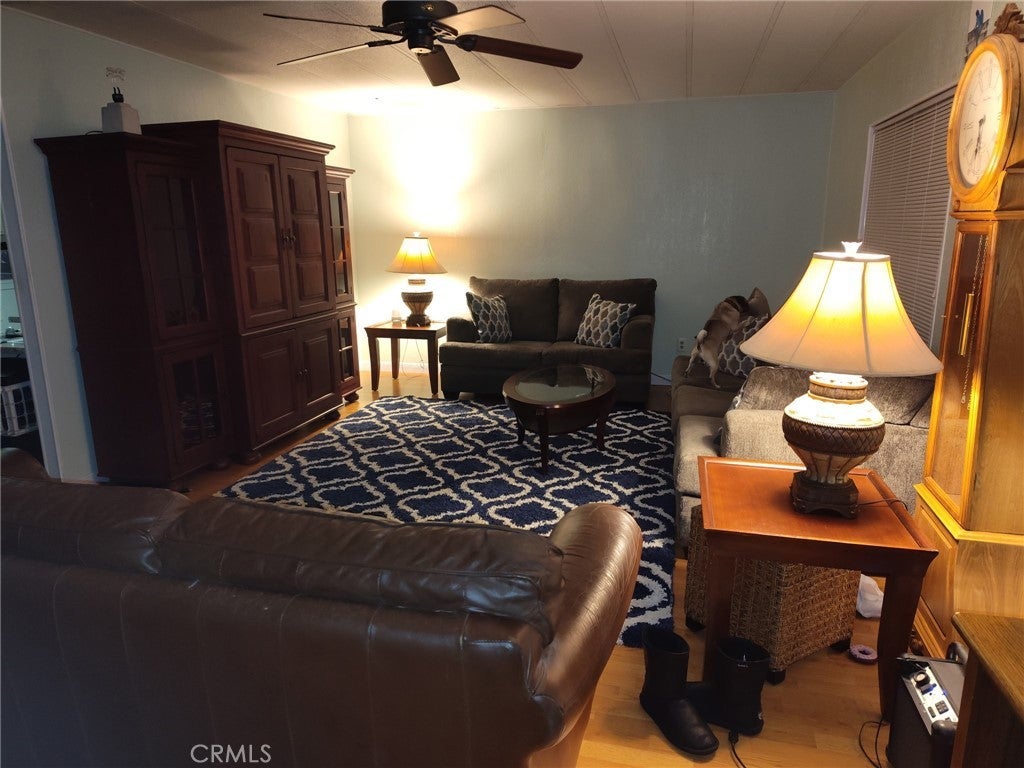 Beautiful Home is on a corner lot with a Huge Backyard !Huntsman Mobile Home Park!Community is for 55+ Amenities Include heated pool, spa ,large covered patio area with barbecue , exercise room & social Activites .Open Floor Plan ! Home features 2 bedrooms and 2 bathrooms , Laundry room, ceiling fans, Beautiful wood Floors !All appliance included washer and dryer!Property has a private backyard with fruit trees ,Orange, Lemon and 2 Shed!