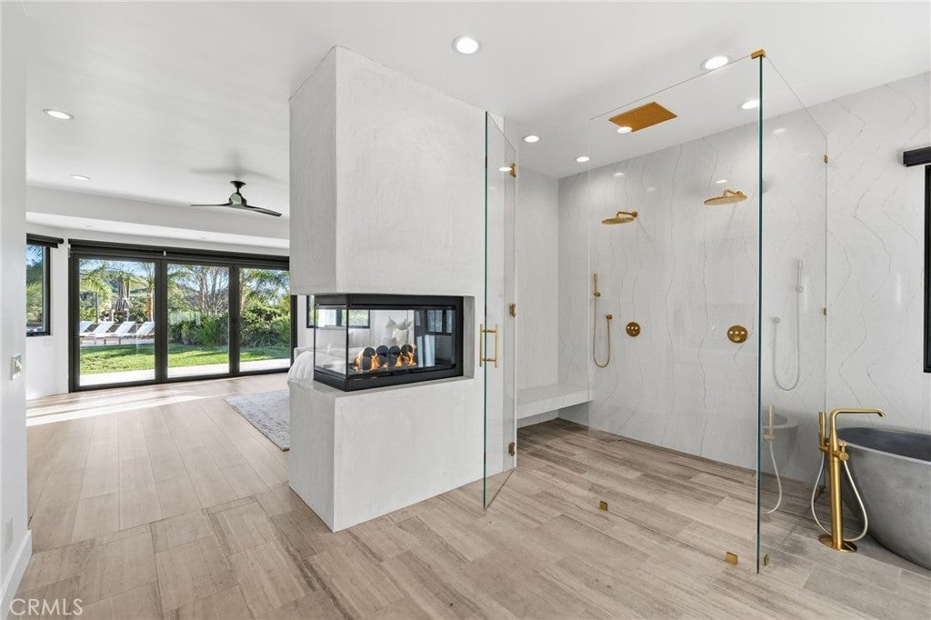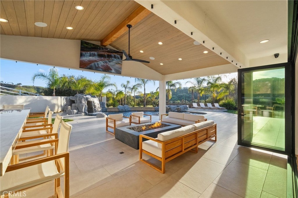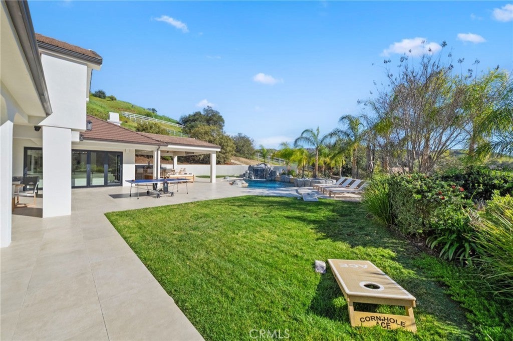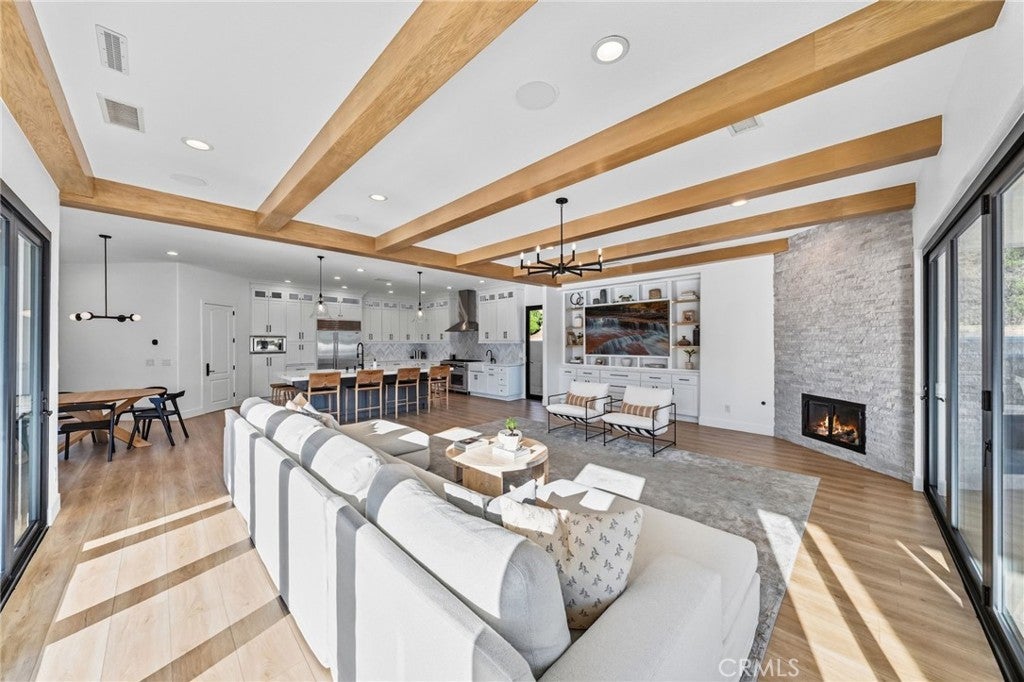 Welcome to a truly one of a kind, fully renovated single story estate, ideally situated in what is arguably one of the best locations De Luz has to offer. Perched at the top of the mountain while still just minutes from town. Set behind a private gated entrance and fully fenced for added privacy, this exceptional property combines luxury, functionality, and lifestyle in one remarkable offering. Spanning just over 4,000 square feet, the home features 4 spacious bedrooms and 4 bathrooms, including three secondary bedrooms with their own en-suite baths, each living like a private master suite, while the fourth bedroom is conveniently located across from a full bathroom. Designed with both comfort and style in mind, the home showcases high ceilings, stunning exposed beams, and an open, light filled floor plan enhanced by pocket doors in multiple rooms for seamless indoor outdoor living. The expansive kitchen is an entertainer’s dream, offering ample space, thoughtful design, and effortless flow into the main living areas. The primary suite is equally impressive, with pocket doors leading directly to the backyard and a beautifully appointed bathroom retreat. Set on approximately 8 acres, the property offers endless possibilities, including room to expand, private trails, and a resort style outdoor experience. Enjoy a sparkling pool and spa, a multipurpose sport court, and a covered patio featuring pitched beamed ceilings, custom tile flooring, misters, ceiling fans, built-in lighting, and multiple TVs. The outdoor kitchen is fully equipped with a built in pizza oven perfect for hosting and entertaining, along with the added luxury of an outdoor shower. Additional highlights include an oversized, nearly 700 square foot garage with custom epoxy flooring, extensive cabinetry, and a water softener system. This home truly has it all… privacy, luxury, space, and unmatched amenities creating a property that feels like it was pulled straight from a Pinterest dream. Opportunities like this are rare. Reach out today, this one will not last long.