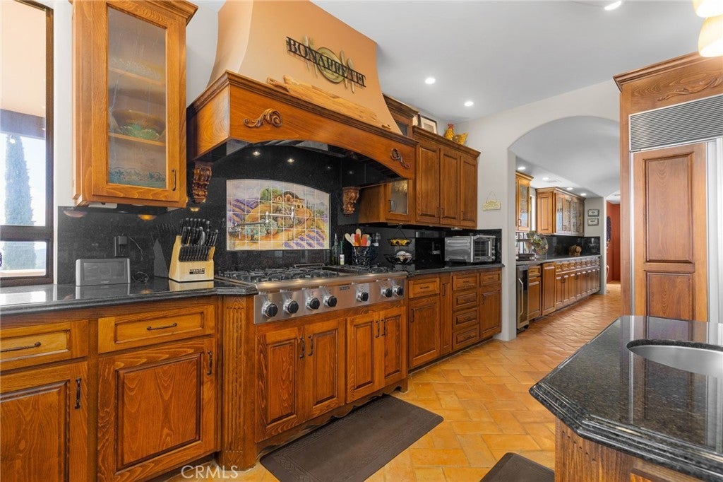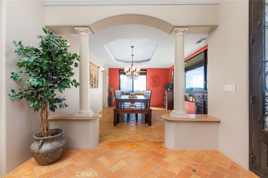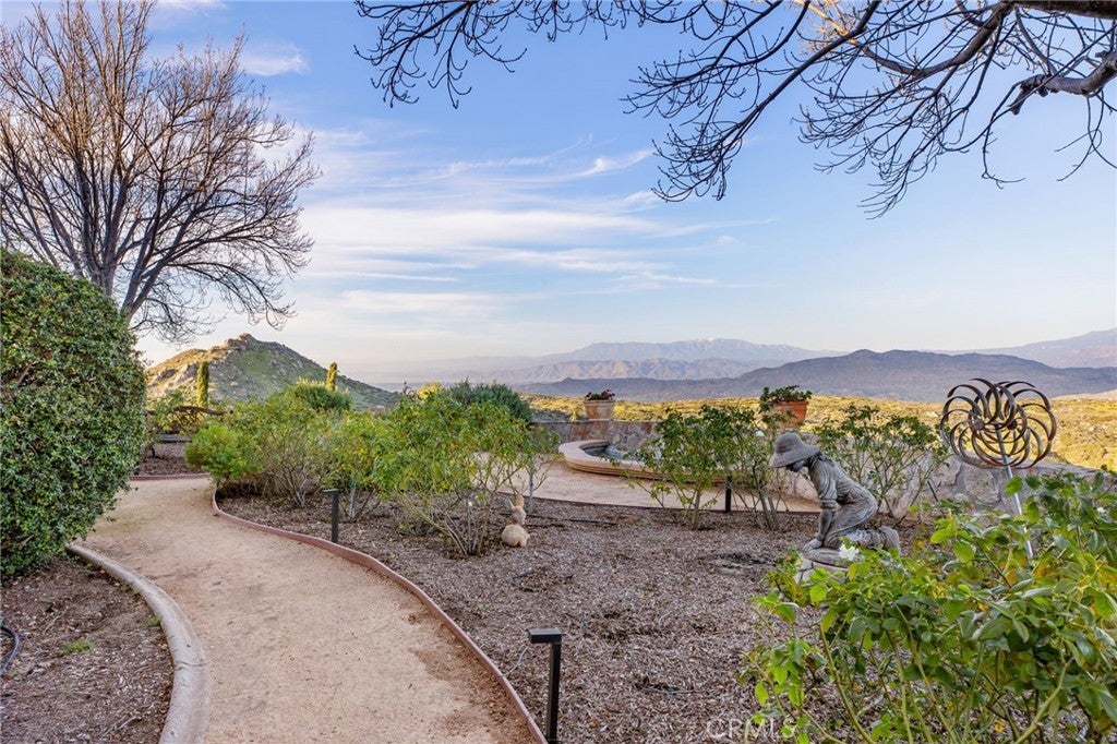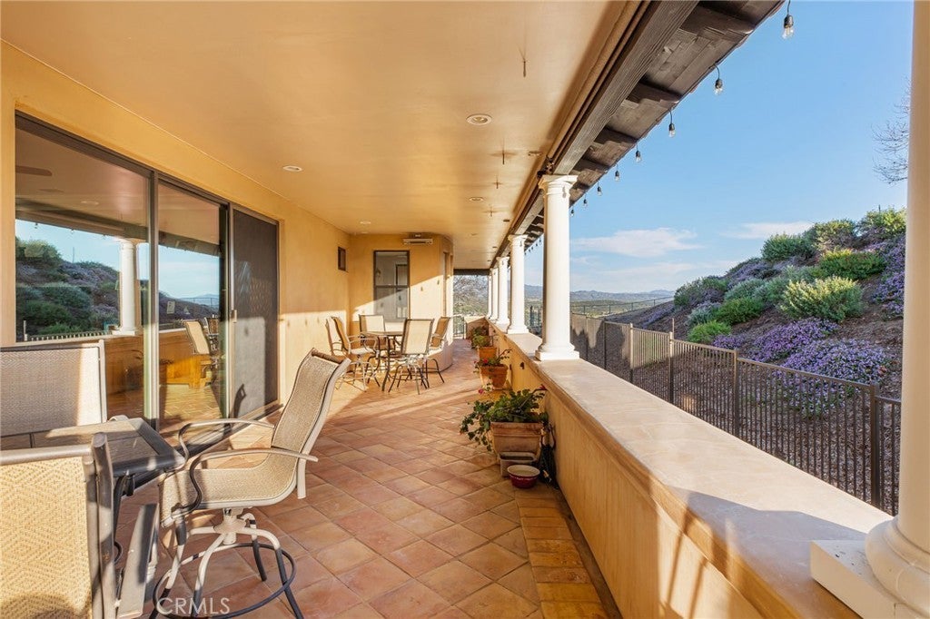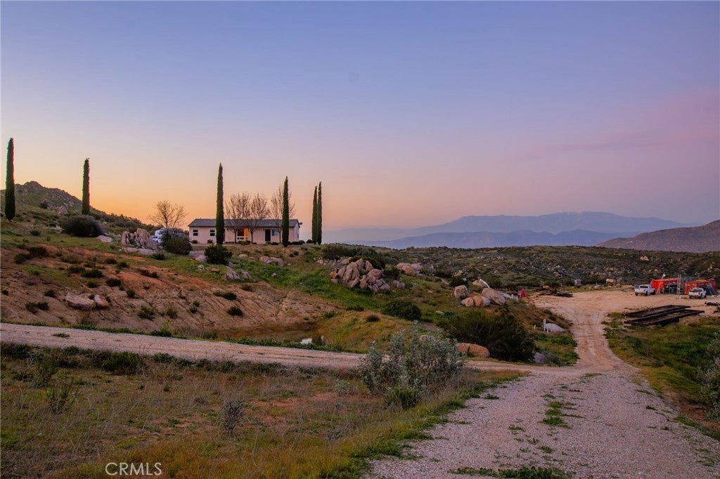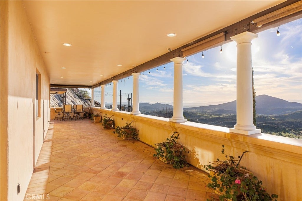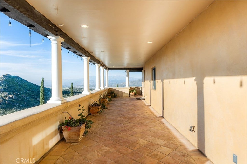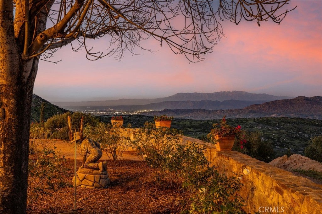 They say you can't move a mountain, but you can buy one here. Extraordinary Tuscan inspired estate set on approximately 20 acres in the Sage/Temecula wine country area, offering breathtaking sunrise and sunset panoramic 360 views stretching from Temecula to San Gorgonio and Santiago mountain ranges. Views from every window in the home. Full guest house, separate 18,000 sqft graded pad perfect for an equestrian area and barn/full roping arena. Just a short 12 minute drive from Temecula Wine Country, shopping, dining. The impressive 5,301 SQFT main residence was thoughtfully designed offering a flexible floor plan with 5 to 6 bedrooms and 6 bathrooms. Inside you will find elegant living spaces that actually include materials mined from the property in the rock/slate fireplace. Including a library, exercise room, theater/game room and formal dining area. The chef’s kitchen is equipped with premium appliances including a Sub-Zero refrigerator, built-in Miele coffee system, 2 dishwashers, large butlers pantry and an oversized walk in pantry complete with dumbwaiter. Temperature controlled 700 bottle wine room offers the perfect environment for collectors. A separate 1,793 SQFT guest house provides 3 bedrooms, 2 bathrooms and its own laundry facilities. Outdoor living spaces are equally impressive with approximately 5,000 square feet of patio areas including a 2,500 square foot covered patio and an additional 2,500 square foot open patio designed for entertaining. The outdoor kitchen also featuring materials mined from the property, features two BBQ grills, a pizza oven, sink with disposal, refrigerated drawers, water heater and plumbed patio heaters for year-round gatherings. The beautifully landscaped grounds feature 50 producing olive trees, 36 cypress trees, fragrant Grosso lavender plantings and a charming rose garden. Three raised masonry garden planters provide space for vegetables or herbs. Additional features include a 970 foot deep private well, 15,000 gallons of water storage, a 14.2 kW OWNED solar system, 1 newer Generac generators with automatic transfer switch and 1 propane tank that powers everything for dependable backup power. Technology upgrades include five internet routers for strong connectivity across the property all with some extra passive income generation. The property is county registered for Airbnb, creating an exciting opportunity for short-term rental income or luxury retreat use.