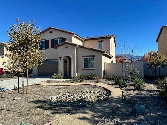 Beautiful VIEWS home is almost new! Convenient to schools, including San Jacinto College, stores, restaurants, movie theater, Soboba Casino Resort and more. The home is on a spacious lot and features four bedrooms and three full bathrooms. Spacious open concept living areas with plenty of natural sunlight, LVP flooring downstairs. Plenty of room for a full-sized dining room table. The kitchen features a walk-in pantry, granite counters, stainless steel appliances, including the refrigerator, and a nice sized kitchen island that includes the breakfast bar counter for casual dining. Convenient for guests, or a home office, there is a downstairs bedroom and full bath! Upstairs features the laundry room, a spacious primary room with beautiful ensuite and large walk-in closet, plus two additional bedrooms. Full disclosure - solar is currently under review with builder in need of repair.