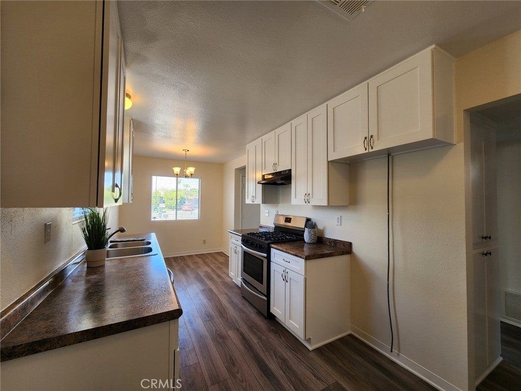 Welcome to Valle Hermosa, one of the most affordable places to retire! This 55 or better age restricted community is located at Hemet's west end and is close to shopping, dining, banking, parks, and more! This home sits on a large pie-shaped lot near the end of a quiet cul-de-sac. The yard provides privacy under the covered patio in the back, and is cross-fenced to provide a nice dog-run, maybe a garden, or even additional space to park a small trailer or more (buyer to verify with CC&R's/HOA). The home has recently been updated with LVP flooring, all new paint, white shaker cabinets in kitchen and bathroom, and an energy efficient AC. One of the best priced homes available in the community! Don't miss it!