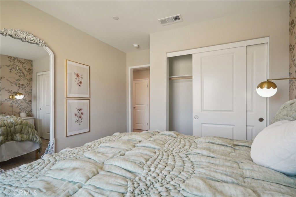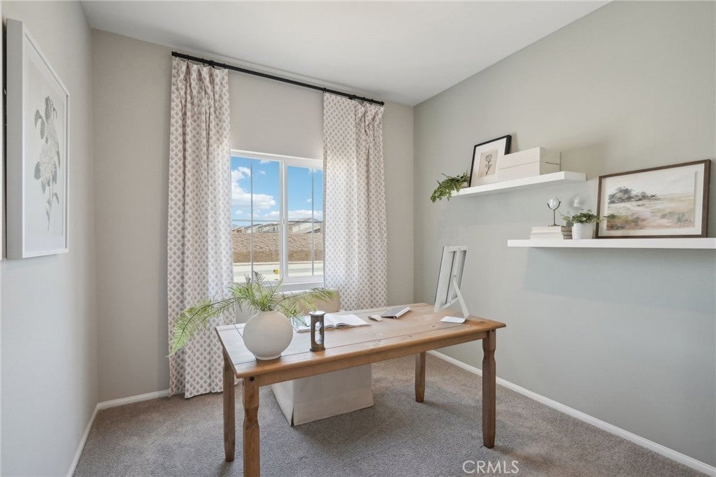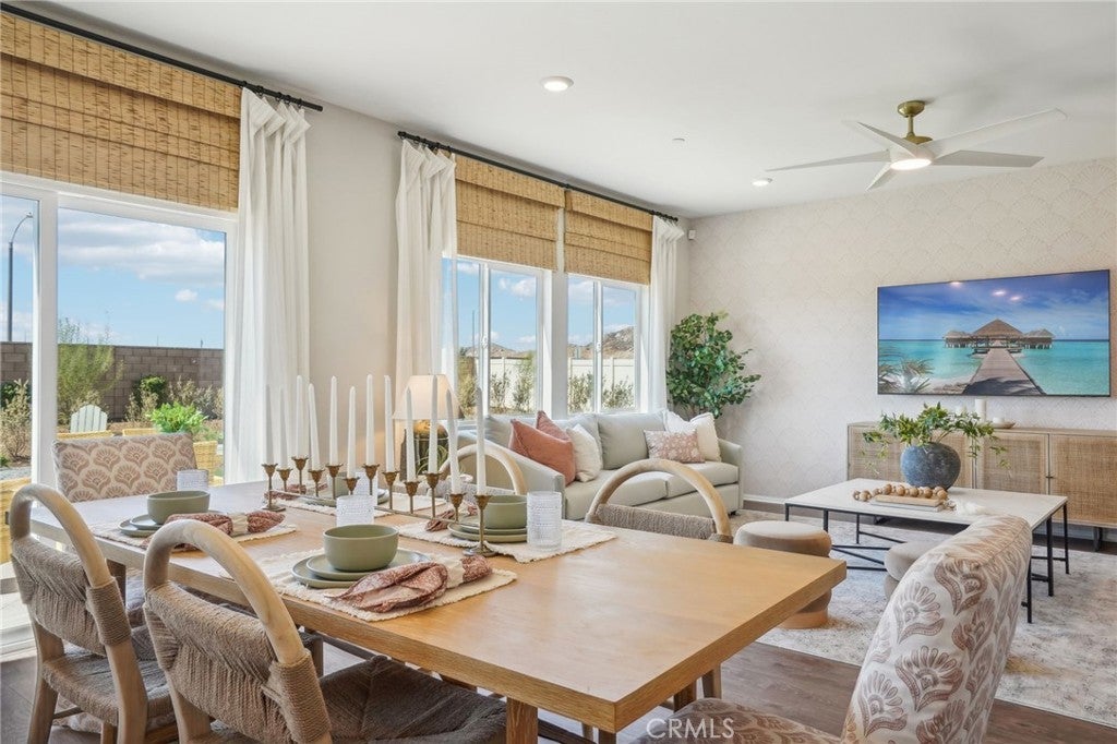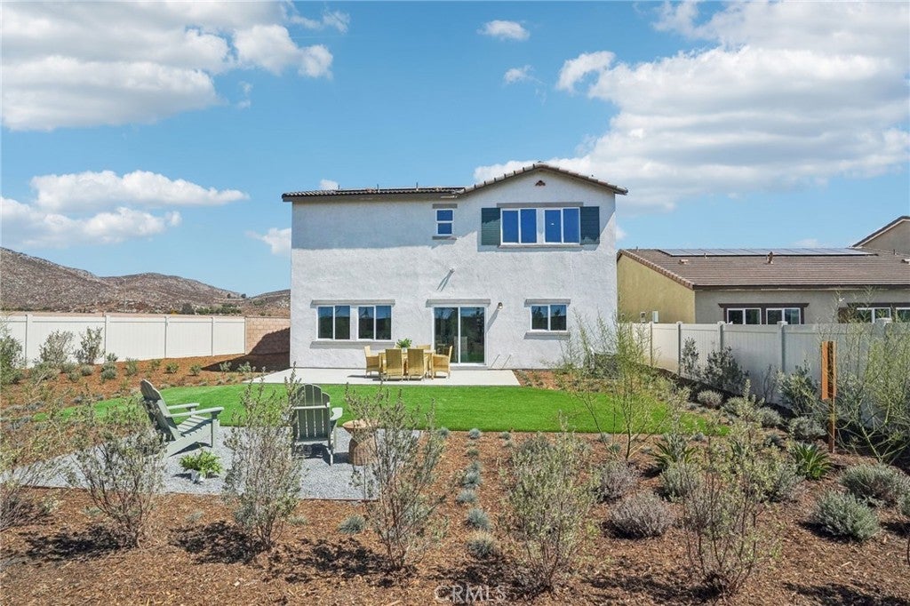 **SELLER IS ONLY ACCEPTING CASH OFFERS AND PURCHASES ON THIS HOMESITE AT THIS TIME** This 2,311-square foot California Tuscan two-story home, has 5 bedrooms, 3 bathrooms. One of the bedrooms with a walk-in closet and full bathroom is DOWNSTAIRS. The eat in kitchen island area has Bianco Tiza Quartz counters, built-in stainless-steel appliances and a pantry closet. There is white shaker-style cabinetry throughout, lots of included recessed lighting, plush carpet in bedrooms, closets, and stairs, and vinyl in main living areas! Upstairs is a primary bedroom with ensuite bathroom and walk-in closet, 3 additional bedrooms and full bathroom, loft, and a laundry room. There is also a direct-access 2-car garage PRE-PLUMBED for an electric car! This truly modern home has all the Smart Home features you would expect and, is landscaped and irrigated in the front yard. The community is situated close to park and freeway access. This home will be ready to move in June of 2026.
