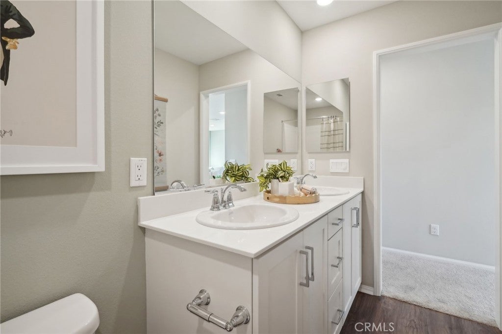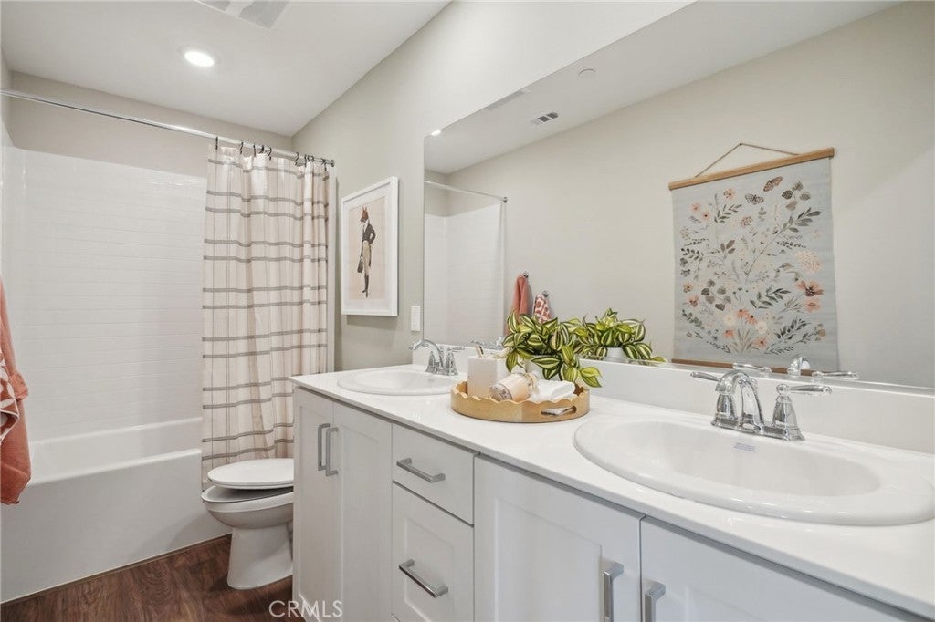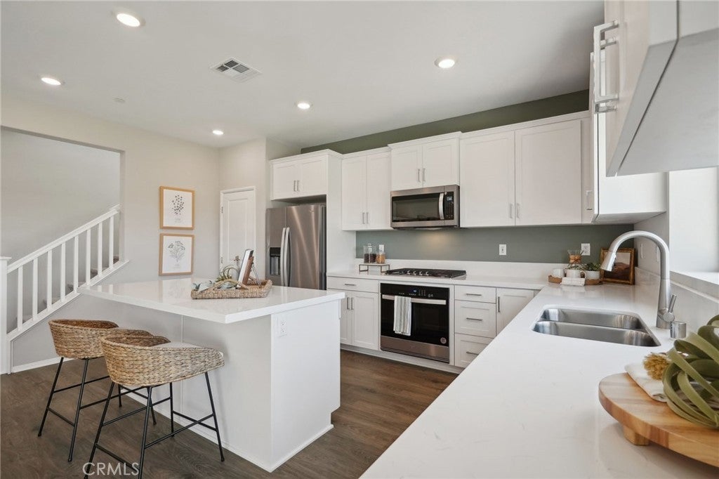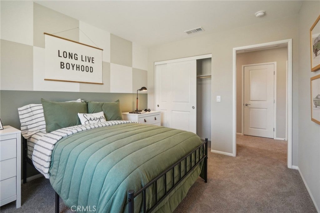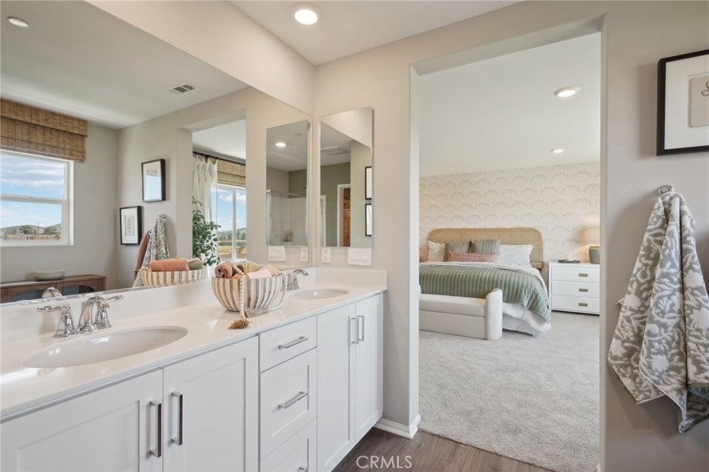 **SELLER IS ONLY ACCEPTING CASH OFFERS AND PURCHASES ON THIS HOMESITE AT THIS TIME** This 2,311-square foot California Tuscan two-story home, has 5 bedrooms, 3 bathrooms. One of the bedrooms with a walk-in closet and full bathroom is DOWNSTAIRS. The eat in kitchen island area has Bianco Tiza Quartz counters, built-in stainless-steel appliances and a pantry closet. There is white shaker-style cabinetry throughout, lots of included recessed lighting, plush carpet in bedrooms, closets, and stairs, and vinyl in main living areas! Upstairs is a primary bedroom with ensuite bathroom and walk-in closet, 3 additional bedrooms and full bathroom, loft, and a laundry room. There is also a direct-access 2-car garage PRE-PLUMBED for an electric car! This truly modern home has all the Smart Home features you would expect and, is landscaped and irrigated in the front yard. The community is situated close to park and freeway access. This home will be ready to move in June of 2026.