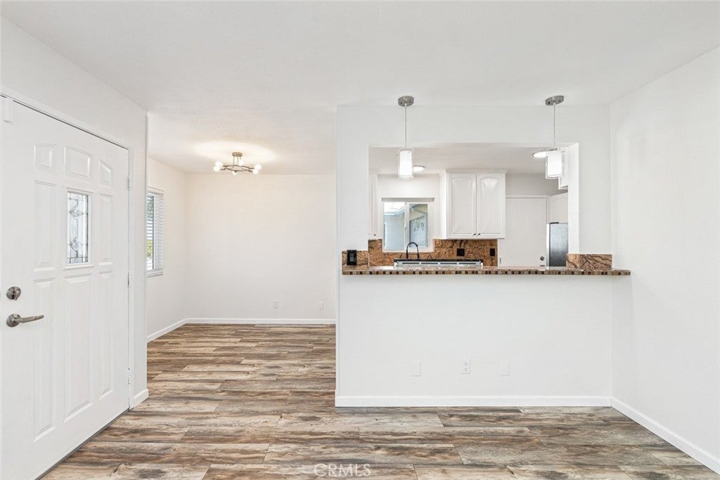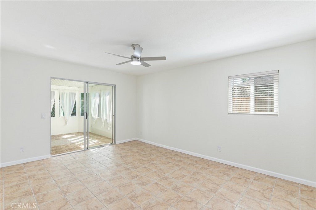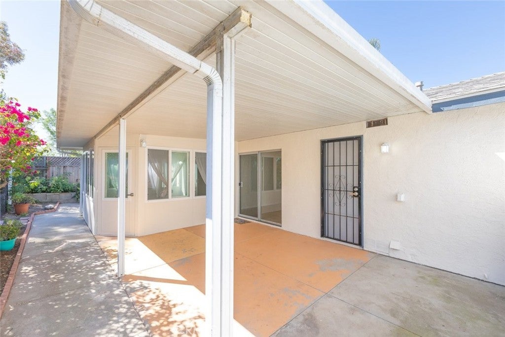 Tastefully updated and move-in ready, this single-level home is located in a highly desirable 55+ community with low HOA fees. Offering a spacious and inviting layout, the living area flows seamlessly into a beautifully upgraded kitchen featuring granite countertops and breakfast bar seating—perfect for casual dining and entertaining. This 2-bedroom, 2-bath home also includes a versatile sunroom ideal for a craft space, gym, yoga studio, reading nook, or art studio. Surrounded by windows, the room is filled with natural light and features a security screen door with direct access to the backyard. The home has been completely refreshed inside and out, showcasing thoughtful upgrades throughout. The primary suite is generously sized with a large walk-in closet, updated vanity and shower area, and direct access to the sunroom. The secondary bedroom is equally spacious and offers sliding glass door access to a covered back patio. Recent improvements include fresh interior and exterior paint, new baseboards, new doors with brushed nickel hardware (keyed alike), updated electrical outlets, new front windows, new front door with security screen, new blinds, and updated lighting fixtures throughout. Tile and laminate flooring run throughout the home, along with new screens on all windows and doors. The front bathroom has been stylishly updated with a modern vanity, lighted mirror, new fixtures, and brushed nickel finishes. Enjoy a beautifully landscaped, drought-tolerant front yard and a private backyard with lush green views, a large covered patio perfect for entertaining, and a sunny garden bed. Additional features include an attached garage with built-in storage, fresh paint, washer and dryer hookups, a back door with security screen access to the patio, and direct entry into the kitchen. Professional photos coming soon.