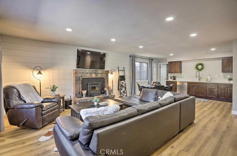 Welcome to 304 E Fairway Blvd! This fully renovated, move-in ready home is just minutes from everything the mountain has to offer, including Big Bear Lake, Snow Summit, Bear Mountain, the Big Bear Alpine Zoo, Big Bear Village, and local restaurants. Upon entry, you’re welcomed into a spacious great room featuring a cozy wood-burning stove. The upgraded custom kitchen offers quartz countertops, a Sub-Zero refrigerator, and a Wolf stove, making it both stylish and functional. The home also features LVP flooring, carpet in the bedrooms, a separate laundry room, 3 bedrooms, including a large primary suite, and 2 bathrooms. Step outside to enjoy the fenced backyard, perfect for relaxing weekends and BBQs. There is also a large custom two-door shed with plenty of room to store all your mountain toys. Situated on a level lot with ample parking for a boat or RV, this property offers both convenience and versatility. New roof put on in 2024. An added bonus: the home currently has a short-term rental permit in place, which may be used immediately in the interim while the new owner applies for their own permit.