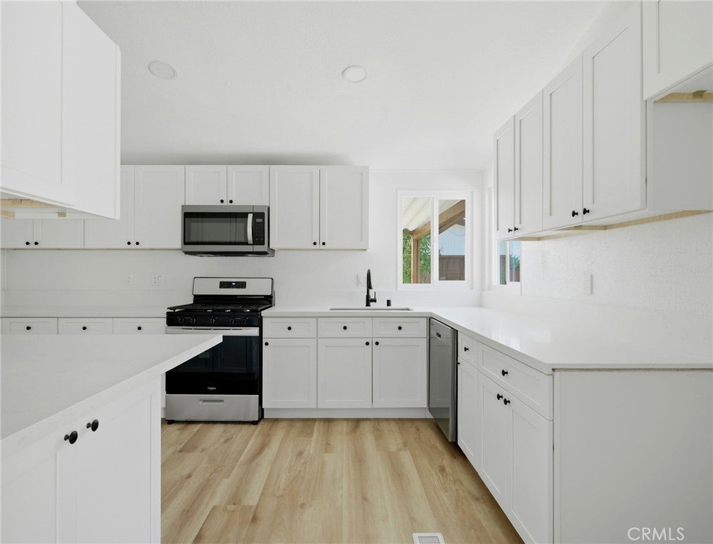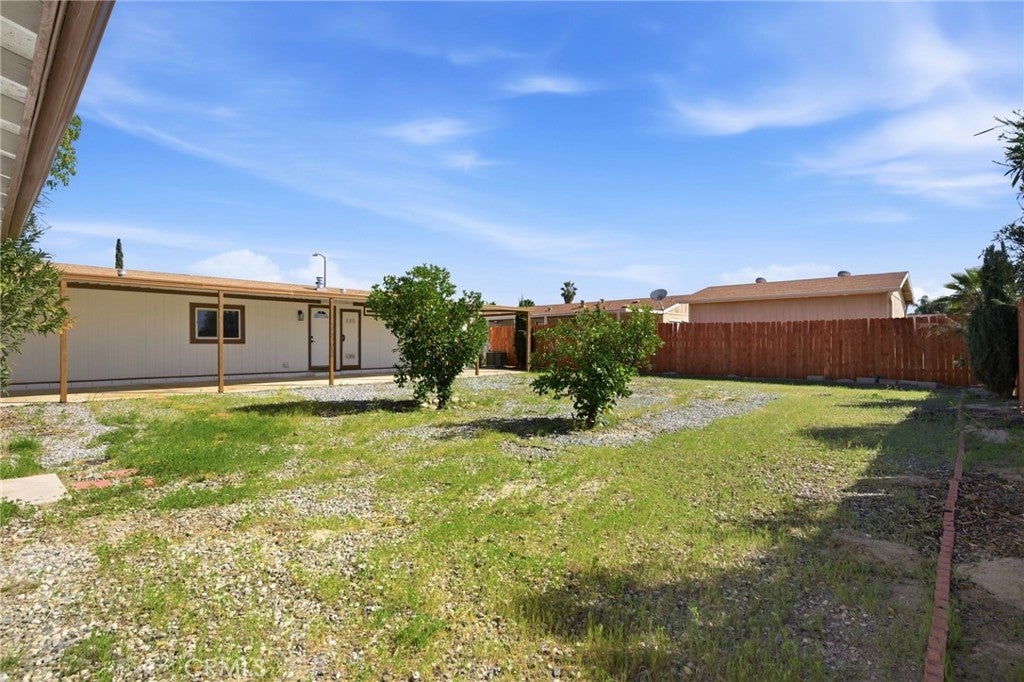 Welcome to your serene retreat in Hemet, CA! This charming 2-bedroom, 2-bathroom remodeled manufactured home sits proudly on its own land, offering you freedom with no HOA or park fees. Step inside to discover a beautifully updated interior featuring brand-new white cabinets and sleek solid surface countertops that exude modern elegance. The open-concept living area is bathed in natural light, creating a warm and inviting space for both relaxation and entertaining. The master suite provides a peaceful haven with ample closet space and an en-suite bathroom designed for ultimate comfort. An additional bedroom offers flexibility for guests or a home office. Enjoy the convenience of in-home laundry facilities and abundant storage throughout. Nestled within a tranquil neighborhood yet just moments from local shopping, dining, and recreational amenities, this home combines the best of country quietness with city conveniences. Whether you're sipping morning coffee on your private deck or hosting summertime gatherings in your spacious yard, this property promises endless enjoyment. Don’t miss out—make this remodeled gem your new haven today!