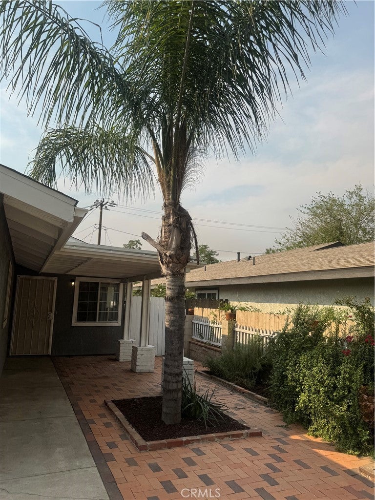 The owners have done many flooring, windows, doors, kitchen and bath upgrades inside the home over the years along with a water heater and new roofing around 2018. Lots of brick work in the front and side yard. The exterior of the home has a gray stucco finish with white trim. It was originally a 2 bedroom home but is now a 3 bedroom as a result of enclosing approximately 2/3 of the back of the garage and installing a closet. Tax rolls show it as a 3 bedroom but permits have not been verified. The garage door is still functional and opens up for a storage or small workshop area. Although there is no parking inside the garage, there is a large concrete parking area in front of the garage that can accommodate 3 vehicles AND the large concrete driveway in front of the gate can park 4 vehicles! Large side yard on the left that may be able to accommodate a small boat or RV. The covered patio in the back is ideal for family entertaining, kids and dogs! Easy upkeep yards. LOTS of mature landscaping and fruit trees! The matching Kenmore stainless steel refrigerator, stove, microwave and dishwasher are included in the sale! Overall, it appears that the home mainly needs some paint, baseboards and some other DIY repairs.