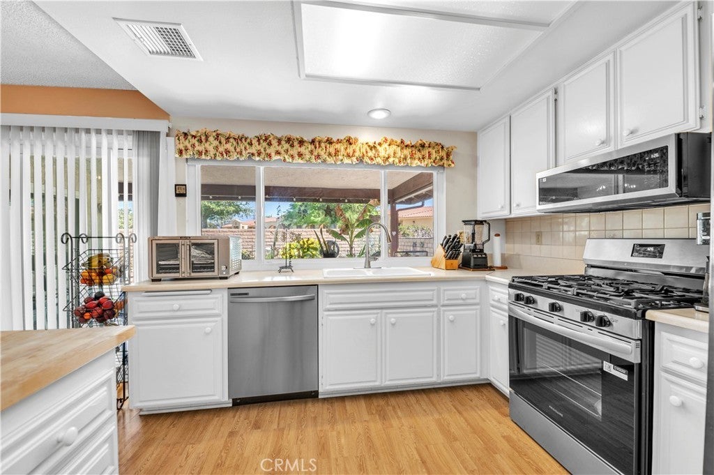This is one of the nicest homes in the community, very well taken care of 3 bedroom and 2 full bath. This home sits at the end of a very quiet cul-de-sac. # good size bedrooms, one overlooks the front of the house, while the master over looks the backyard. The living room has custom fireplace beautiful red brick. All the appliances are brand new as well as the butcher block counter on the island. The entire house has a lot of natural light. Relax under the back covered patio or have a quiet dinner, the kitchen has a window pass through. All the window have been replaced recently to dual pane easy slide open and close, all with plantation shutters. LOW HOA. LOW TAXES. NO BACK NEIGHBOR.. NO STEPS. Don't miss this home.