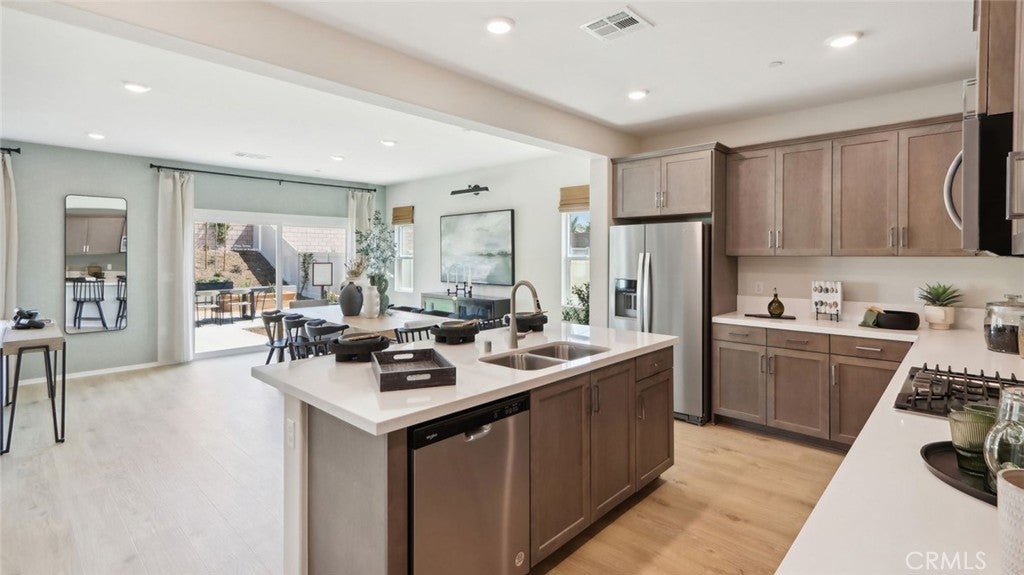 This 3,015 square foot two-story Tuscan facade home has a downstairs bedroom with full bathroom and a Den. The home has an open concept Great room and dining area and an island kitchen with stainless steel appliances, Quartz countertops, and a walk-in pantry. Cabinetry is Alto (Gray) shaker-style throughout, there is vinyl flooring in the main living areas and carpet in the bedrooms, stairs and Loft. Upstairs is the primary bedroom with ensuite and a large wrap-around walk-in closet, 3 additional bedrooms, a full bathroom, large Loft, and laundry room with counter. This home has Smart Home technology throughout, solar panels installed, and a 3-car garage pre-plumbed for an electric car. The home is fully landscaped and irrigated in the front yard. We anticipate the home will be ready for move in by the end of May of 2026. This is an all electric community.