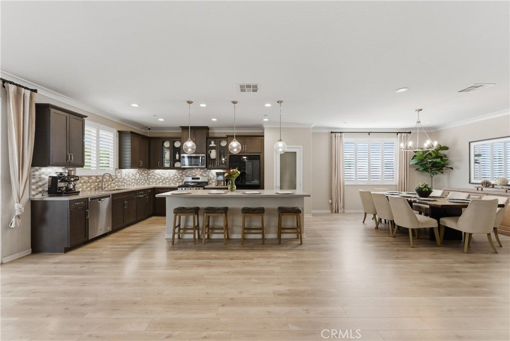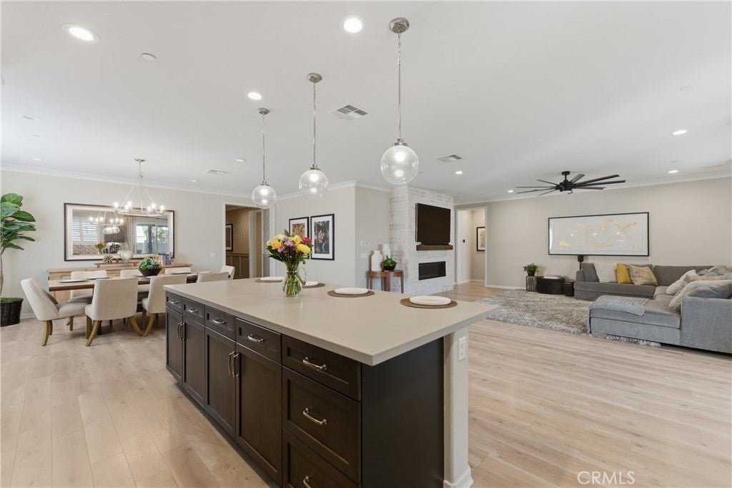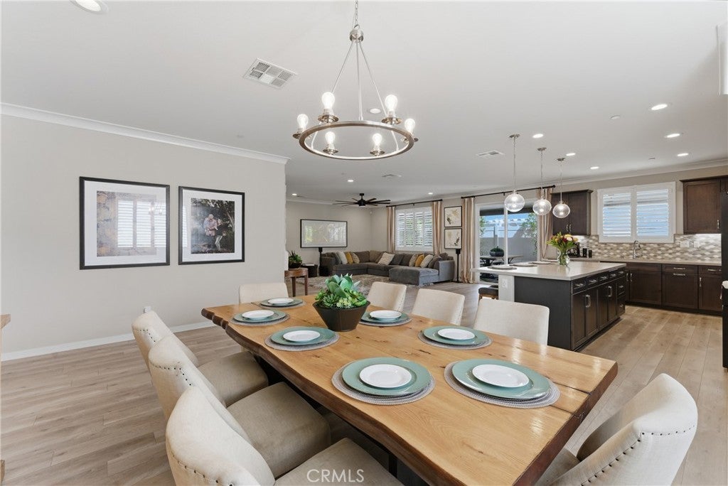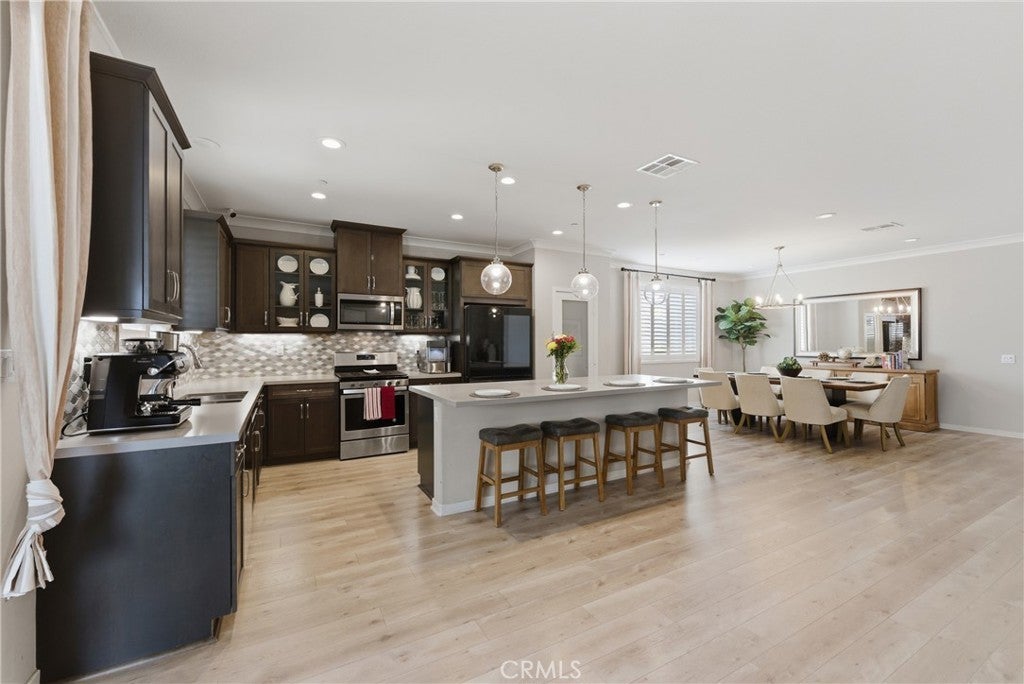Welcome to the former MODEL HOME—where luxury, design, and upgrades are taken to the next level. Located in the highly sought-after Province community of Heritage Ranch, this stunning single-story Piedmont model is the one everyone walked through and fell in love with—and now it can be yours. Spanning approximately 2,293 sq ft, this beautifully curated home offers 3 spacious bedrooms and 2.5 baths, loaded with premium finishes and designer touches throughout. Situated on a quiet cul-de-sac, the wide driveway and pristine 3-car garage set the tone before you even step inside. From the moment you enter, you’re greeted by a grand, open hallway leading past two generously sized bedrooms and a full bath—perfect for guests or family—along with a spacious laundry room designed for both function and convenience. Step into the heart of the home and you’ll immediately feel the difference—this is where the model home truly shines. The open-concept layout seamlessly connects the family room and chef’s kitchen, showcasing high-end upgrades, an expansive layout, and the kind of space that was built to impress. The primary suite is a private retreat, offering comfort, elegance, and a large walk-in closet designed to fit your lifestyle. Out back, enjoy a fully finished backyard oasis complete with custom landscaping, artificial turf, sleek concrete, and a built-in BBQ island—perfect for entertaining or unwinding in style. And the 3-car garage? Fully finished with epoxy floors and upgraded walls—clean, polished, and ready for anything. This isn’t just a home—it’s the one they chose to showcase. Now it’s your turn to live in it.