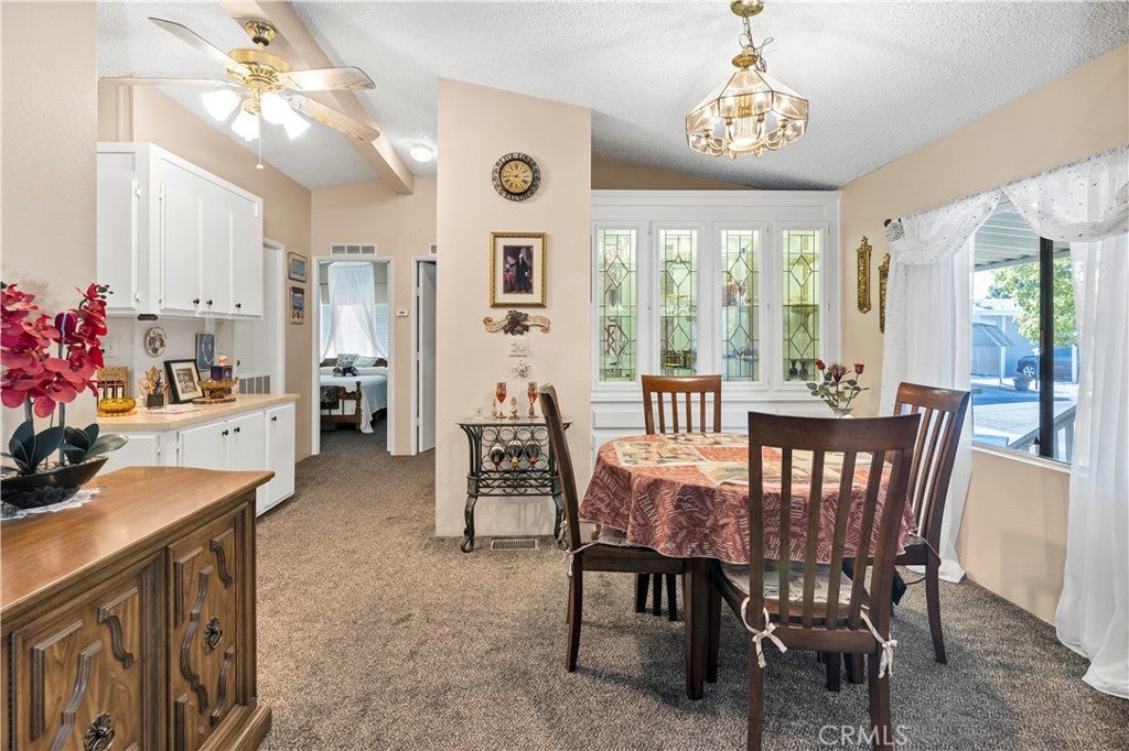 Turnkey 3-Bedroom Home in Resort-Style Gated Community – The Lakes at Hemet West. Discover resort-style living at its best in this beautifully maintained 3-bedroom, 2-bath manufactured home located in the highly desirable 55+ gated community of The Lakes at Hemet West. Welcome to Space 759, ideally situated near the clubhouse and offering stunning mountain views from the spacious covered front porch. This move-in ready home features a bright and open floor plan with tall ceilings and neutral tones throughout. The kitchen with breakfast bar flows effortlessly into the living and dining areas, perfect for entertaining or relaxing. Each bedroom is generously sized with large closets, and the bathrooms offer a modern design, including a walk-in shower and soaking tub. Upgrades include a new air conditioning compressor and furnace—both installed in spring 2025—ensuring comfort and efficiency year-round. Additional features include a large utility room with extra storage, covered carport, and an oversized shed. Located on a premium corner lot, this home enjoys extra privacy, shade from mature trees, and low-maintenance landscaping with citrus trees, allowing you more time to enjoy the community’s incredible amenities. Residents of The Lakes at West Hemet enjoy: A 9-hole private golf course, Resort-style swimming pool and spa, Clubhouse with billiards, shuffleboard, and social events, Walking trails and pickleball courts, Gated entry and active lifestyle options. Just a short walk or golf cart ride from the clubhouse and community facilities, this is a prime opportunity to enjoy active adult living in one of Hemet, California's top-rated senior communities. Don’t miss your chance to own this beautiful senior manufactured home in Hemet, CA—schedule your private tour today!