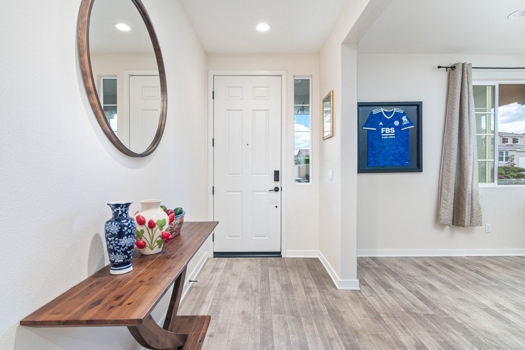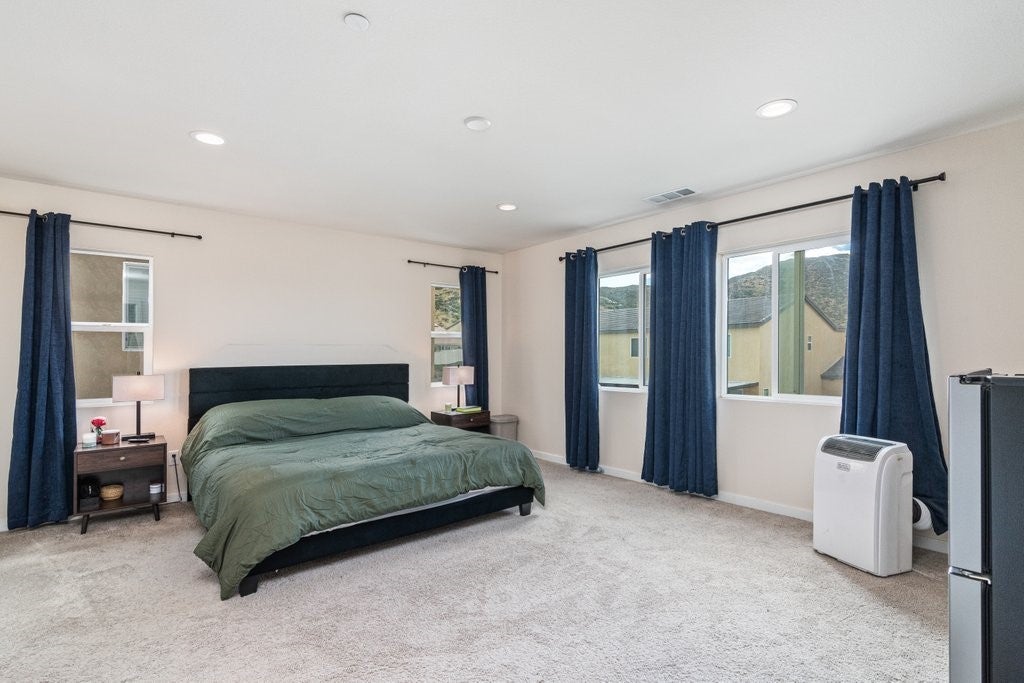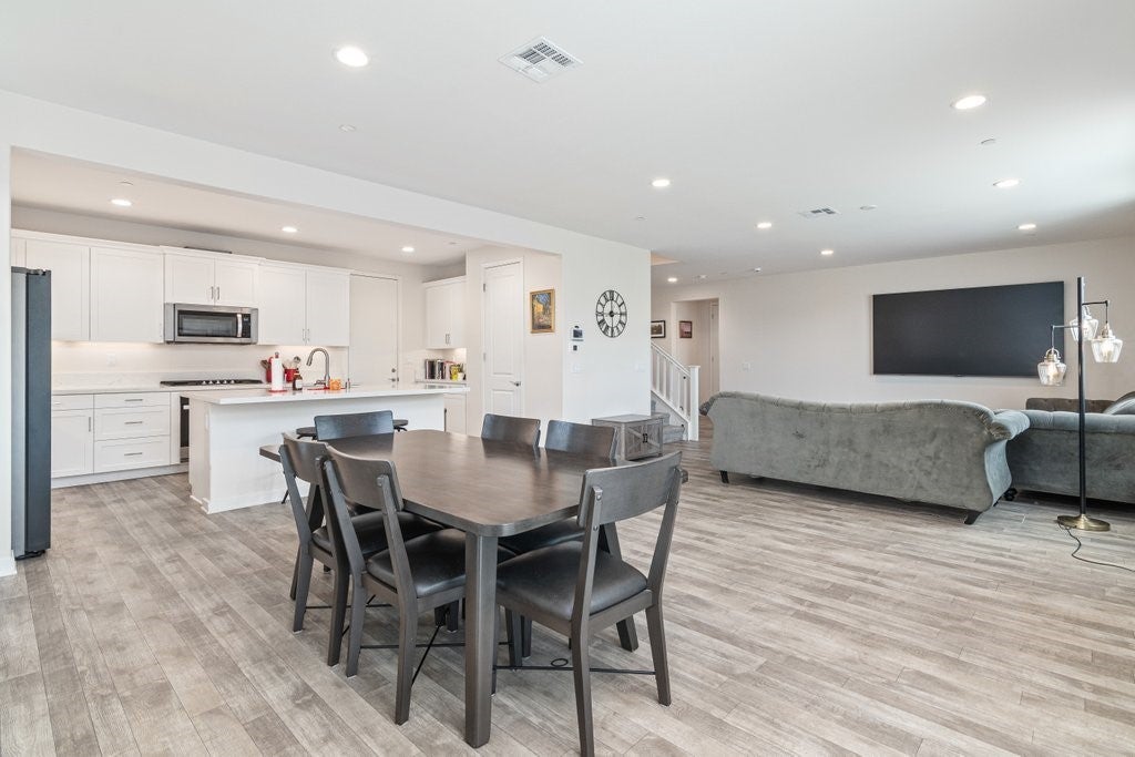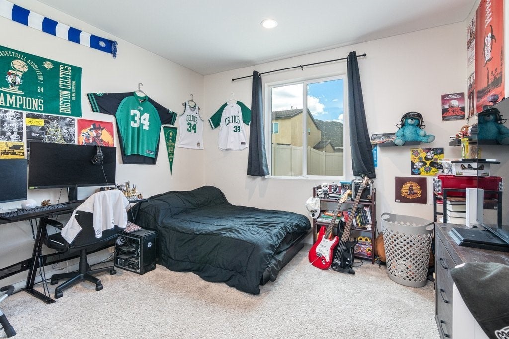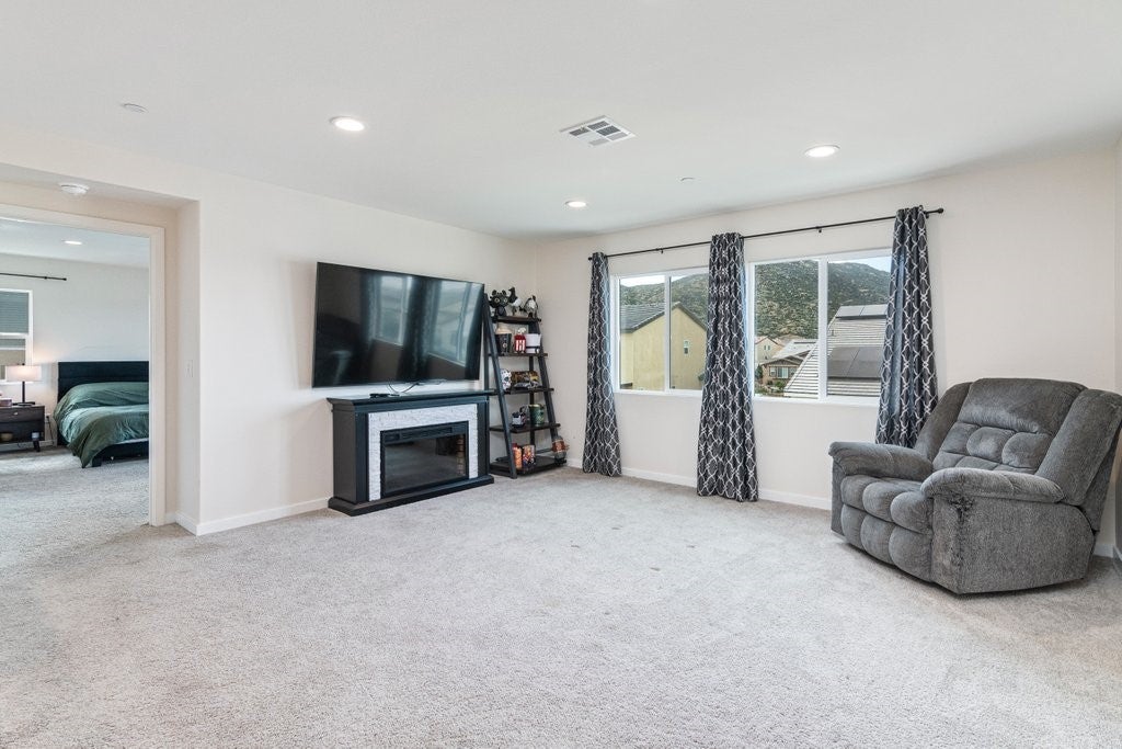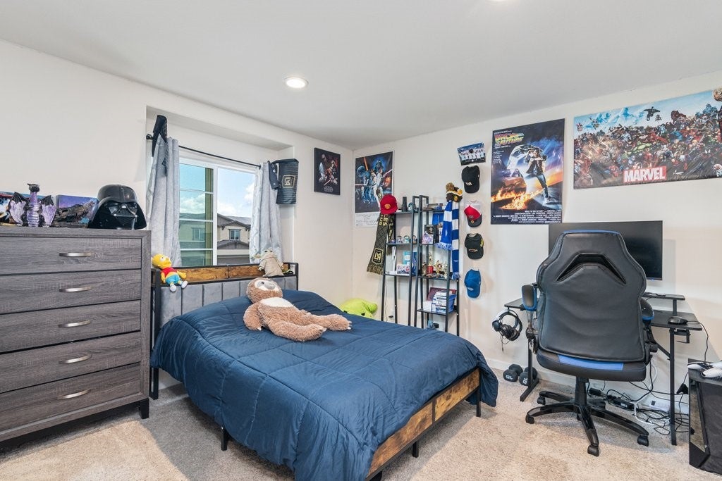 Largest floor plan in the desirable North Sky community of Winchester. This two-story home offers 5 bedrooms and 3 bathrooms, including a main-level bedroom and a nearby bathroom, and a spacious three-car garage. Open floor plan with 9 ft ceilings downstairs, recessed lighting, and abundant natural light throughout. Kitchen features include quartz countertops, a center island, a walk-in pantry, and stainless steel appliances including a built-in range, gas oven, microwave oven, and a dishwasher. The kitchen opens to the great room, ideal for everyday living and entertaining. Upstairs includes a spacious loft, laundry room with gas hookups, and a primary suite with double sinks, walk-in shower, and a extra large walk-in closet. Additional features include a tankless water heater, high-efficiency electric heating, central air, smart home features, double-pane low-E windows, EV wiring in the garage, and a concrete pad and pre-installed conduit in the backyard for a future hot tub and related wiring. Enjoy scenic hill and sunset views from the property. Located in a quiet neighborhood with nearby parks and walking trails. Nearby Boulder Crossing, which currently features Starbucks, McDonald’s, Panda Express, Chipotle, and a Chevron gas station, with additional commercial development underway. Approximately 2 miles from the future Winchester Ranch Marketplace, planned to include retail shops, restaurants, a gas station, and professional suites. Close to the future Pleasant Valley Elementary School slated to open in Fall 2026.