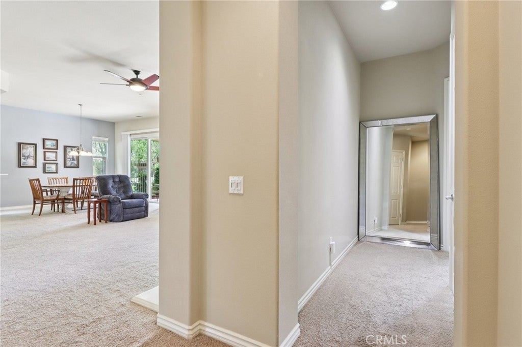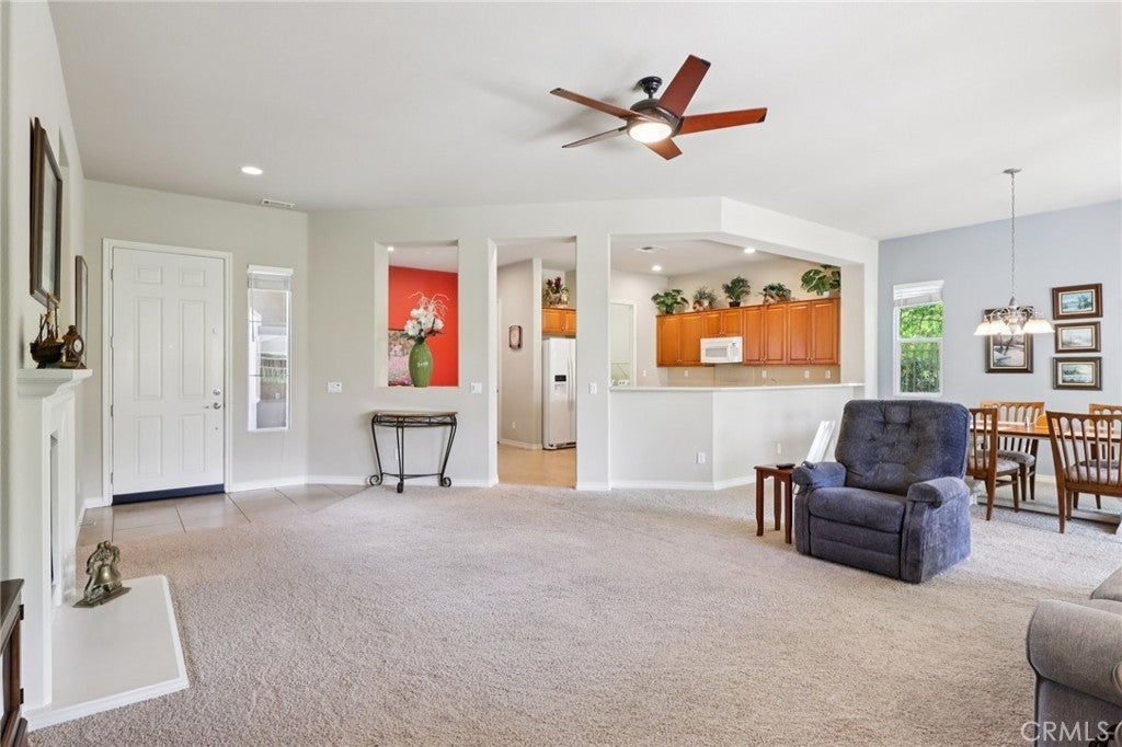 Perfectly positioned within the highly desirable 55+ Solera Diamond Valley community, this exceptional single-story home offers one of the best locations available. Tucked away on a quiet cul-de-sac, bordering a park, and just a short stroll to the community clubhouse, the setting is hard to beat. Step inside and you’re immediately greeted by a thoughtfully designed layout and quality finishes throughout. This popular “San Carlos” floor plan is known for its bright, open-concept design and includes two bedrooms, two bathrooms, plus a versatile office/den. Soaring 10-foot ceilings and 8-foot raised-panel doors add to the home’s spacious feel. The kitchen is designed for both everyday living and entertaining, featuring a center island, breakfast nook, upgraded appliances, and a gas cooktop. It flows seamlessly into the inviting living room, where a fireplace creates the perfect ambiance for cooler evenings. The primary suite offers a comfortable retreat with a generously sized walk-in closet, while the laundry room is equipped with added cabinetry and a deep utility sink for functionality. Outside, enjoy a beautifully finished concrete patio—ideal for relaxing or hosting—along with an extended two-car garage providing additional space. Residents of this vibrant community enjoy access to a resort-style clubhouse featuring a state-of-the-art fitness center with indoor walking track, library, billiards room, meeting spaces, theater, indoor pool, two outdoor pools, and courts for bocce ball, tennis, and pickleball. A full calendar of social events and activities makes it easy to stay active and connected.