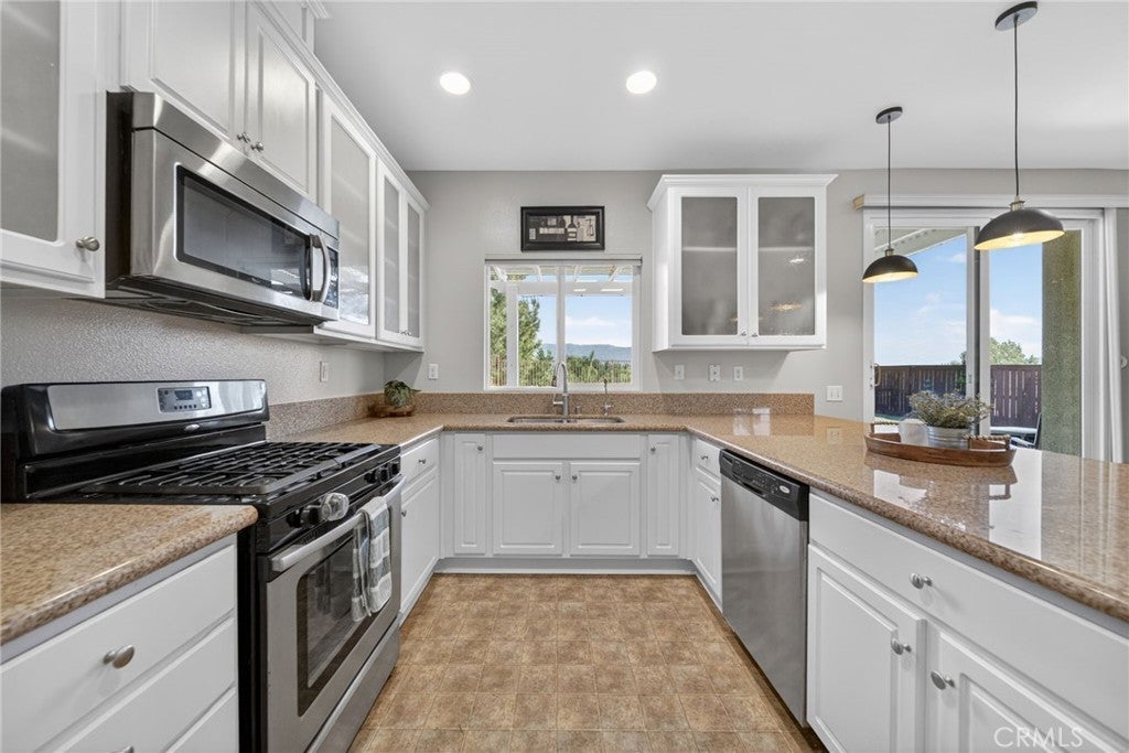 Enjoy incredible mountain and South Temecula views from this stunning four-bedroom, three-bathroom home in the highly desirable Paseo Del Sol community. Thoughtfully upgraded and meticulously maintained, this residence offers a perfect blend of comfort and style. This energy efficient home features an owned solar system, a tankless hot water heater, a Puragain whole-house water system, an Aluma-wood patio cover, and stamped concrete to optimize the outdoor living space on this pool-sized lot. The fully landscaped front and back yards are enhanced with custom exterior lighting and irrigation, providing year-round beauty and ease of maintenance. Inside, the kitchen features custom glass inset cabinets, granite countertops, and stainless-steel appliances. Neutral paint throughout the home creates a warm, inviting atmosphere, complemented by window blinds and elegant shutters that accentuate the view. This home is located on a cul-de-sac, has single-level homes at each side, and does not have a home immediately below it. Residents of Paseo Del Sol enjoy an exceptional lifestyle with access to scenic walking trails, multiple pools and spas, sports courts, and beautiful parks. This is a rare opportunity to own a view home in one of South Temecula’s most sought-after communities.