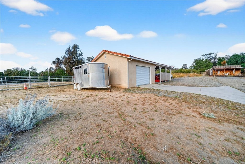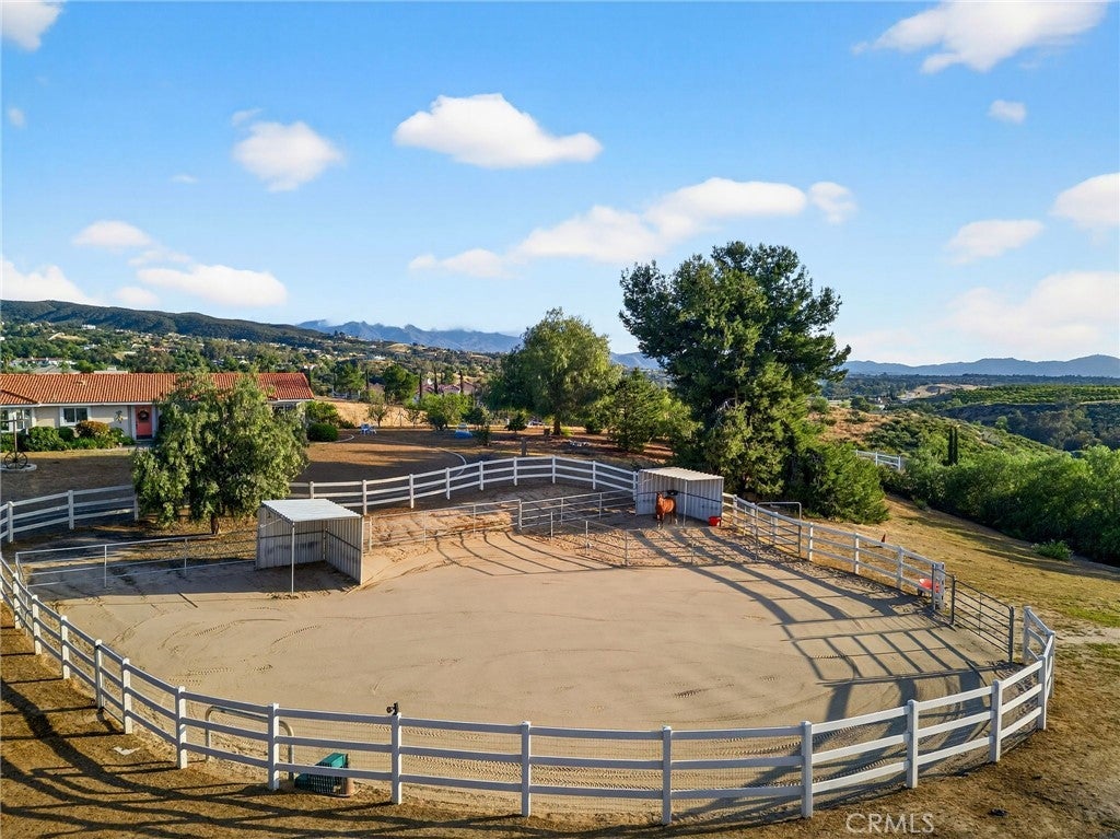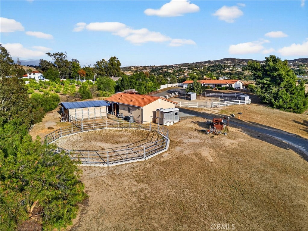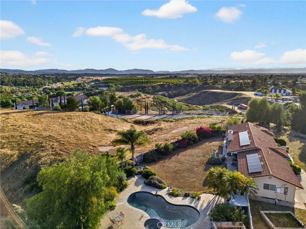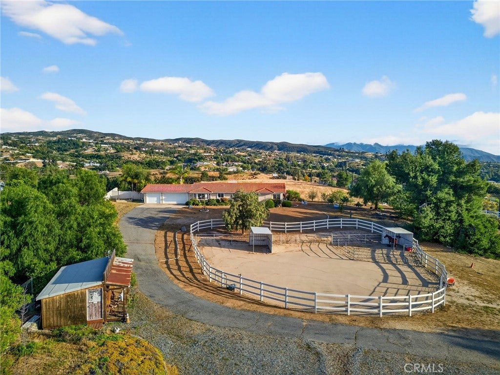 Wake up to sweeping views of Temecula's rolling wine country hills from this beautifully upgraded equestrian estate. The main home offers 1,502 sq ft of comfortable living with 3 bedrooms, 2 bathrooms, and an attached 3-car garage. A detached 800 sq ft permitted shop with two-car double roll-up doors, a private entrance, and its own water and electricity adds exceptional versatility — paired with an attached 400 sq ft covered, concreted, patio perfectly suited for grooming stalls or horse tack situated right next to your 2 stall shed row with turnouts. Together, these spaces bring thoughtful improvements, serious horse infrastructure, and Southern California's most coveted wine country backdrop together in one remarkable property. Inside the main home, every major system has been refreshed. All-new HVAC (2025), new attic insulation (2025), and a beautifully updated master shower (2025) means you can move in with confidence and zero deferred maintenance. The tile roof was replaced in 2013, the exterior freshly painted in 2016, and the pool completely renovated in 2014 with new equipment, plaster, tile, coping, and dual intakes. Powered by Leased Tesla Solar system — 14 panels plus a Powerwall battery backup — Horse lovers will feel right at home. The property features a brand-new 60×90 working ranch training arena (2025), a new 50-foot round pen (2025), a 1,000 sq ft paddock with two corner shelters, and a two-stall shed row with turnouts. The insulated tack room shed keeps your gear organized and protected year-round. Top it all off with a private orchard, a garden shed, RV parking with 30-amp power and water hookup, and those unobstructed wine country views stretching as far as the eye can see. Properties with this level of improvement, infrastructure, and scenery don't come along often.