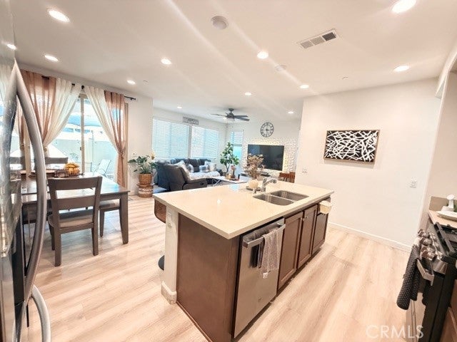 Your dream home awaits! This beautifully upgraded home is located in a gated community with fantastic amenities, including a community pool, picnic area with BBQ, and a small park-perfect for gatherings and relaxation. Inside, bright, open family and dining areas feature light vinyl laminate flooring and recessed lighting. The kitchen boasts quartz countertops, upgraded cabinetry, a walk-in pantry, and energy- efficient appliances. The master suite includes a wall-in closet, and the home is EVERYWHERE charging ready. Step outside to an all-concrete side patio with space for plants. Experience modern comfort and family living in a secure, welcoming neighborhood!
