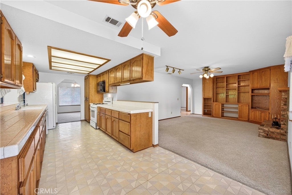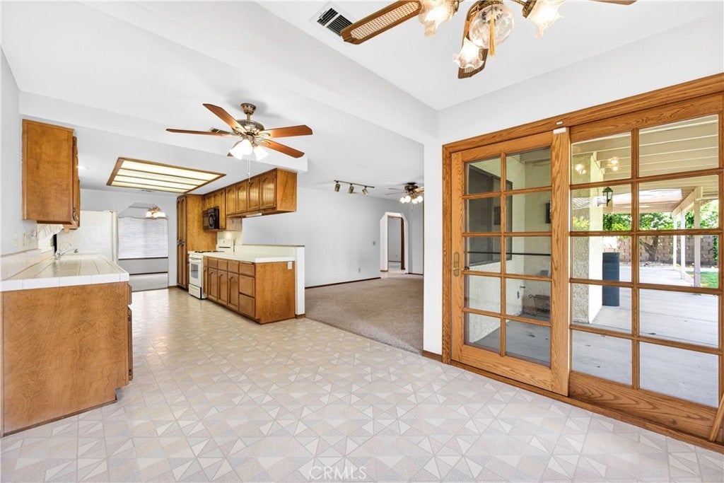 Presenting an incredible opportunity to reside in comfort and style with this very affordable single story 3-bedroom 2 bath home built in 1990 and located on the East side of Hemet where the taxes are very low. Well-maintained and in impeccable clean turnkey condition. The natural light this home offers is very appealing. The kitchen has spacious counter tops and ample cabinetry, refrigerator, dishwasher, and microwave included. . . and a kitchenette too. The Living and Dining room combo is very spacious and features a vaulted ceiling. The Family room has a beautiful fireplace with mantle and a multi-functional built in bookcase and/or entertainment center. This home is located on a very spacious lot in a cul-de-sac. A 2-car garage with built-in cabinetry and shelving units and features an RV or large vehicle gated parking. You'll appreciate how "park like" this backyard is . . . This home is charming and peaceful and appealing to the eyes. Ideal for immediate access to get out of town . . . close to shopping and the local entertainment. Be sure to check this one out and see why this could be your next place to call home.