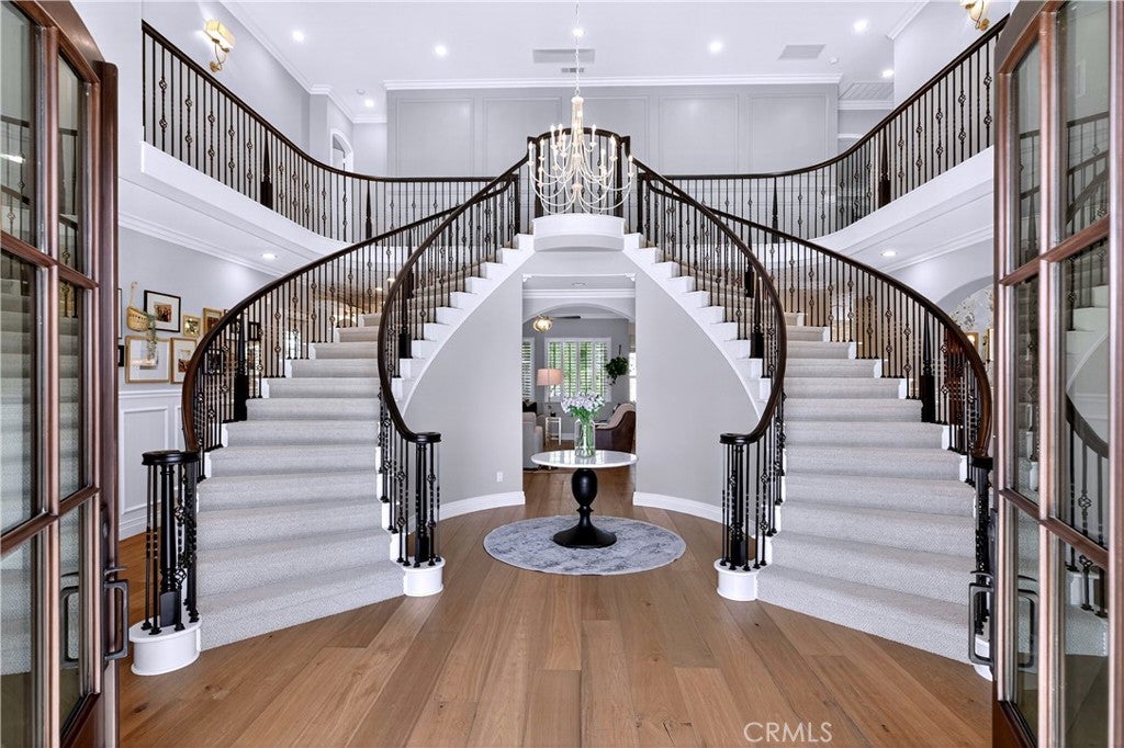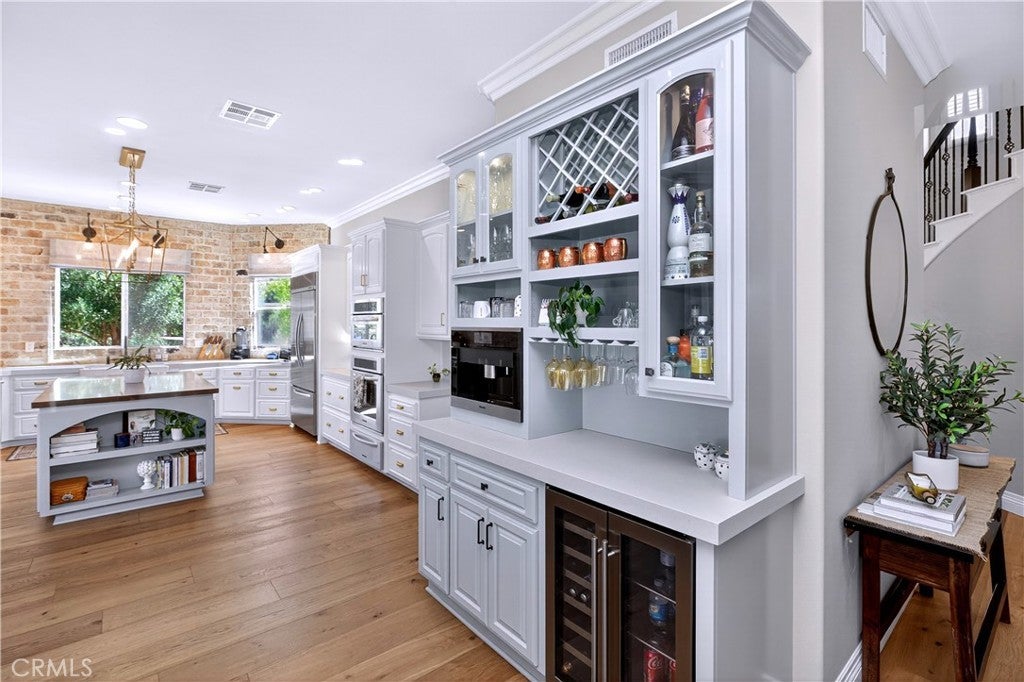 Beamed Ceilings, Breakfast Bar, Built-in Features, Breakfast Area, Ceiling Fan(s), Separate/Formal Dining Room, Eat-in Kitchen, High Ceilings, In-Law Floorplan, Multiple Staircases, Open Floorplan, Pantry, Quartz Counters, Recessed Lighting, Storage, Two Story Ceilings, Bar, Coffered Ceiling(s), Paneling/Wainscoting, Tray Ceiling(s), Wired for Data