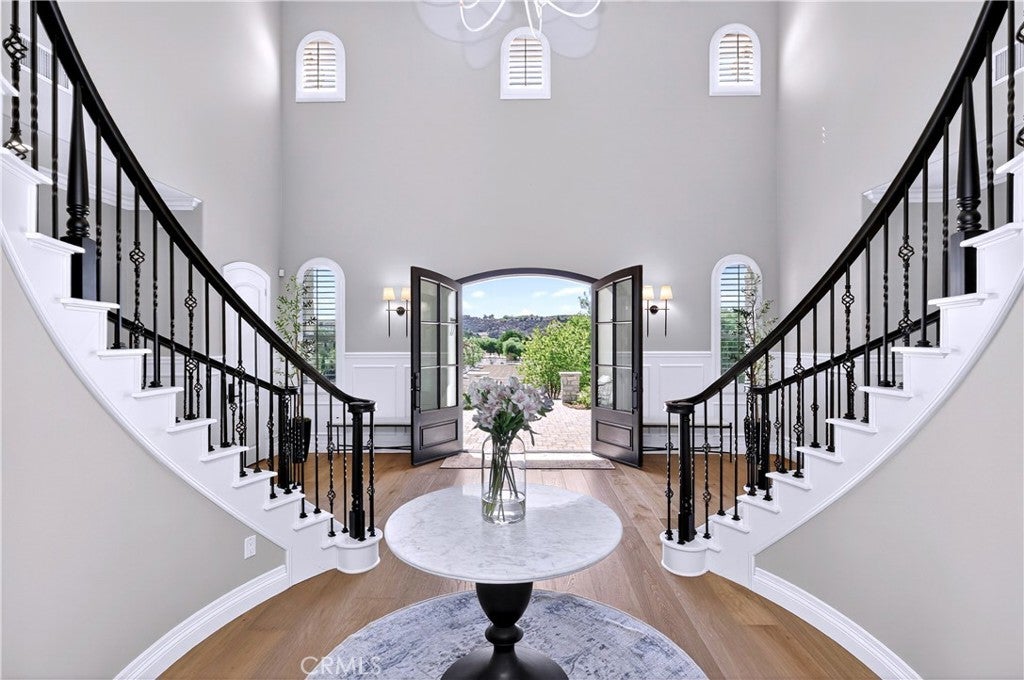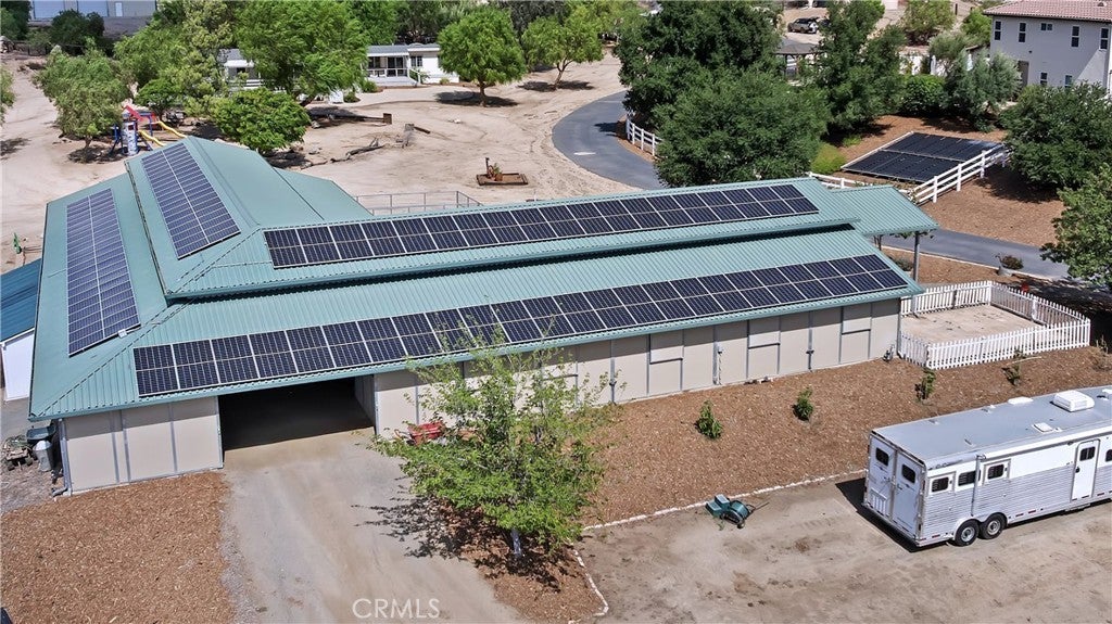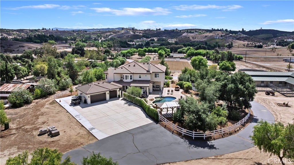 Exceptional custom estate in the Heart of Temecula Wine Country Welcome to Fallen Oak Ranch—an extraordinary equestrian estate perfectly situated in Temecula’s Wine Country, just minutes from award-winning wineries, restaurants, & shopping. The custom-built main residence blends rustic charm with modern sophistication. The designer chef’s kitchen is a showpiece with exposed brick walls, sleek quartz counters, a rich wood-topped island with built-in storage, farmhouse sink, & top-of-the-line stainless appliances including a professional-grade range & oversized refrigerator. Gold hardware, custom cabinetry, & designer lighting create a warm yet refined atmosphere—ideal for entertaining or everyday living. The formal dining room is timeless & inviting with custom wainscoting, soft wallpaper, exposed beams, & a statement chandelier. Natural light pours through plantation shutters onto warm wood floors & a built-in buffet with open shelving—perfect for elegant dinners or festive gatherings. The family room offers relaxed sophistication with a stone fireplace, custom built-ins, & natural light. Plantation shutters, crown molding, & wood floors complete the picture, creating a space that’s both stylish & comfortable. The home includes five spacious bedrooms, five baths, & an office. The luxurious primary suite features a cozy fireplace, wood-paneled ceiling, dual walk-in closets, & a spa-inspired bath with jacuzzi tub & large shower. Additional highlights include surround sound, plantation shutters, dual A/C units, & expansive covered patios for outdoor entertaining. A separate manufactured home offers 2 bedrooms, 2 baths, an office, covered patios, & enclosed yard—ideal for guests, staff, or rental income. Foreman's quarters with 2/1 bath. Equestrian facilities are top-tier with a Blue Ribbon barn offering 16 stalls (8 with runs), automatic waterers, fly spray system, tack room, office, & two wash racks. Riders will love the lighted arena (approx. 130x250)), 60’ round pen, hot walker, & six large outdoor pens with shelters. Sustainably equipped with owned solar (68 panels, 55 kWh storage), high-producing well with five holding tanks, & 2 RV pads with hookups with 50-amp service & waste dump. Fully fenced & gated, the ranch offers peace, privacy, & stunning views of the surrounding hills. Fallen Oak Ranch combines elegance, comfort, & functionality, an exceptional opportunity to own one of Temecula’s premier horse properties.