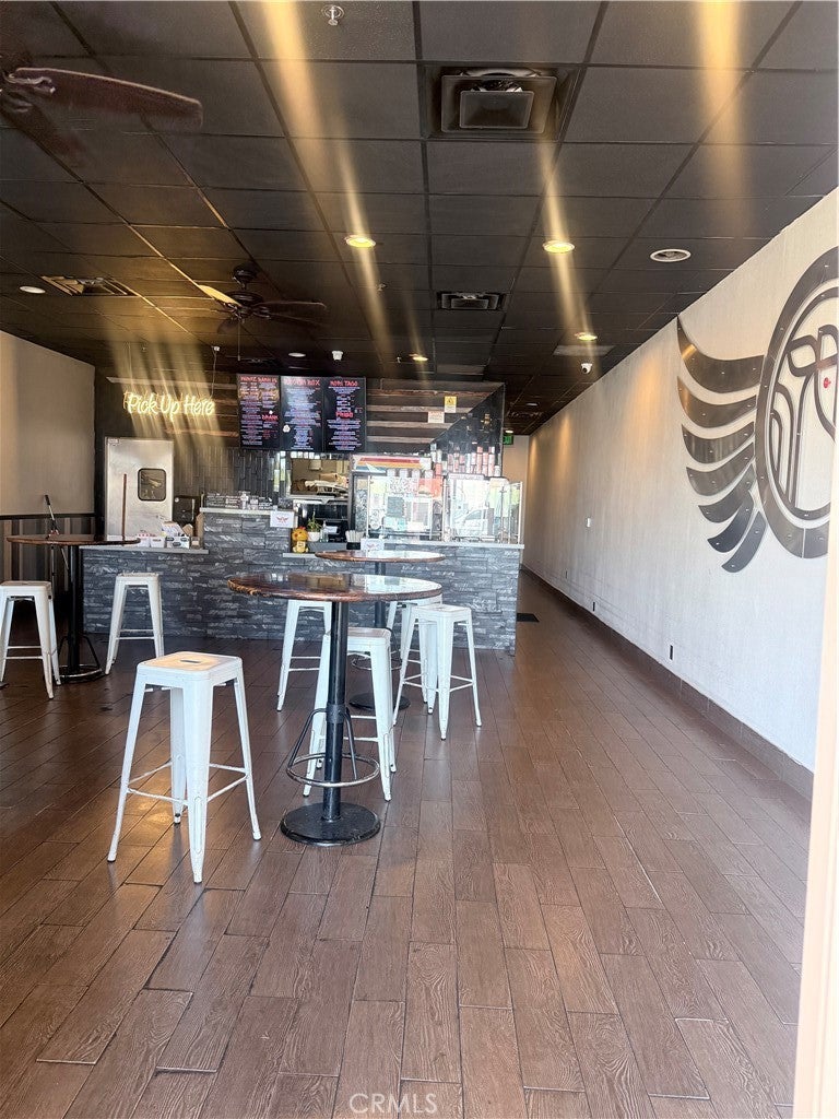 Prime retail space improved for cafe or snack-oriented business use, offering a turnkey opportunity for food and beverage operators. This well-figures unit features an open and inviting layout designed to accomodate customer seating, service counter flow, and efficient back-of-house operations. The space includes existing tenant improvements tailored for cafe/snack service, such as service counter, display area, and dedicated prep space, allowing for streamlined operations and minimal startup costs. The kitchen is designed to support efficient, high-volume cafe and light food service operations, with a layout that separates workflow into dedicated stations for preparation, cooking, beverage service, cleaning, and storage.