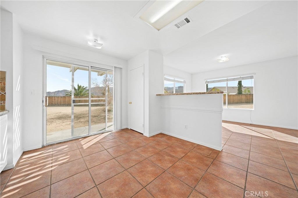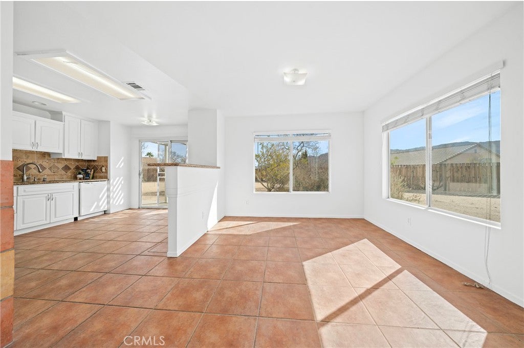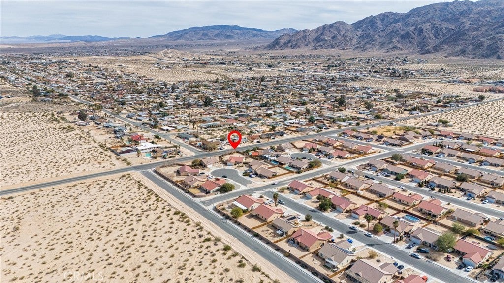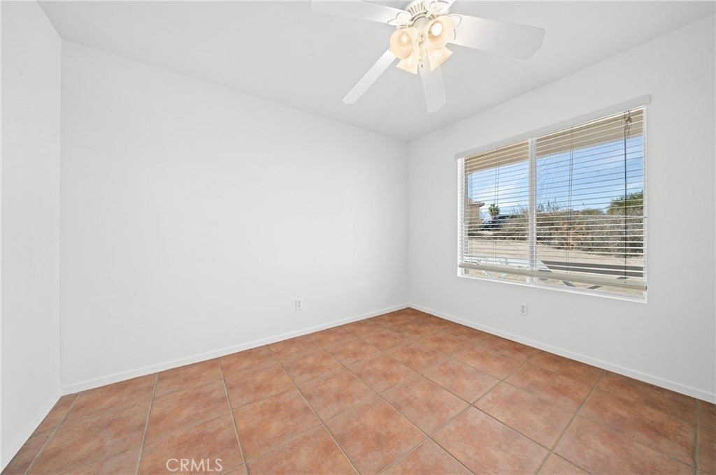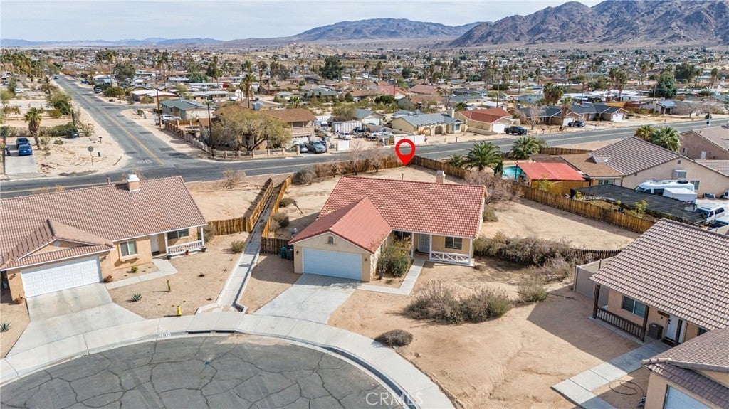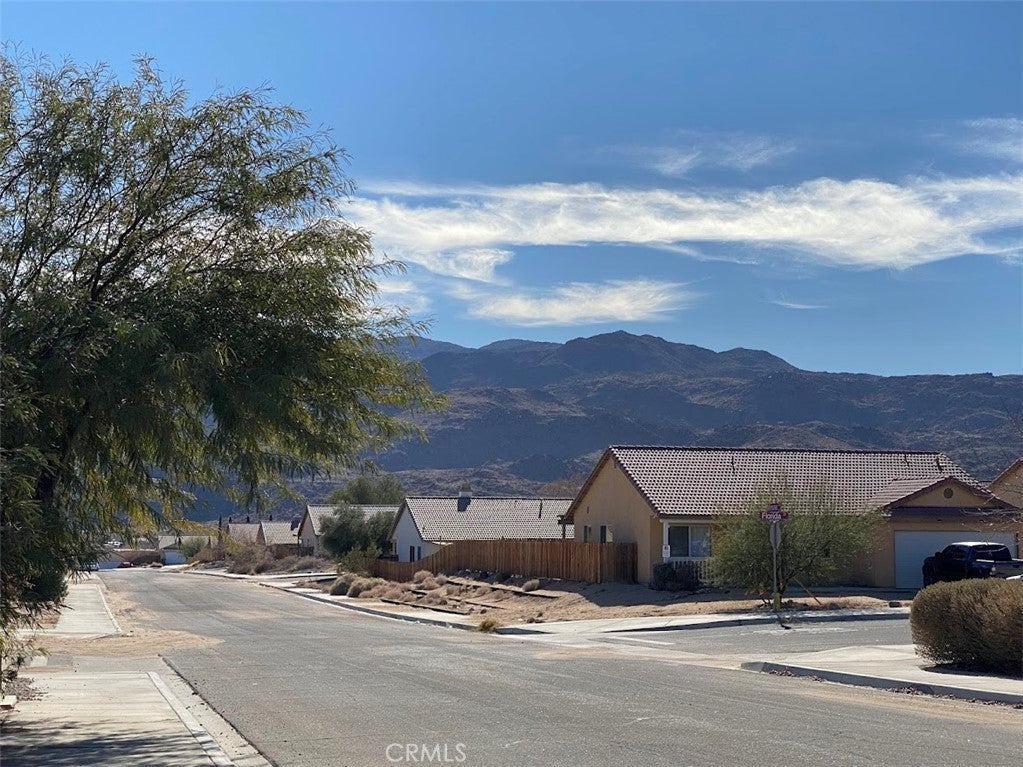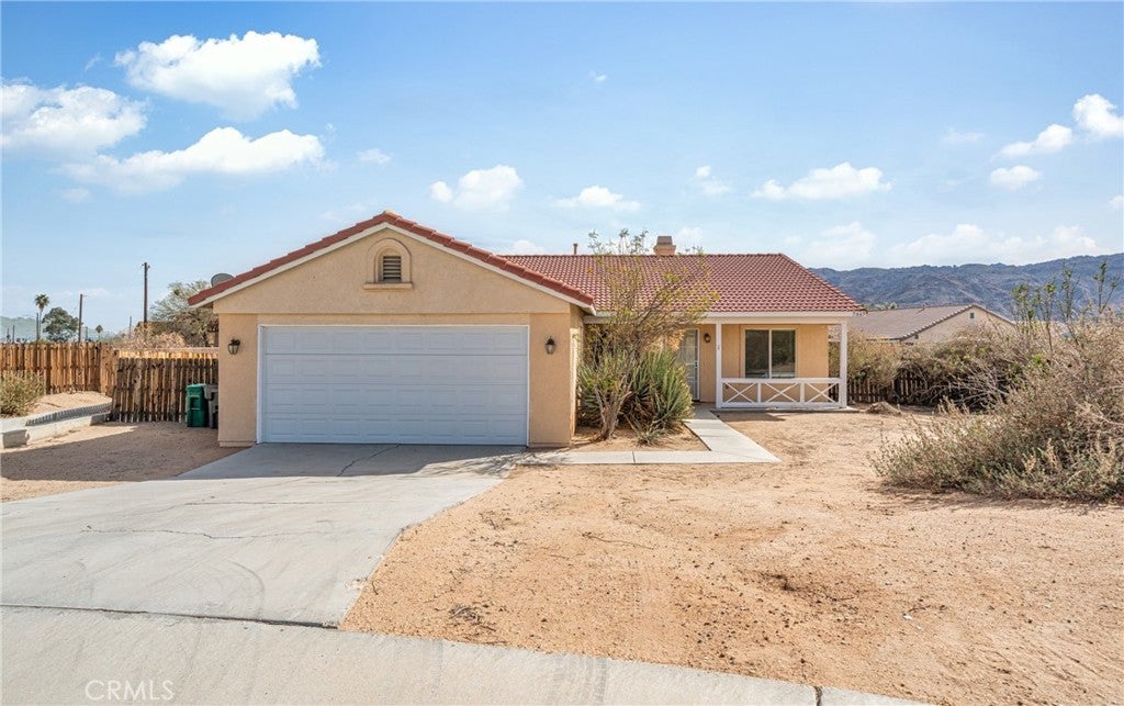 BACK ON THE MARKET!!! Beautiful desert family home nestled on a huge corner lot with breathtaking Mountain views and just minutes away from Joshua Tree National Park. Huge corner lot on a cul-de-sac!! Perfect for an ADU, Pool, RV and so much more!! This home features 3 spacious bedrooms, 2 bathrooms, plus a 4th bonus room that would be perfect for a home office, den, family room or a 4th bedroom. From the moment you arrive, you'll notice charming curb appeal with mature landscaping, tile roof and wood privacy fencing. Once inside you will find a bright and airy living room with large dual-pane windows that bring in lots of natural light, a cozy gas fireplace and a ceiling fan. A spacious kitchen with a large pantry, granite countertops, wood cabinets and a breakfast bar. Formal Dining area next to the kitchen bar is conveniently located and perfect for entertaining. The primary suite has his and hers walk-in closets with plenty of space, a private bathroom with dual sinks, granite countertops and wood cabinets with plenty of storage space and its own private access to the backyard. Each of the guest rooms have ceiling fans, large closet space, beautiful natural light offering an inviting vibe. The guest bathroom also offers top-of-the-line materials, granite countertops, wood cabinets with plenty of storage space. Home offers new interior paint throughout, Spanish tile floor throughout, central air conditioning unit, automatic irrigation system on the front and back yard, tile roof, inside laundry with cabinets for plenty of storage and ceiling fans on all bedrooms. The two car garage has been newly painted throughout including the floors with epoxy floor paint ready to be set up as a game room, home gym or an art studio offering endless possibilities. A huge backyard with stunning mountain views, plenty of space for a pool or a guest house and possible RV Parking. Great location near shopping, schools, hiking trails, off roading trails, ATV and Buggy trails, stargazing, camping. Just minutes away from Joshua Tree National Park, known as a haven for artists and nature lovers and a popular destination for photography and filming. Don’t miss out on the opportunity to make this home yours… Appliances included in sale! (Washer, Dryer and Refrigerator)