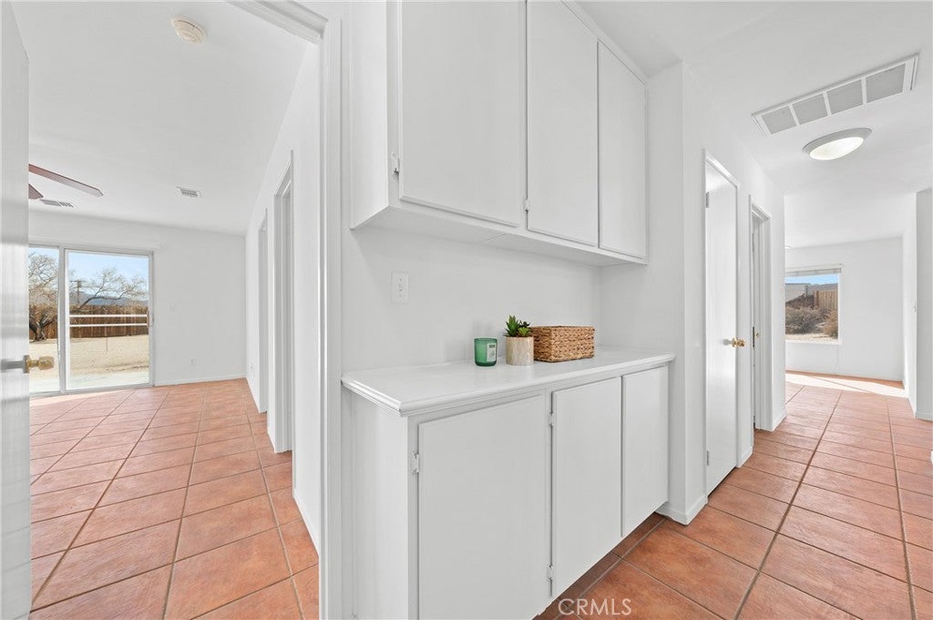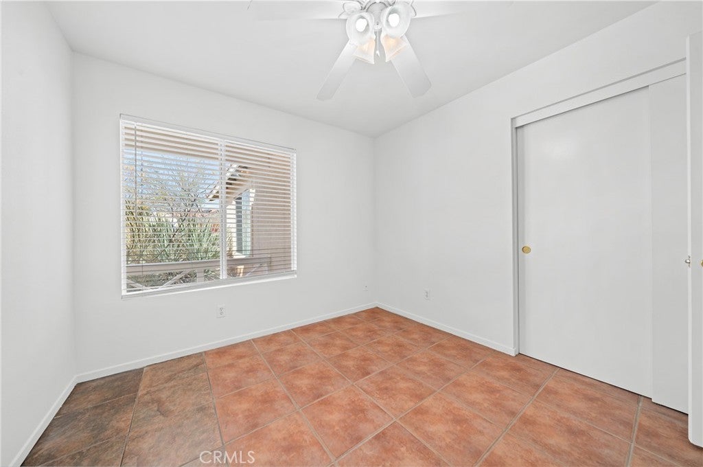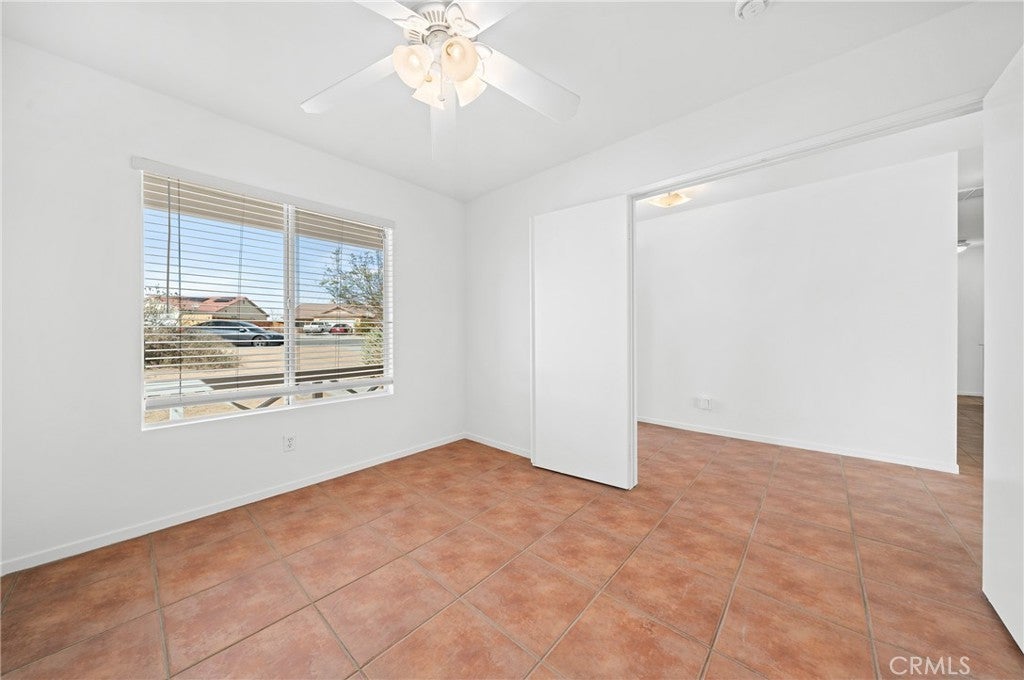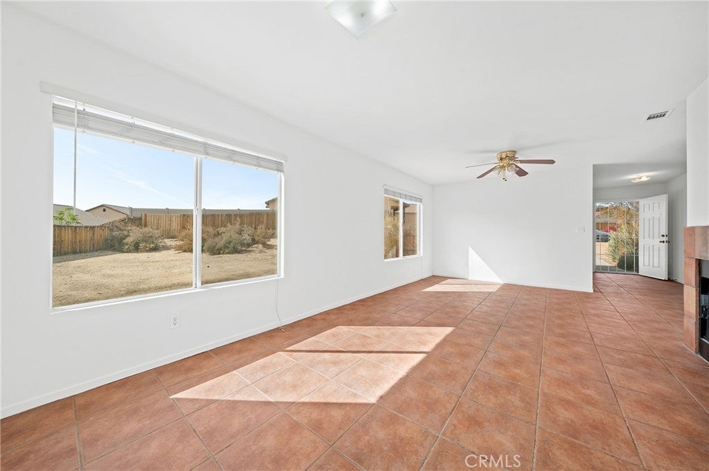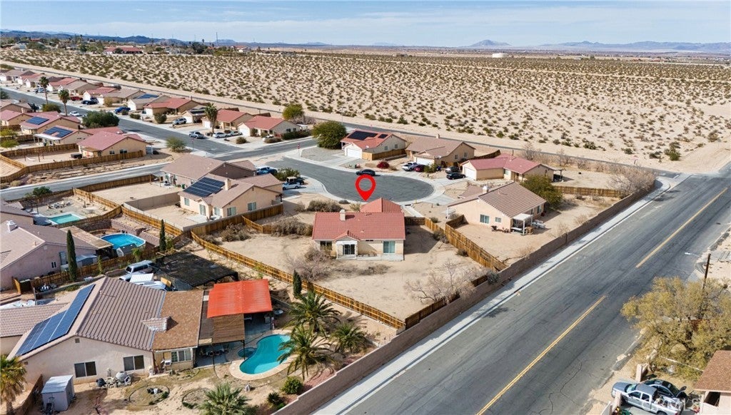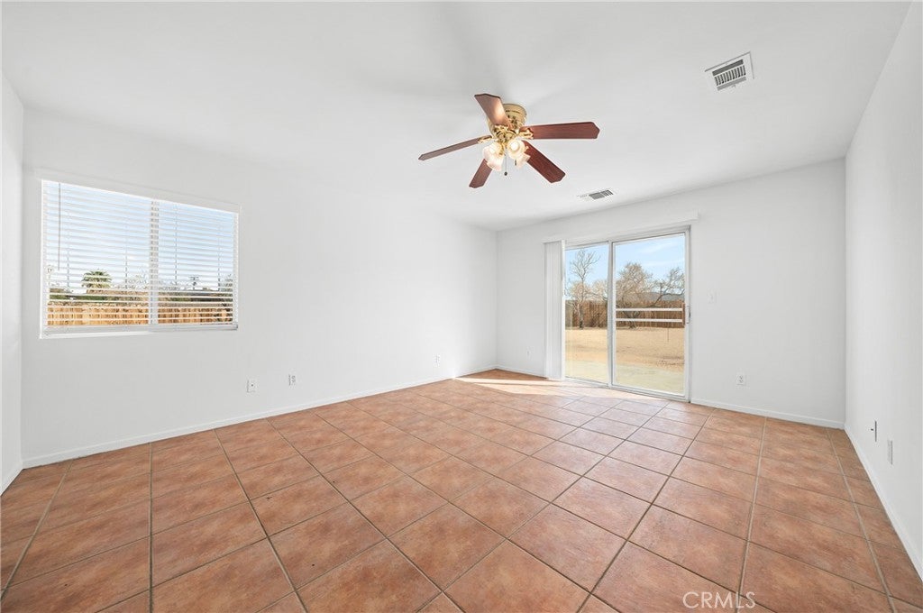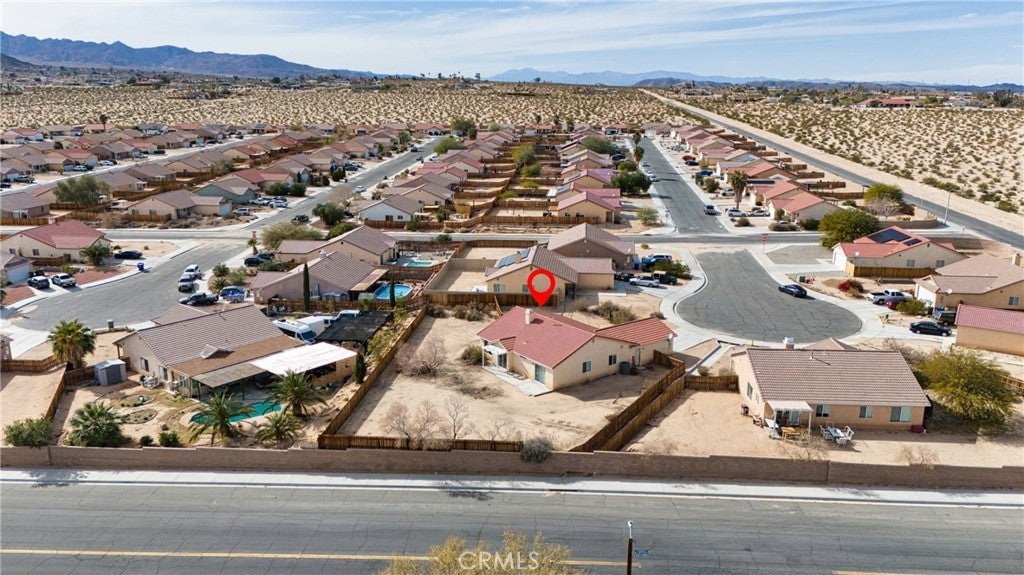 BACK ON THE MARKET!!! Beautiful desert family home nestled on a huge corner lot with breathtaking Mountain views and just minutes away from Joshua Tree National Park. Huge corner lot on a cul-de-sac!! Perfect for an ADU, Pool, RV and so much more!! This home features 3 spacious bedrooms, 2 bathrooms, plus a 4th bonus room that would be perfect for a home office, den, family room or a 4th bedroom. From the moment you arrive, you'll notice charming curb appeal with mature landscaping, tile roof and wood privacy fencing. Once inside you will find a bright and airy living room with large dual-pane windows that bring in lots of natural light, a cozy gas fireplace and a ceiling fan. A spacious kitchen with a large pantry, granite countertops, wood cabinets and a breakfast bar. Formal Dining area next to the kitchen bar is conveniently located and perfect for entertaining. The primary suite has his and hers walk-in closets with plenty of space, a private bathroom with dual sinks, granite countertops and wood cabinets with plenty of storage space and its own private access to the backyard. Each of the guest rooms have ceiling fans, large closet space, beautiful natural light offering an inviting vibe. The guest bathroom also offers top-of-the-line materials, granite countertops, wood cabinets with plenty of storage space. Home offers new interior paint throughout, Spanish tile floor throughout, central air conditioning unit, automatic irrigation system on the front and back yard, tile roof, inside laundry with cabinets for plenty of storage and ceiling fans on all bedrooms. The two car garage has been newly painted throughout including the floors with epoxy floor paint ready to be set up as a game room, home gym or an art studio offering endless possibilities. A huge backyard with stunning mountain views, plenty of space for a pool or a guest house and possible RV Parking. Great location near shopping, schools, hiking trails, off roading trails, ATV and Buggy trails, stargazing, camping. Just minutes away from Joshua Tree National Park, known as a haven for artists and nature lovers and a popular destination for photography and filming. Don’t miss out on the opportunity to make this home yours… Appliances included in sale! (Washer, Dryer and Refrigerator)