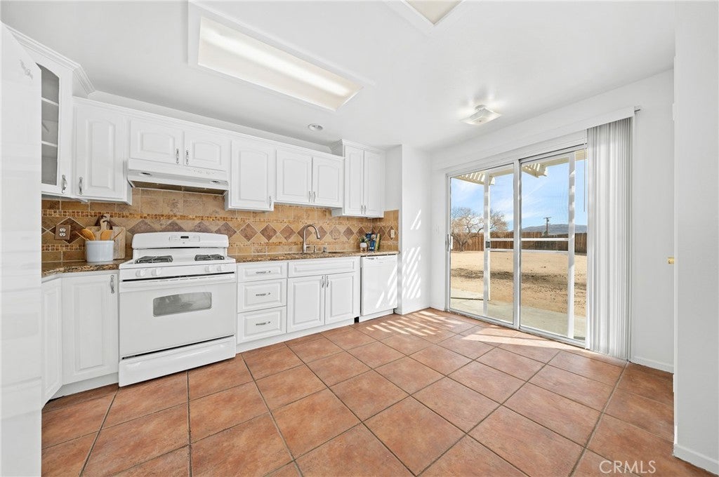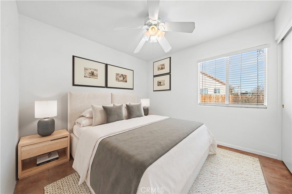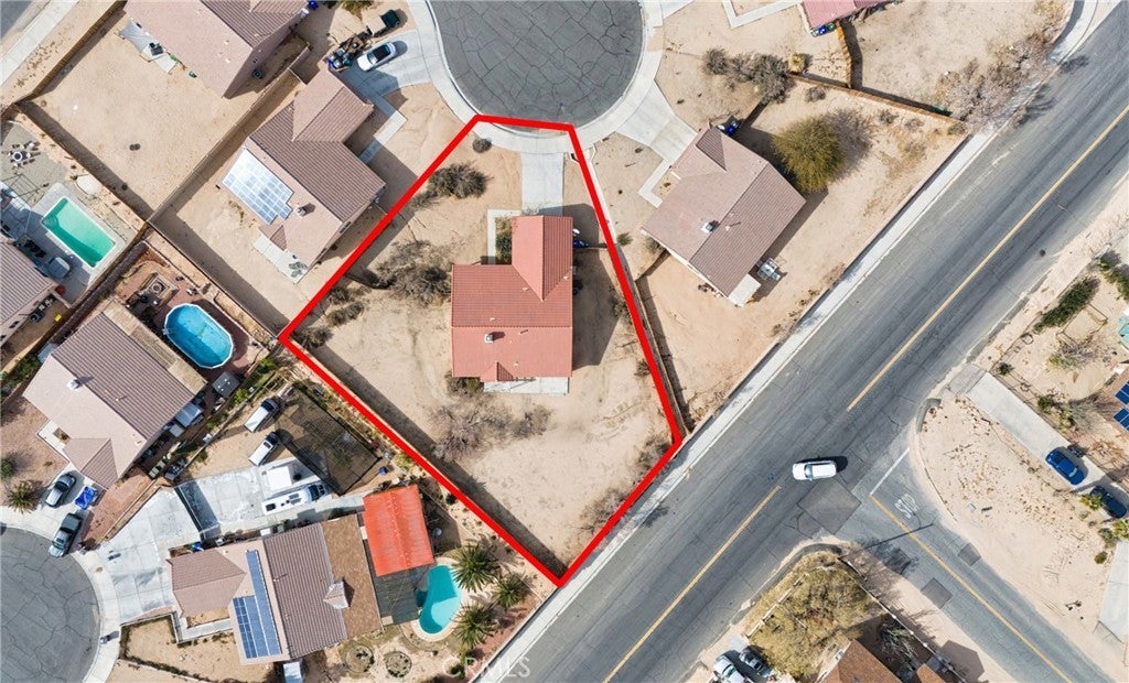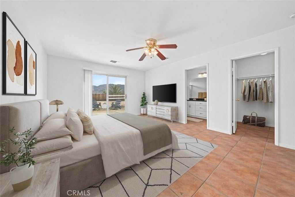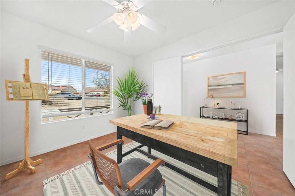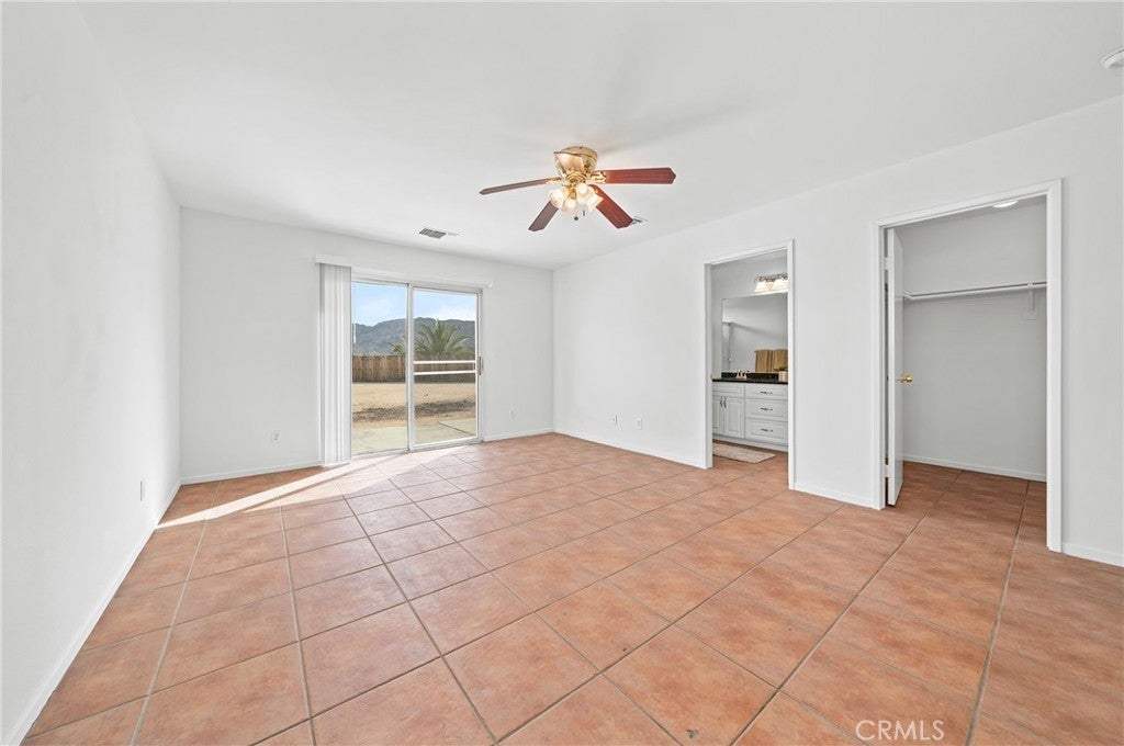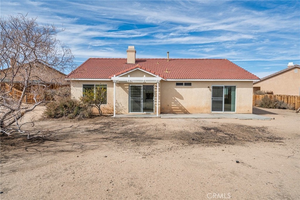 BACK ON THE MARKET!!! Beautiful desert family home nestled on a huge corner lot with breathtaking Mountain views and just minutes away from Joshua Tree National Park. Huge corner lot on a cul-de-sac!! Perfect for an ADU, Pool, RV and so much more!! This home features 3 spacious bedrooms, 2 bathrooms, plus a 4th bonus room that would be perfect for a home office, den, family room or a 4th bedroom. From the moment you arrive, you'll notice charming curb appeal with mature landscaping, tile roof and wood privacy fencing. Once inside you will find a bright and airy living room with large dual-pane windows that bring in lots of natural light, a cozy gas fireplace and a ceiling fan. A spacious kitchen with a large pantry, granite countertops, wood cabinets and a breakfast bar. Formal Dining area next to the kitchen bar is conveniently located and perfect for entertaining. The primary suite has his and hers walk-in closets with plenty of space, a private bathroom with dual sinks, granite countertops and wood cabinets with plenty of storage space and its own private access to the backyard. Each of the guest rooms have ceiling fans, large closet space, beautiful natural light offering an inviting vibe. The guest bathroom also offers top-of-the-line materials, granite countertops, wood cabinets with plenty of storage space. Home offers new interior paint throughout, Spanish tile floor throughout, central air conditioning unit, automatic irrigation system on the front and back yard, tile roof, inside laundry with cabinets for plenty of storage and ceiling fans on all bedrooms. The two car garage has been newly painted throughout including the floors with epoxy floor paint ready to be set up as a game room, home gym or an art studio offering endless possibilities. A huge backyard with stunning mountain views, plenty of space for a pool or a guest house and possible RV Parking. Great location near shopping, schools, hiking trails, off roading trails, ATV and Buggy trails, stargazing, camping. Just minutes away from Joshua Tree National Park, known as a haven for artists and nature lovers and a popular destination for photography and filming. Don’t miss out on the opportunity to make this home yours… Appliances included in sale! (Washer, Dryer and Refrigerator)