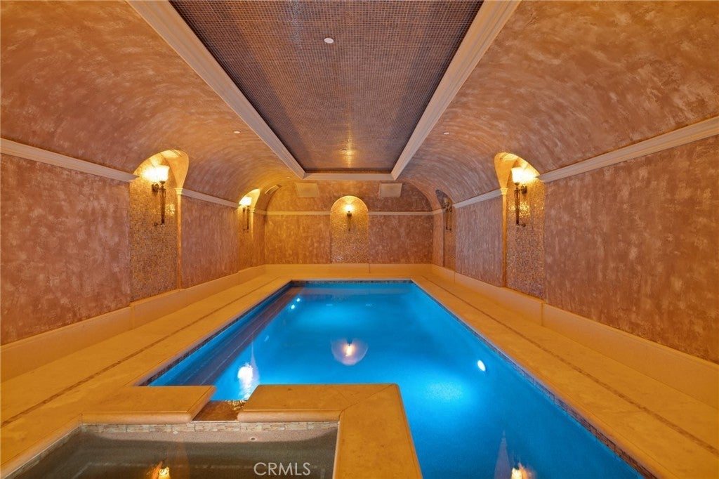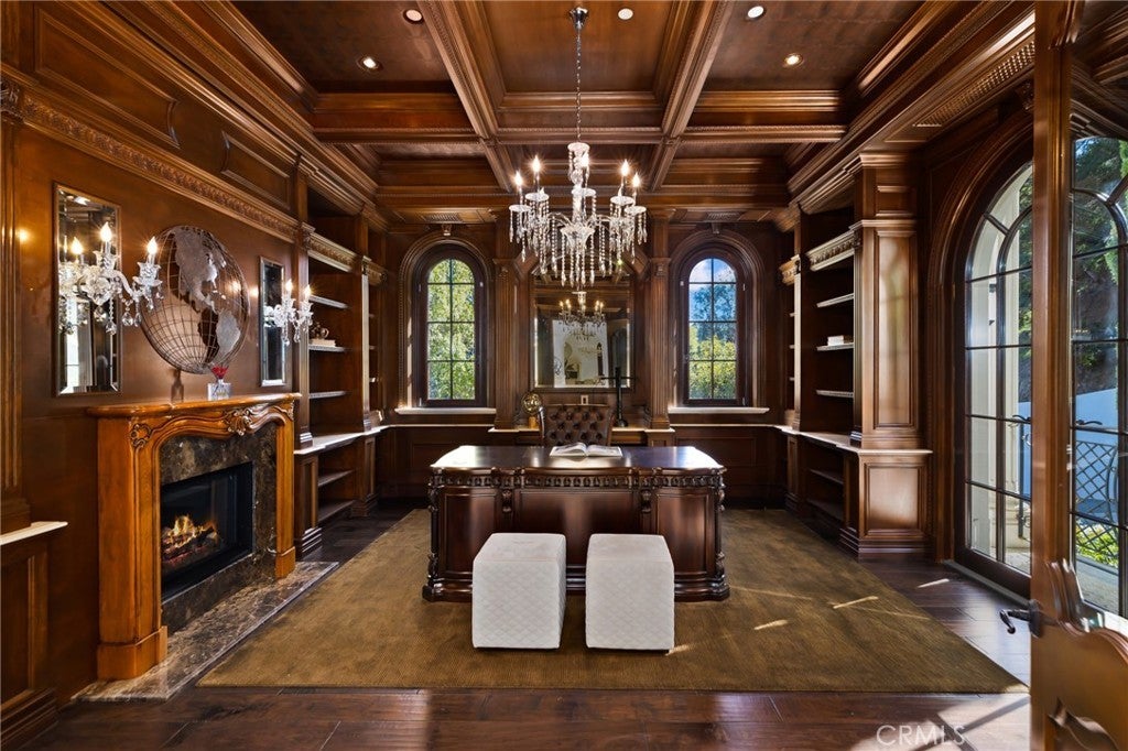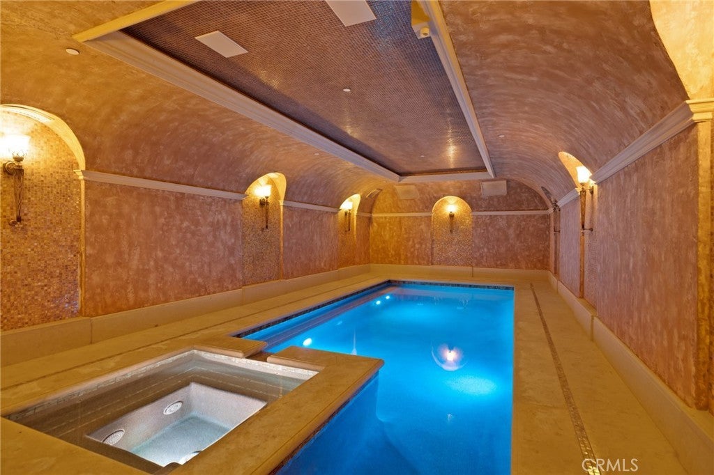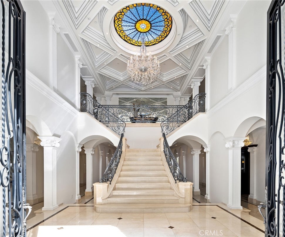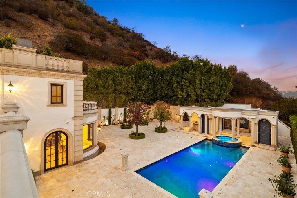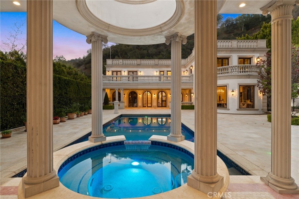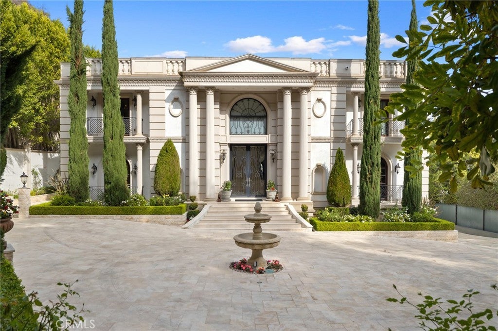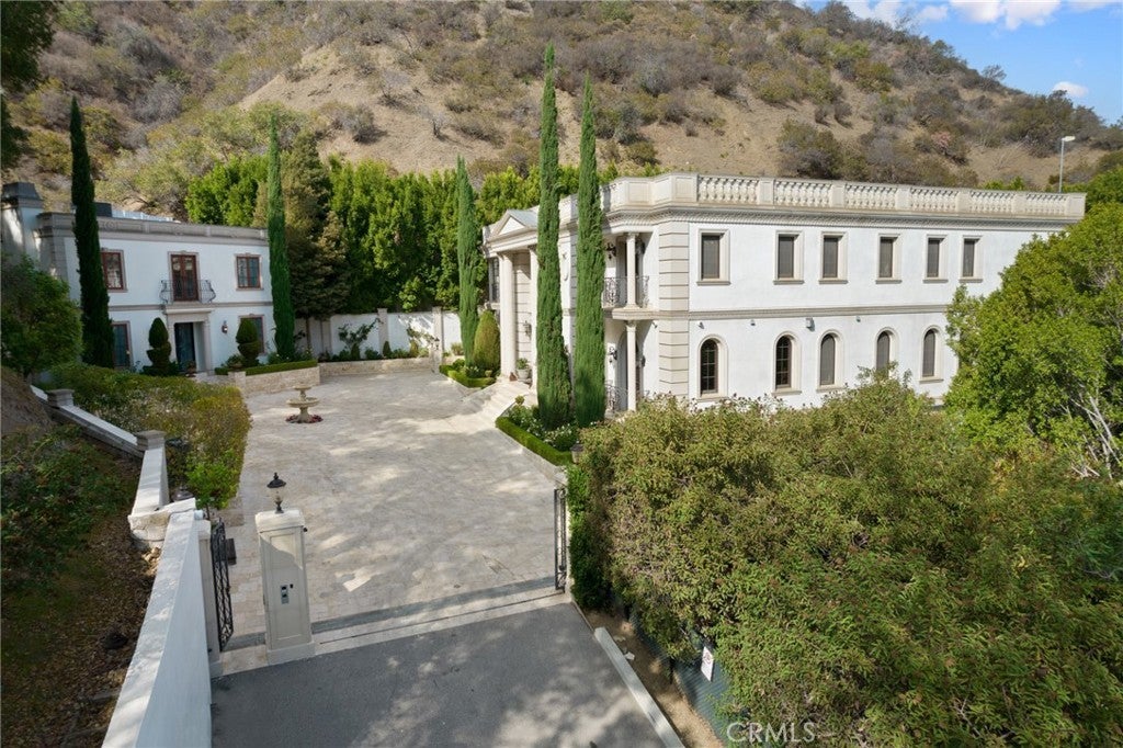 Privacy, luxury & leisure time are paramount on this stunning 4.77 acre Empire style estate, one of the largest parcels in Bel Air. Perched at the top of Stone Canyon Road, the property is accessible through an automatic gate. No expense was spared on the exquisite materials used to create this estate, as you enter the main house, you’ll be wowed by the outstanding craftsmanship here. There are Corinthian columns, a fairytale main staircase, 30-ft coffered ceilings with a stained-glass skylight and a dramatic chandelier. Nearly every room includes miles of custom millwork, gorgeous stone fireplaces, tray ceilings, archways and massive windows that let in lots of natural light. The timeless chef’s kitchen features marble countertops, pro-grade appliances, a butler’s pantry, a breakfast nook and a massive island with seating for a crowd. Just steps away, you can entertain guests on the expansive covered lanai or lounge around the beautiful lap pool and spa. This backyard oasis also includes California room with an outdoor bar & kitchen, cozy fireplace, shower booths and a bathroom. The entire property is surrounded by lush trees for privacy. Back inside, the main level includes the living areas plus a formal dining room, a gorgeous bar & billiards room as well as a library/office with French doors, a balcony and amazing floor-to-ceiling built-ins. Head up that grand staircase to find four bedrooms, all with marble ensuites. The primary bedroom is a showstopper, with a fireplace, beverage bar and custom walk-in closets/dressing rooms as big as bedrooms. The primary ensuite offers his&her vanities, heated marble floors, a free-standing tub and a steam shower. The unique guest suites include all of the same high-end materials found throughout the rest of the home. The primary suite and guest rooms also have access to the large terrace, which offers tree-top, canyon and reservoir views you won’t find anywhere else in Bel Air. Still need more space? Head down to the subterranean level, where you’ll find a full Banya (traditional steam bath facility) that includes an indoor lap pool & spa, both wet & dry saunas, and a spacious steam room with a custom marble table for body treatments. This FENGSHUI approved Bel Air retreat is in the perfect location, offering privacy and seclusion while still being within minutes of shopping & dining options down the hill. You need to see this exquisite property in person to see how special it is. Make an appointment today!