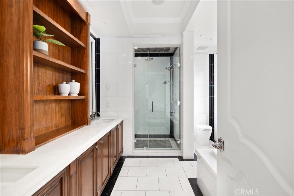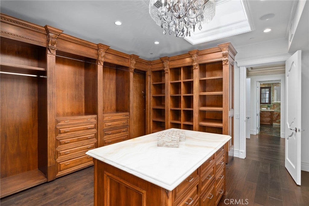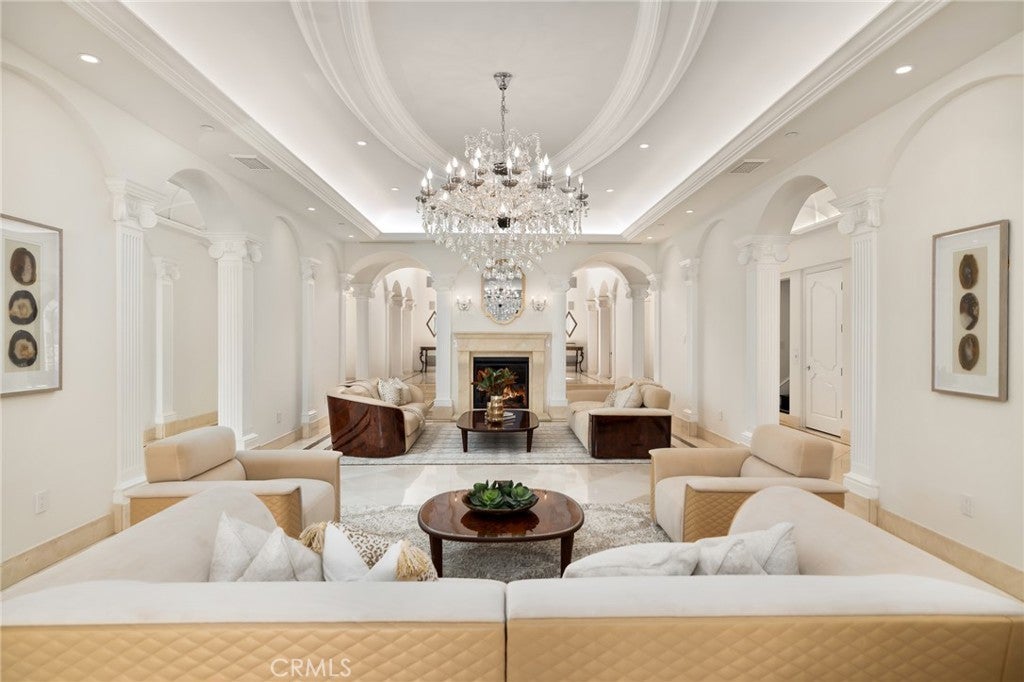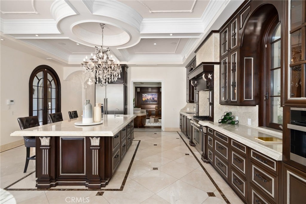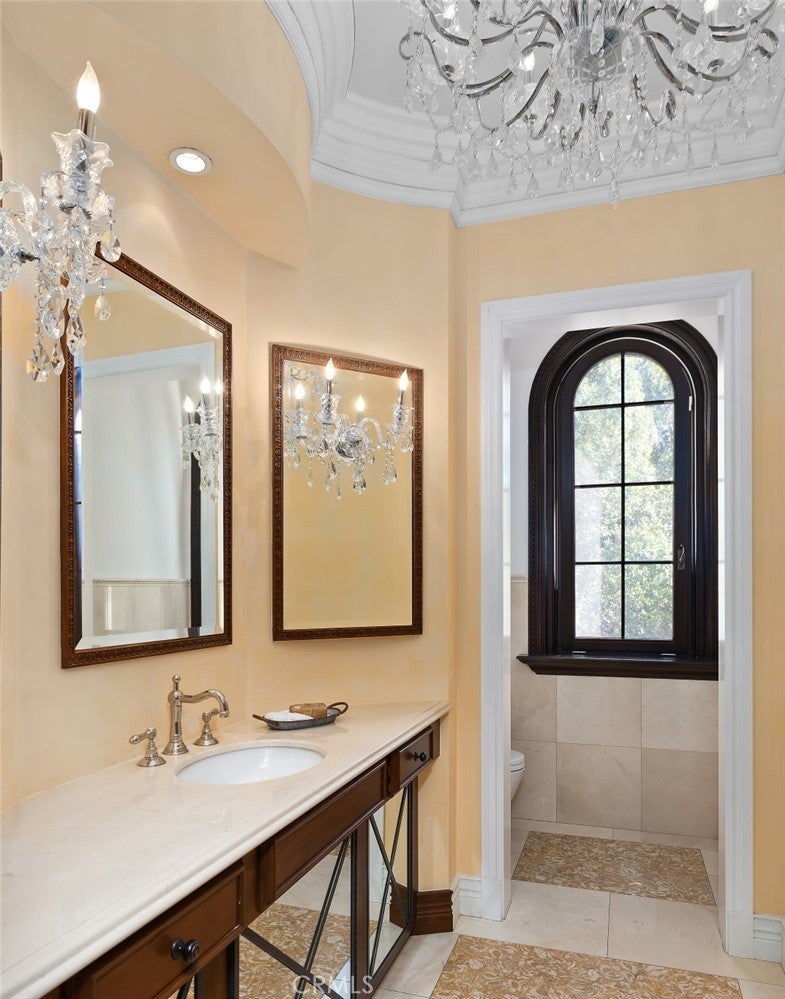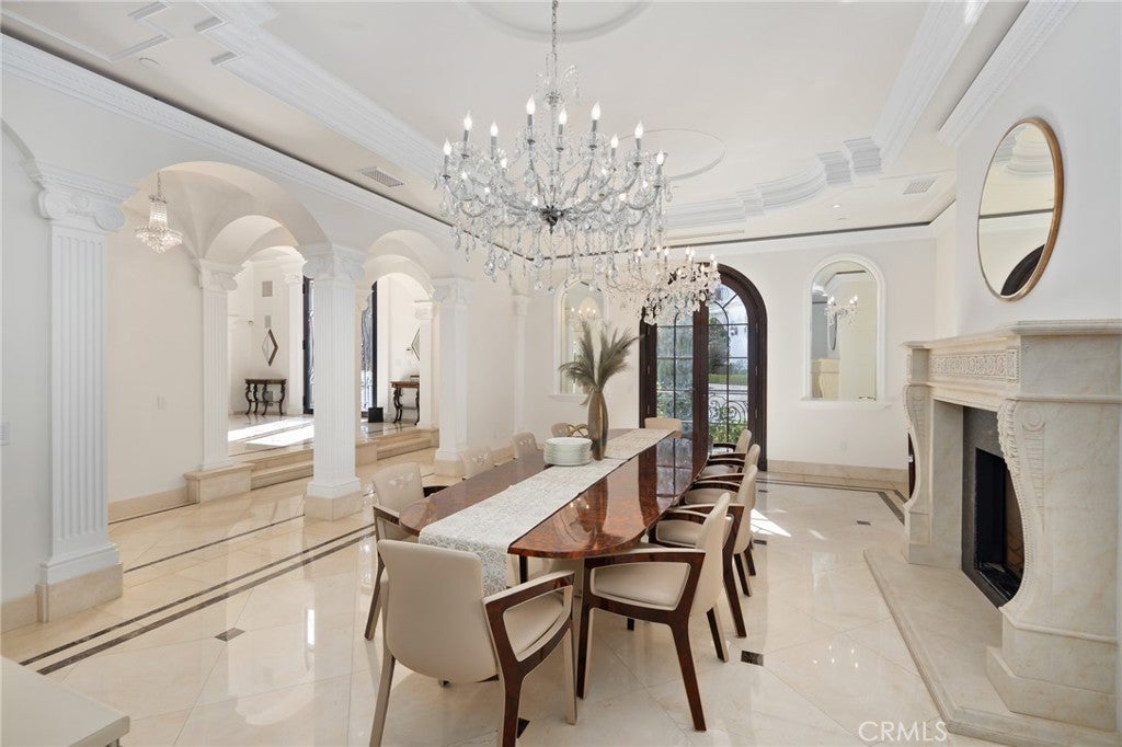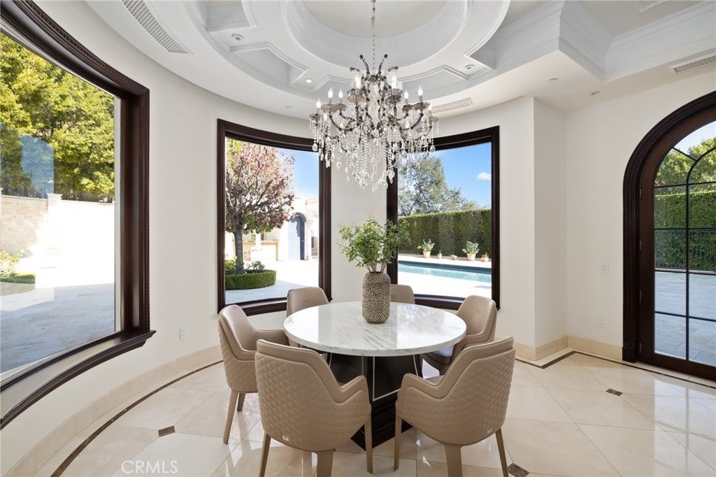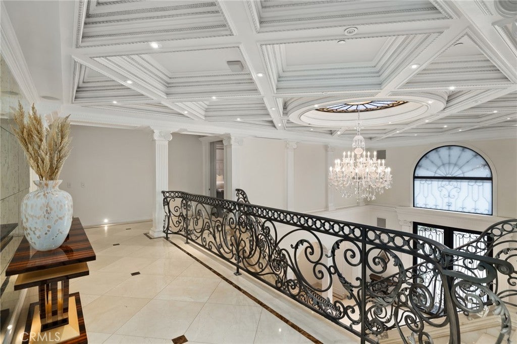 Privacy, luxury & leisure time are paramount on this stunning 4.77 acre Empire style estate, one of the largest parcels in Bel Air. Perched at the top of Stone Canyon Road, the property is accessible through an automatic gate. No expense was spared on the exquisite materials used to create this estate, as you enter the main house, you’ll be wowed by the outstanding craftsmanship here. There are Corinthian columns, a fairytale main staircase, 30-ft coffered ceilings with a stained-glass skylight and a dramatic chandelier. Nearly every room includes miles of custom millwork, gorgeous stone fireplaces, tray ceilings, archways and massive windows that let in lots of natural light. The timeless chef’s kitchen features marble countertops, pro-grade appliances, a butler’s pantry, a breakfast nook and a massive island with seating for a crowd. Just steps away, you can entertain guests on the expansive covered lanai or lounge around the beautiful lap pool and spa. This backyard oasis also includes California room with an outdoor bar & kitchen, cozy fireplace, shower booths and a bathroom. The entire property is surrounded by lush trees for privacy. Back inside, the main level includes the living areas plus a formal dining room, a gorgeous bar & billiards room as well as a library/office with French doors, a balcony and amazing floor-to-ceiling built-ins. Head up that grand staircase to find four bedrooms, all with marble ensuites. The primary bedroom is a showstopper, with a fireplace, beverage bar and custom walk-in closets/dressing rooms as big as bedrooms. The primary ensuite offers his&her vanities, heated marble floors, a free-standing tub and a steam shower. The unique guest suites include all of the same high-end materials found throughout the rest of the home. The primary suite and guest rooms also have access to the large terrace, which offers tree-top, canyon and reservoir views you won’t find anywhere else in Bel Air. Still need more space? Head down to the subterranean level, where you’ll find a full Banya (traditional steam bath facility) that includes an indoor lap pool & spa, both wet & dry saunas, and a spacious steam room with a custom marble table for body treatments. This FENGSHUI approved Bel Air retreat is in the perfect location, offering privacy and seclusion while still being within minutes of shopping & dining options down the hill. You need to see this exquisite property in person to see how special it is. Make an appointment today!