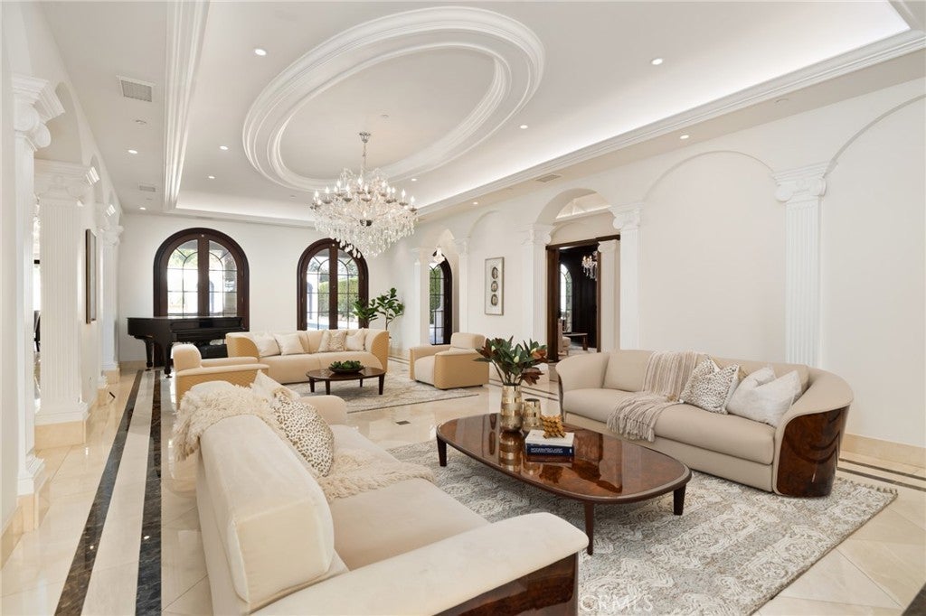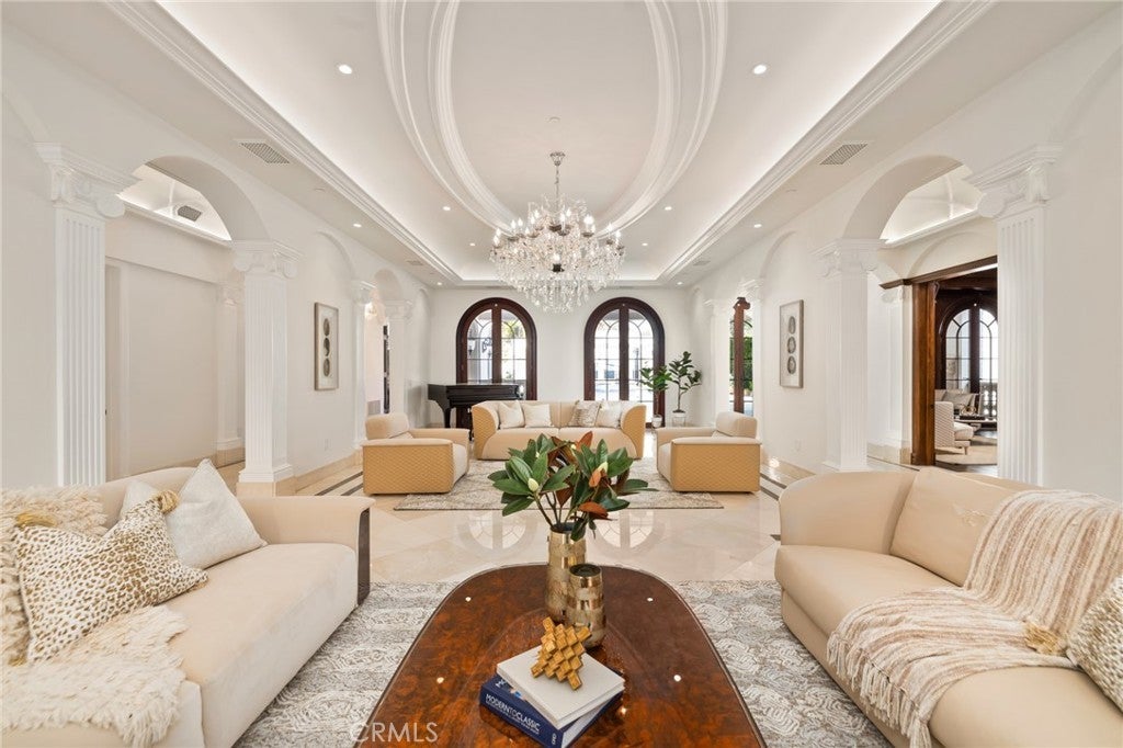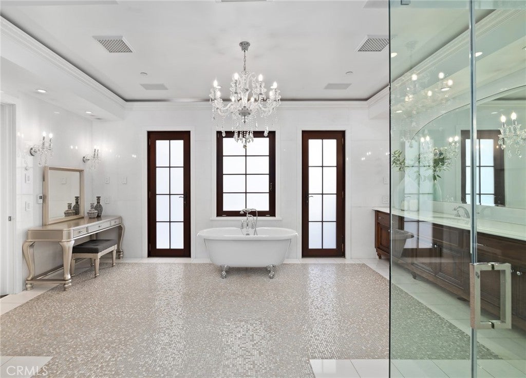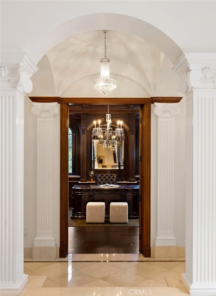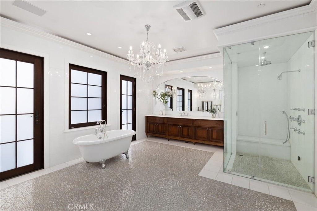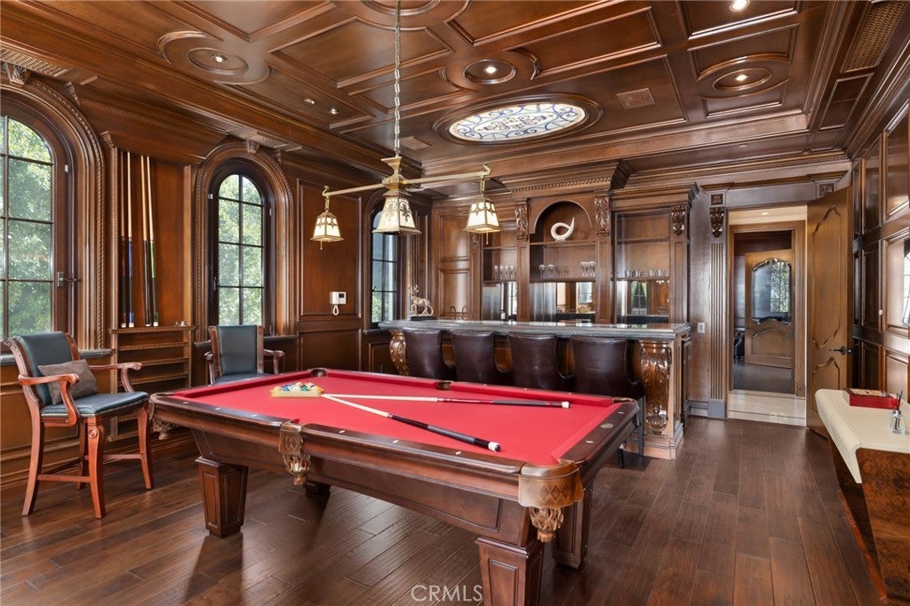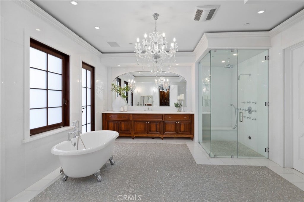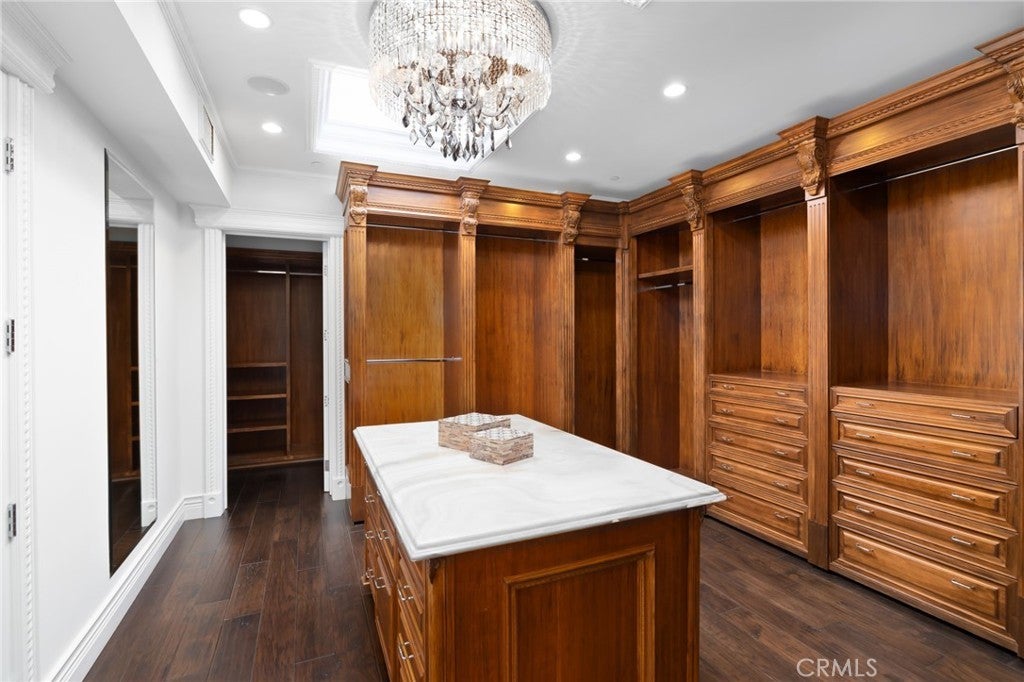 Privacy, luxury & leisure time are paramount on this stunning 4.77 acre Empire style estate, one of the largest parcels in Bel Air. Perched at the top of Stone Canyon Road, the property is accessible through an automatic gate. No expense was spared on the exquisite materials used to create this estate, as you enter the main house, you’ll be wowed by the outstanding craftsmanship here. There are Corinthian columns, a fairytale main staircase, 30-ft coffered ceilings with a stained-glass skylight and a dramatic chandelier. Nearly every room includes miles of custom millwork, gorgeous stone fireplaces, tray ceilings, archways and massive windows that let in lots of natural light. The timeless chef’s kitchen features marble countertops, pro-grade appliances, a butler’s pantry, a breakfast nook and a massive island with seating for a crowd. Just steps away, you can entertain guests on the expansive covered lanai or lounge around the beautiful lap pool and spa. This backyard oasis also includes California room with an outdoor bar & kitchen, cozy fireplace, shower booths and a bathroom. The entire property is surrounded by lush trees for privacy. Back inside, the main level includes the living areas plus a formal dining room, a gorgeous bar & billiards room as well as a library/office with French doors, a balcony and amazing floor-to-ceiling built-ins. Head up that grand staircase to find four bedrooms, all with marble ensuites. The primary bedroom is a showstopper, with a fireplace, beverage bar and custom walk-in closets/dressing rooms as big as bedrooms. The primary ensuite offers his&her vanities, heated marble floors, a free-standing tub and a steam shower. The unique guest suites include all of the same high-end materials found throughout the rest of the home. The primary suite and guest rooms also have access to the large terrace, which offers tree-top, canyon and reservoir views you won’t find anywhere else in Bel Air. Still need more space? Head down to the subterranean level, where you’ll find a full Banya (traditional steam bath facility) that includes an indoor lap pool & spa, both wet & dry saunas, and a spacious steam room with a custom marble table for body treatments. This FENGSHUI approved Bel Air retreat is in the perfect location, offering privacy and seclusion while still being within minutes of shopping & dining options down the hill. You need to see this exquisite property in person to see how special it is. Make an appointment today!