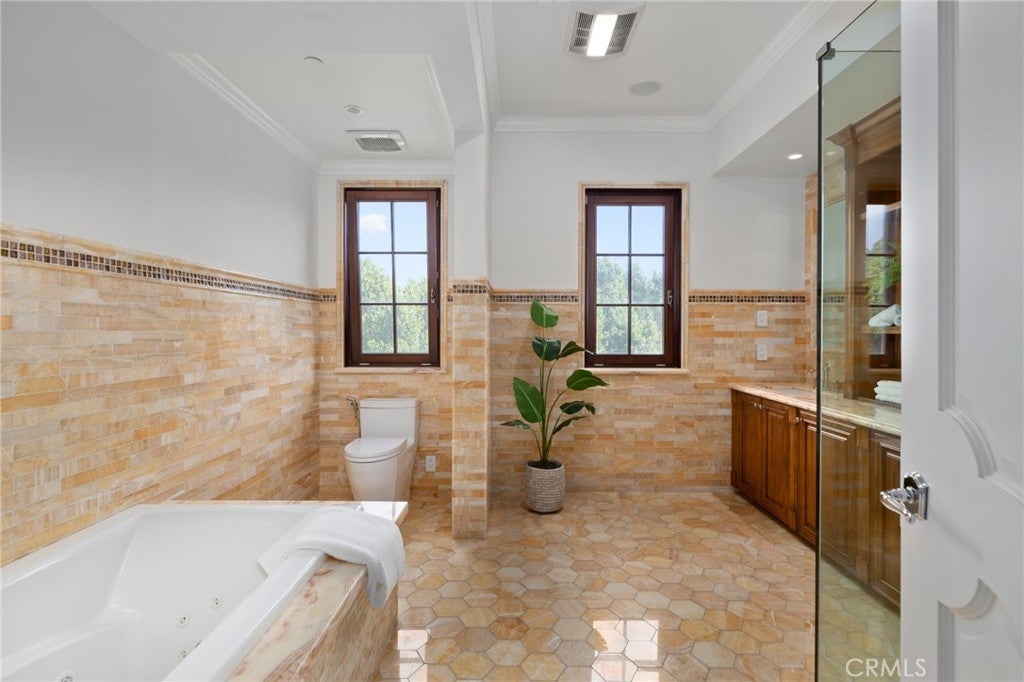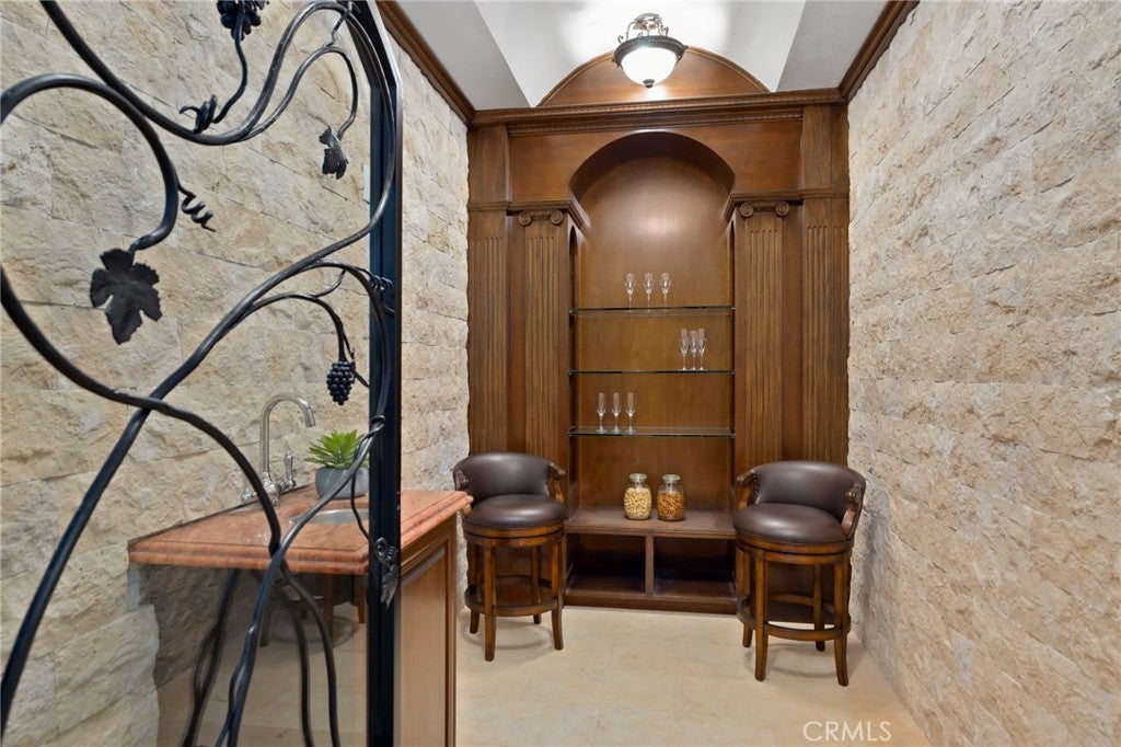 Wet Bar, Balcony, Breakfast Area, Crown Molding, Separate/Formal Dining Room, Elevator, Granite Counters, High Ceilings, Stone Counters, Two Story Ceilings, Entrance Foyer, Primary Suite, Wine Cellar, Walk-In Closet(s)