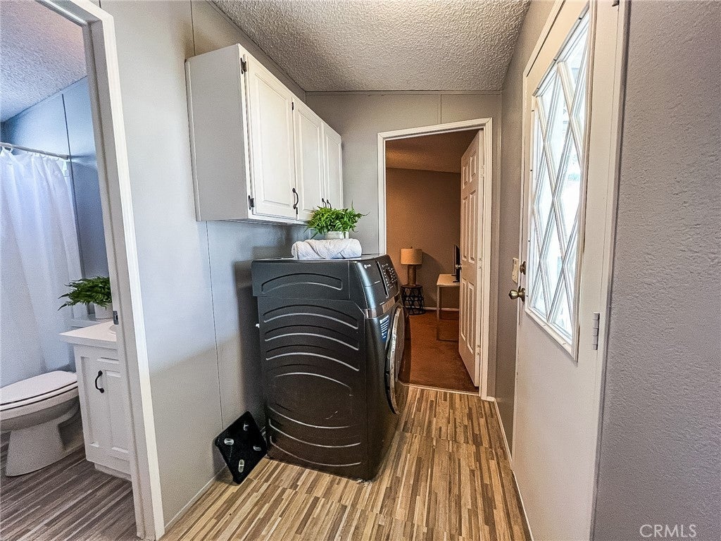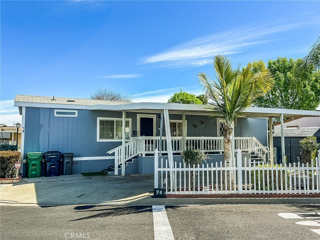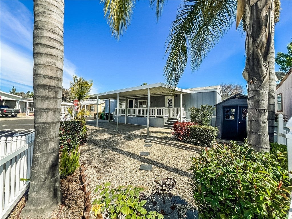 CHARMING AND MOVE IN READY Manufactured Home in a Desirable Mobile Home Park located in LA VERNE! Welcome to this beautifully maintained 2-bedroom, 1.5-bathroom manufactured home in the peaceful Kings Way Gardens all ages homeowner park. Nestled in a friendly community, this home offers comfortable living with 700sf of well-designed space and the LOWEST PRICED home for age in the area. Step inside to find an open floor plan, high ceilings, new flooring in the Living, Dining and Kitchen areas, and a freshly painted interior creating a warm and inviting atmosphere. The kitchen includes the refrigerator and new microwave plus flows seamlessly into the dining and living areas—perfect for entertaining or relaxing. Enjoy a spacious primary bedroom with closet, the main bathroom offers a tub/shower combo and you have a dedicated laundry space with A newer washer/dryer combo that is included for added convenience. Outside, LARGE FENCED CORNER LOT with storage shed, Front covered porch and covered 2 car parking, one of the largest private yards, that provides a great spot for enjoying the fresh air. Located close to parks, public transportation, and freeway access, this home offers both comfort and convenience. Kings Way park amenities include a Playground, Clubhouse, Swimming Pool, Spa, Billiard Room, Dog Park, Walking Trails and more! Don't miss this fantastic opportunity to own an AFFORDABLE AND WELL-KEPT HOME IN A SOUGHT AFTER COMMUNITY. Schedule your showing today!