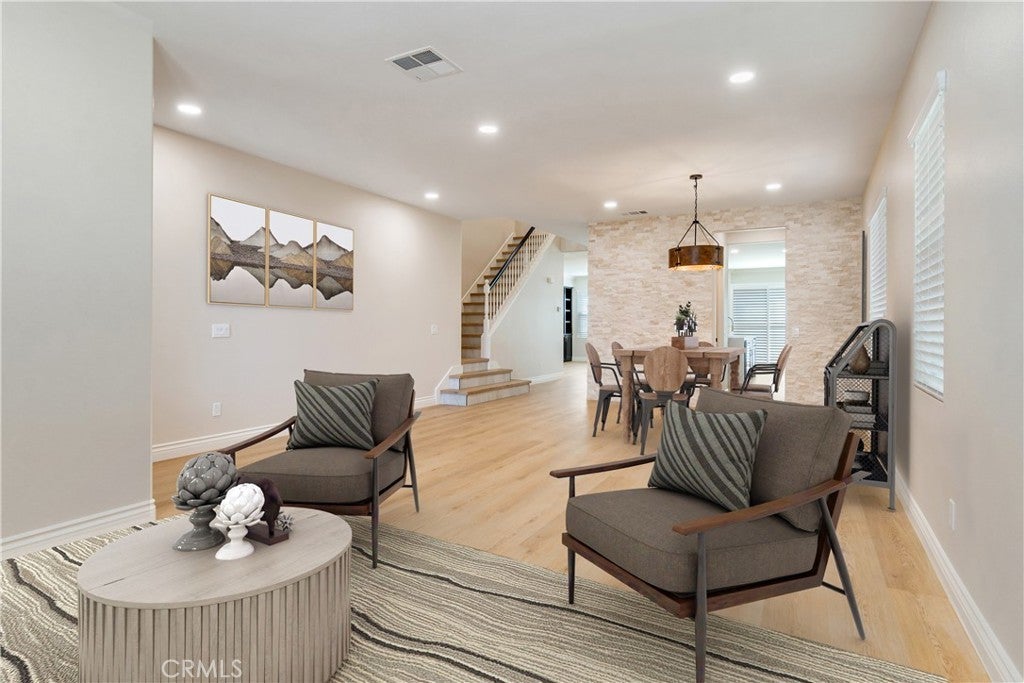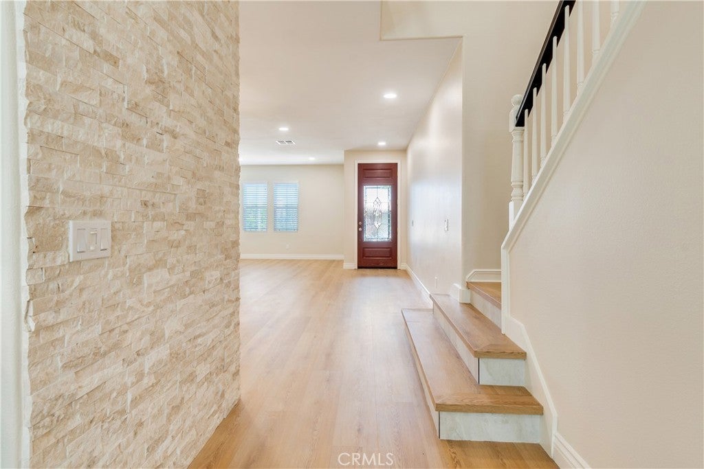 Welcome to 33827 Flora Springs St, a newly remodeled 5-bedroom, 4-bathroom home located in the highly sought-after Morgan Hill community of Temecula. With designer finishes, functional layout, and resort-style amenities, this home offers the perfect blend of luxury, comfort, and community living. Step inside and be welcomed by a spacious formal living and dining area, highlighted by a modern pendant light and an elegant stacked stone accent wall—setting the tone for the home's upscale yet inviting vibe. At the heart of the home is a chef’s kitchen, featuring: waterfall-edge Quartz countertops, new black stainless steel appliances, and upgraded plumbing and designer lighting fixtures. The open-concept design connects the kitchen to the cozy family room, complete with a custom built-in entertainment center, fireplace, and bookshelves—perfect for movie nights or relaxed gatherings. The property also received brand new AC system and LVP flooring in 2024. Downstairs features a private bedroom and fully renovated bathroom, ideal for guests, a home office, or an in-law suite. The bathroom has been completely redone with a custom, large-format stone shower, new vanity, and stylish finishes. Upstairs, you'll find four more bedrooms and three full baths, including a luxurious primary suite. The spa-inspired primary bathroom boasts a freestanding soaking tub framed by a stone accent wall, frameless glass-enclosed shower, and dual vanities with modern finishes. As a resident of Morgan Hill, you will enjoy access to a private three-acre community center, complete with a Clubhouse, swimming pool & spa, tennis courts, fitness center, game room, parks, trails & more. All of this for low HOA dues of just $119/mo.