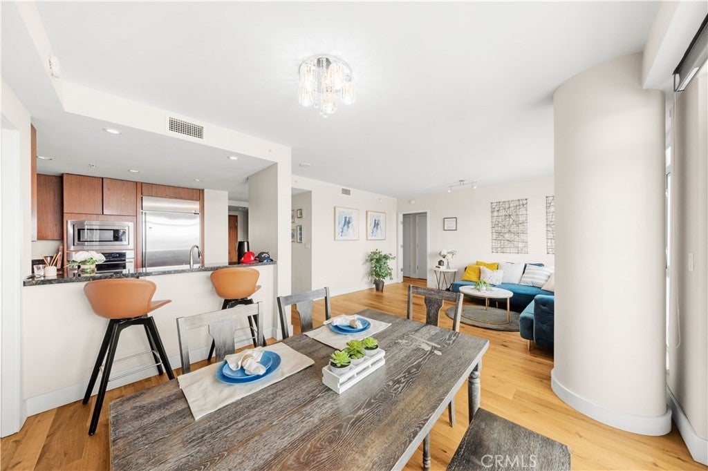 Welcome to enjoy urban living in this well maintained two-bedroom, two-bathroom plus den unit at Marquee at Park Place. It is on the 12th floor, breathtaking city light views and a thoughtfully designed open layout. The gourmet kitchen is outfitted with GE Monogram stainless steel appliances, granite countertops, and rich dark wood cabinetry, hardwood flooring for great room, dining room, bedrooms and den. The community offers an array of resort-style amenities, including 24-hour gated security, concierge services, a hotel style lobby, a complimentary coffee bar, a conference room, a fully equipped fitness center, a sparkling swimming pool, a spa, an outdoor BBQ area, and a children’s playground. The HOA covers water, gas, trash, and internet. walking distance to super market, shops and famous dining, and just minutes from UC Irvine, John Wayne Airport, South Coast Plaza, Fashion Island, Irvine Spectrum, and the 405 Freeway. Don't miss this opportunity.