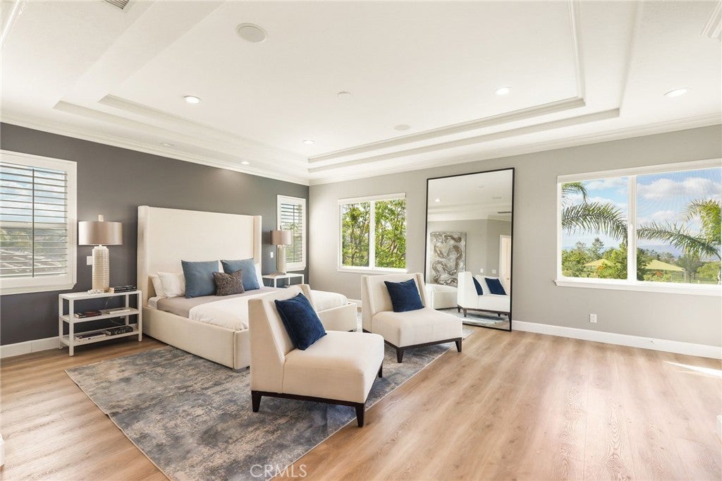 Welcome to this beautiful modern home in the heart of Porter Ranch located in the exclusive Renaissance community. The open floor plan seamlessly connects the kitchen, dining, and living areas. The designer kitchen features stainless steel appliances, built in refrigerator, custom oak shaker style cabinets, quartz countertops with enough barstool seating for 4. Adjacent to the dining room is a private room with wine fridge. Additional highlights include recessed lighting all throughout the home, paid off solar panels, security system and cameras, and 2nd-generation NEST thermostats. The massive primary suite offers a private balcony and an en-suite with beautifully laid tile, ample closet space, and a glass-enclosed shower. Each bedroom contains its own full sized bathroom. The backyard is built for gatherings with a pool, jacuzzi, BBQ pit, pergola covered patio for expansive seating, and nighttime views of the San Fernando Valley. Property is a short drive away from the The Vineyards at Porter Ranch, Porter Ranch Park and newly opened Jane and Bert Boeckmann Park. Priced to sell. Come see this home today!