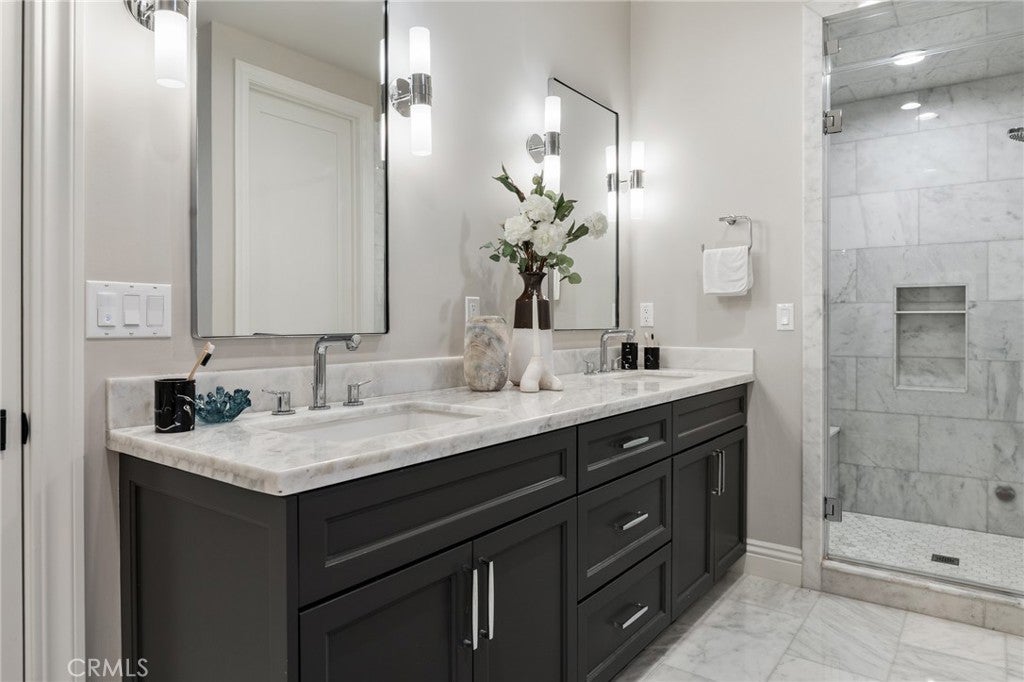 Welcome to this exquisite 5-bedroom, 4.5-bathroom custom estate located in the heart of Arcadia’s award-winning school district. Built in 2023 with unparalleled attention to detail, this 3,342 sq ft masterpiece offers modern comfort, luxury materials, and top-tier systems. Property Highlights: Elegant foyer with marble flooring and grand staircase. Designer dazzling crystal lighting throughout the home. Chef’s kitchen with premium natural stone-Quartzite island. Thermador appliances including 48" stove and electric oven, custom-paneled refrigerator & dishwasher . Separate Chinese and Western kitchens for versatility. Wet bar with Quartzite counters, marble backsplash, and built-in wine fridge. All bathrooms clad in marble — master bath features Quartzite tub surround & counters, a steam shower, Jacuzzi tub, and radiant marble floors. Pella wood-framed windows and doors add elegance and efficiency. Two-zone central AC, two tankless water heaters, water softener system. 20-panel solar system, two EV chargers, and epoxy-finished garage floor. Professionally landscaped around the house with a variety of flowers greenery and a lot of fruit trees. All of this just steps from Arcadia High School, close by Baldwin Stocker Elementary, and First Avenue Middle school — part of the top-tier Arcadia Unified School District. Don't miss this rare opportunity to own a like-new luxury home in one of Southern California's most desirable neighborhoods.