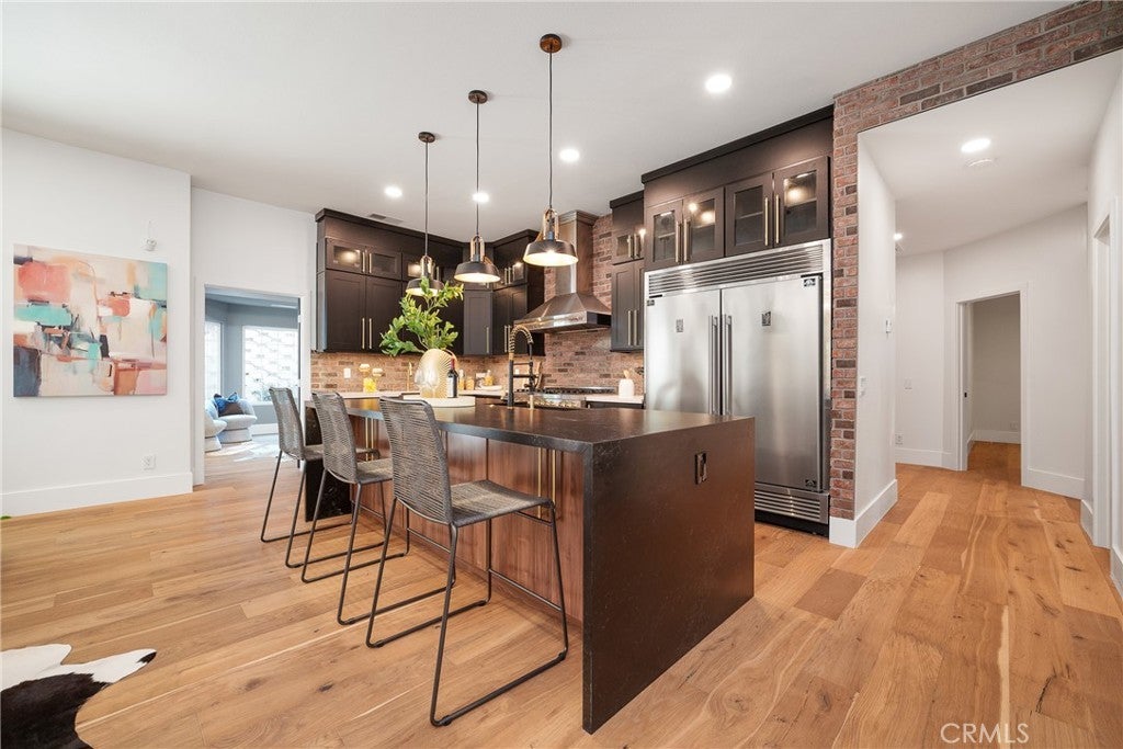 Exquisite Single Level Estate in Olinda Village with Breathtaking Canyon Views Discover the epitome of luxury living in this single-level estate, gracefully perched in the peaceful Olinda Village. Rebuilt in 2004, this home offers a blend of elegance and modern comfort, with its expansive great room that opens to breathtaking canyon views. The gourmet kitchen is a culinary dream, boasting a large island, farmhouse sink, and high-end appliances, including a double oven and warming drawer. The space extends into a grand dining area, complemented by a walk-in and butler’s pantry. The family room is perfect for cozy gatherings. The residence features a luxurious main bedroom suite with coffered ceilings, luxury wood flooring, and dual walk-in closets, leading to a backyard oasis through French doors. The ensuite bath promises a spa-like retreat with a jacuzzi tub and walk-in shower. Accompanying are four additional bedrooms with luxury wood flooring and unique bathroom amenities. Outside, the slate stone patio with an outdoor kitchen and lush garden provides a serene escape. The front porch, circular driveway, and elegant hardscaping add to the property’s allure. Set in a desirable community with top schools and no additional fees, this home is more than a residence—it’s a lifestyle. ***furniture removed**