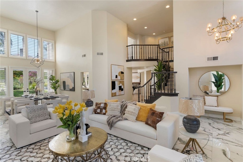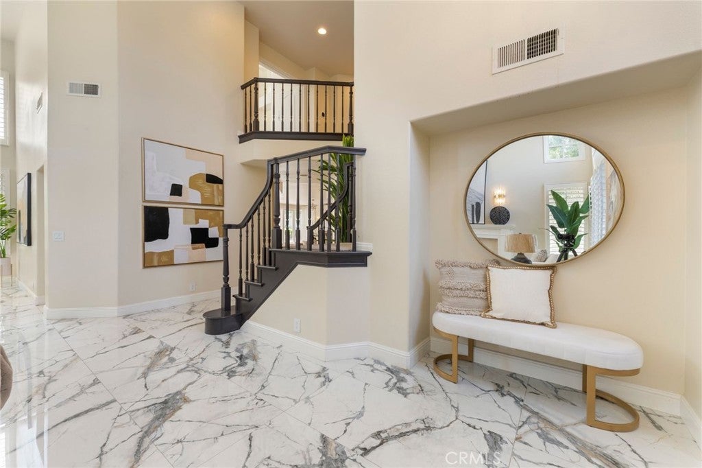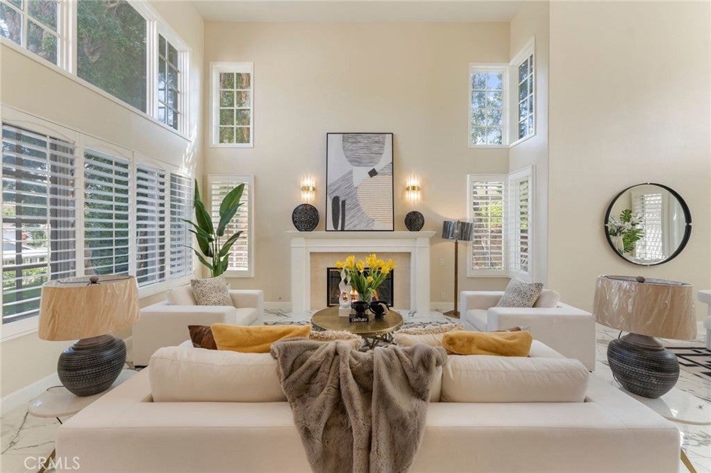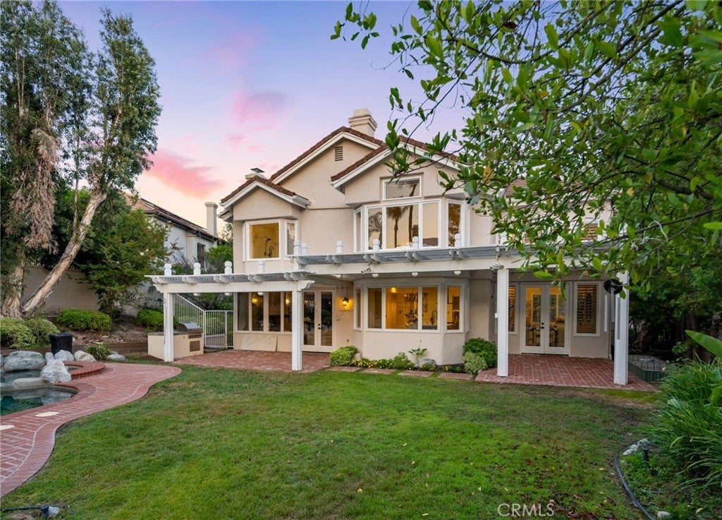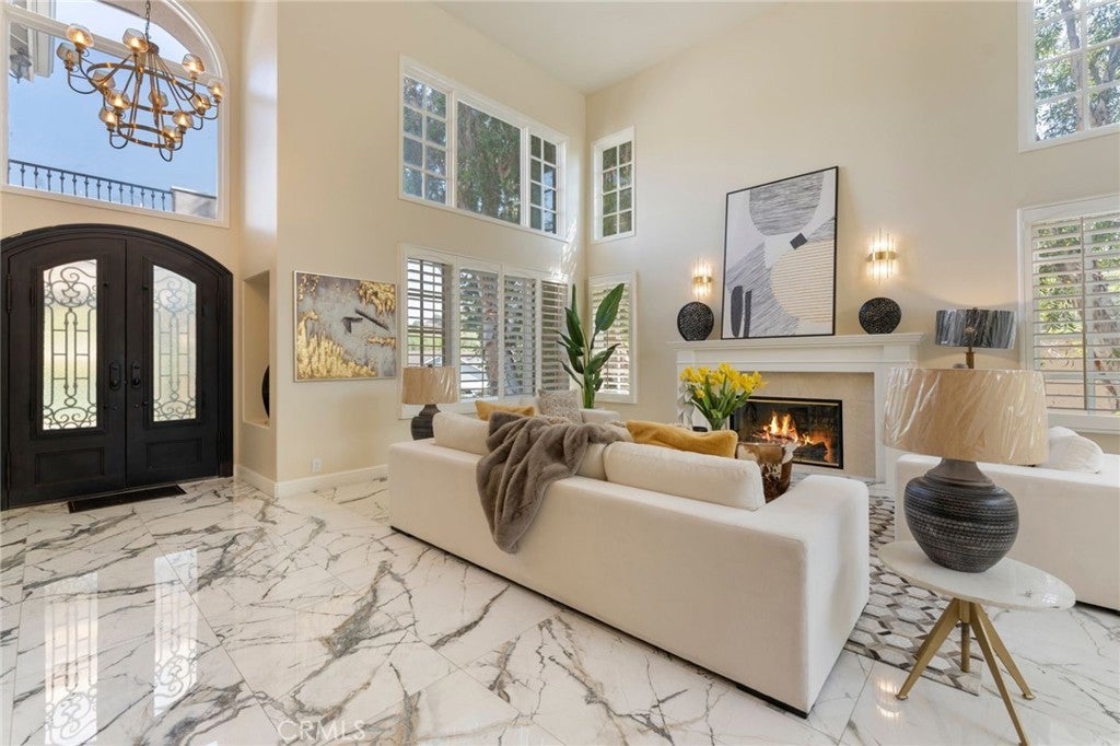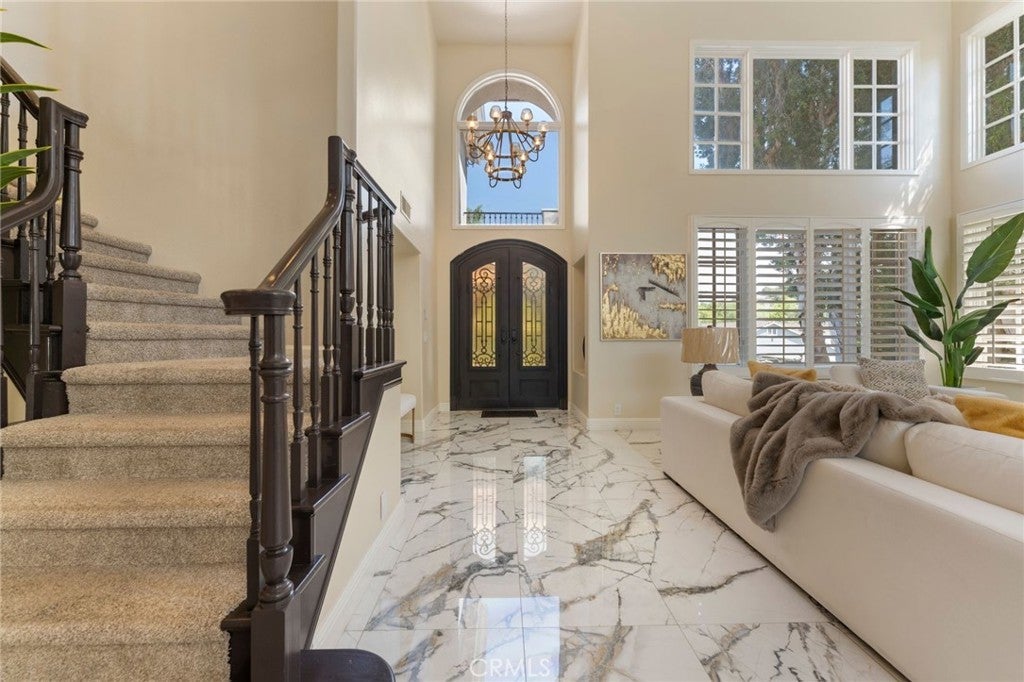 Stunning, fully upgraded residence offering 5 bedrooms, 4.5 baths and an oversized 3-car garage, privately positioned on an 11,050 sq ft lot inside the guard-gated community of Coto de Caza. A pair of 8-foot wrought-iron doors opens to an airy great room with cathedral ceilings, custom paint, a stone fireplace and imported Italian tile that flows into a formal dining room framed by French doors to the yard. The re-imagined chef’s kitchen showcases sleek European cabinetry, quartz counters, stainless-steel appliances, a center island, breakfast bar and walk-in pantry, seamlessly connecting to a generous family room finished with Danish hardwood floors, custom built-ins and a second fireplace overlooking lush greenery. A main-floor guest suite with full bath is perfect for visitors, while a dedicated laundry room and stylish powder bath add convenience. Upstairs, dual primary suites provide luxury retreats: one enjoys treetop vistas, a jetted soaking tub, spa shower, split touch-light vanities and custom walk-in closet; the other offers its own full bath—ideal for multigenerational living. Two additional bedrooms share an upgraded hall bath, and a fifth room flexes easily as an office, gym or nursery. Entertain outdoors beneath California skies in the beautifully landscaped backyard featuring redwood fencing, expansive brick patio, BBQ stub, citrus trees and plenty of lawn for play or pets. Modern systems include dual A/C units, high-efficiency furnace, dual water softeners, whole-house filtration, updated plumbing fixtures and LED lighting. The finished 3-car garage provides abundant cabinetry and overhead storage. Residents enjoy miles of hiking, biking and equestrian trails, two private golf courses, sports parks, pools and award-winning schools, all minutes to shopping, dining, toll roads and beaches. Low HOA and no Mello-Roos. This turnkey sanctuary blends timeless design with today’s most desired amenities—move right in and live the resort lifestyle!