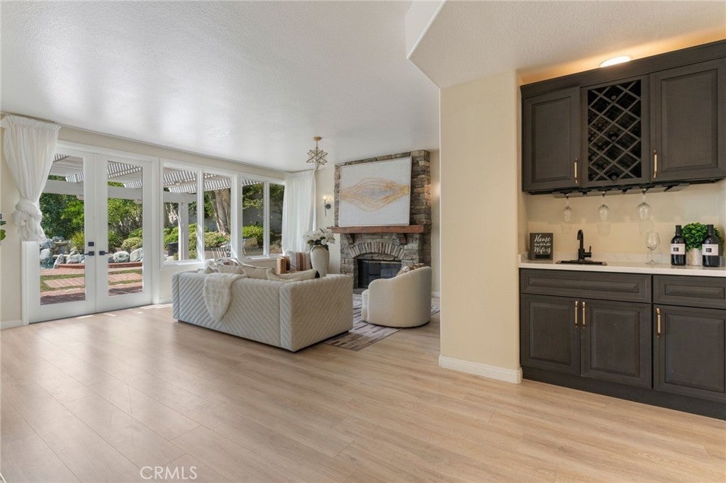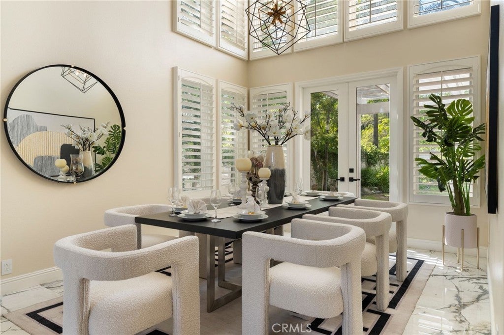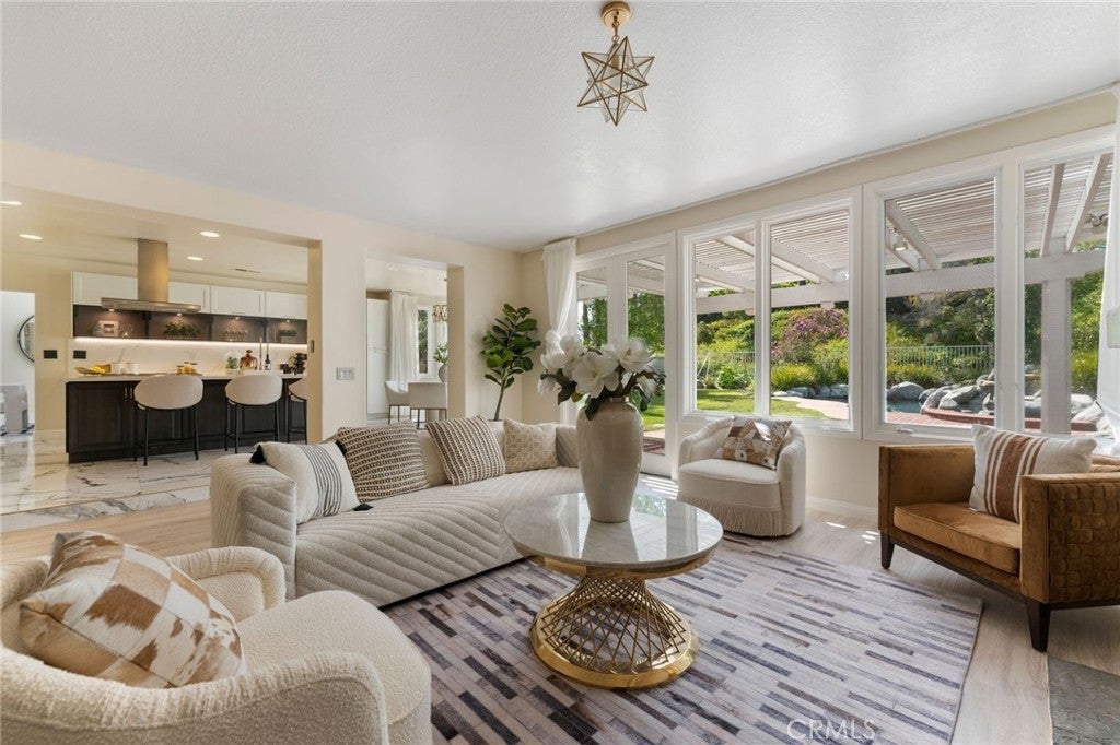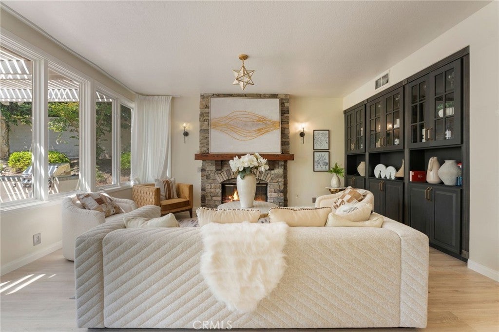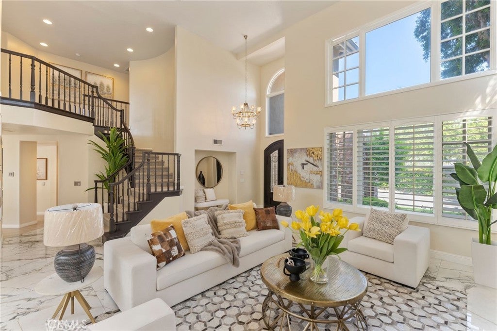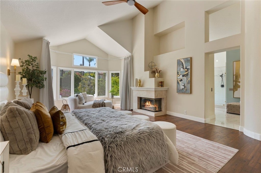 Stunning, fully upgraded residence offering 5 bedrooms, 4.5 baths and an oversized 3-car garage, privately positioned on an 11,050 sq ft lot inside the guard-gated community of Coto de Caza. A pair of 8-foot wrought-iron doors opens to an airy great room with cathedral ceilings, custom paint, a stone fireplace and imported Italian tile that flows into a formal dining room framed by French doors to the yard. The re-imagined chef’s kitchen showcases sleek European cabinetry, quartz counters, stainless-steel appliances, a center island, breakfast bar and walk-in pantry, seamlessly connecting to a generous family room finished with Danish hardwood floors, custom built-ins and a second fireplace overlooking lush greenery. A main-floor guest suite with full bath is perfect for visitors, while a dedicated laundry room and stylish powder bath add convenience. Upstairs, dual primary suites provide luxury retreats: one enjoys treetop vistas, a jetted soaking tub, spa shower, split touch-light vanities and custom walk-in closet; the other offers its own full bath—ideal for multigenerational living. Two additional bedrooms share an upgraded hall bath, and a fifth room flexes easily as an office, gym or nursery. Entertain outdoors beneath California skies in the beautifully landscaped backyard featuring redwood fencing, expansive brick patio, BBQ stub, citrus trees and plenty of lawn for play or pets. Modern systems include dual A/C units, high-efficiency furnace, dual water softeners, whole-house filtration, updated plumbing fixtures and LED lighting. The finished 3-car garage provides abundant cabinetry and overhead storage. Residents enjoy miles of hiking, biking and equestrian trails, two private golf courses, sports parks, pools and award-winning schools, all minutes to shopping, dining, toll roads and beaches. Low HOA and no Mello-Roos. This turnkey sanctuary blends timeless design with today’s most desired amenities—move right in and live the resort lifestyle!