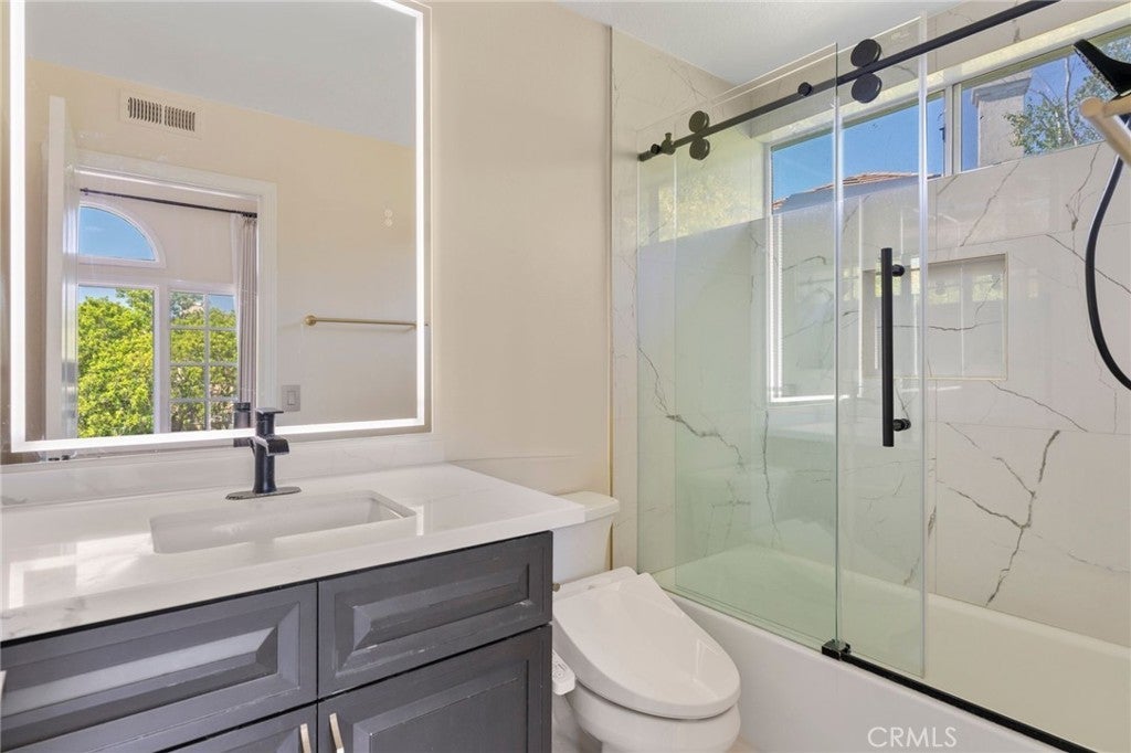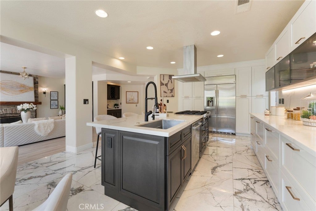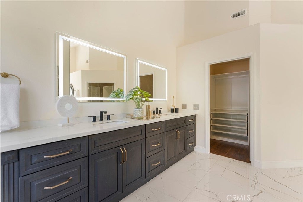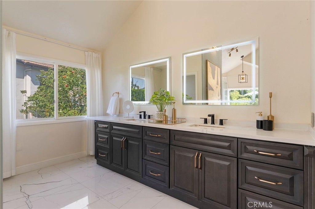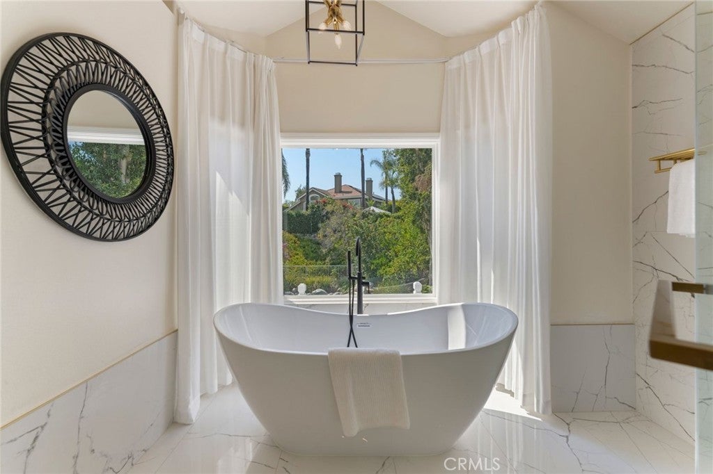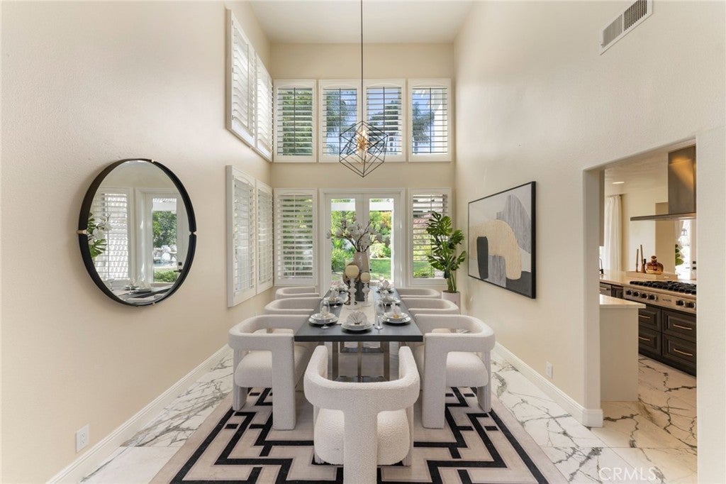 Stunning, fully upgraded residence offering 5 bedrooms, 4.5 baths and an oversized 3-car garage, privately positioned on an 11,050 sq ft lot inside the guard-gated community of Coto de Caza. A pair of 8-foot wrought-iron doors opens to an airy great room with cathedral ceilings, custom paint, a stone fireplace and imported Italian tile that flows into a formal dining room framed by French doors to the yard. The re-imagined chef’s kitchen showcases sleek European cabinetry, quartz counters, stainless-steel appliances, a center island, breakfast bar and walk-in pantry, seamlessly connecting to a generous family room finished with Danish hardwood floors, custom built-ins and a second fireplace overlooking lush greenery. A main-floor guest suite with full bath is perfect for visitors, while a dedicated laundry room and stylish powder bath add convenience. Upstairs, dual primary suites provide luxury retreats: one enjoys treetop vistas, a jetted soaking tub, spa shower, split touch-light vanities and custom walk-in closet; the other offers its own full bath—ideal for multigenerational living. Two additional bedrooms share an upgraded hall bath, and a fifth room flexes easily as an office, gym or nursery. Entertain outdoors beneath California skies in the beautifully landscaped backyard featuring redwood fencing, expansive brick patio, BBQ stub, citrus trees and plenty of lawn for play or pets. Modern systems include dual A/C units, high-efficiency furnace, dual water softeners, whole-house filtration, updated plumbing fixtures and LED lighting. The finished 3-car garage provides abundant cabinetry and overhead storage. Residents enjoy miles of hiking, biking and equestrian trails, two private golf courses, sports parks, pools and award-winning schools, all minutes to shopping, dining, toll roads and beaches. Low HOA and no Mello-Roos. This turnkey sanctuary blends timeless design with today’s most desired amenities—move right in and live the resort lifestyle!