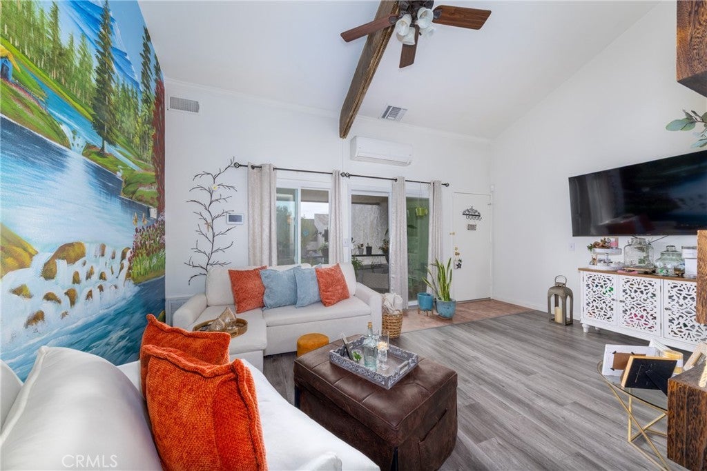 Huge Price Reduction!!!!Stylish Second-Floor Condo in Gated La Mirada Community with Resort-Style Amenities! Welcome to this beautifully updated studio condo nestled in a highly sought-after gated community in La Mirada! This second-floor unit boasts an open floor plan with vaulted ceilings, creating a light and airy ambiance throughout. Enjoy the modern feel of smooth ceilings, laminate flooring, and designer touches including ceiling fans and a stunning custom mural in the living area. Step out onto your private balcony and take in serene views of the green belt and pool, perfect for morning coffee or evening relaxation. The condo also features a new Anderson window and custom Anderson door, enhancing energy efficiency and style. The community offers resort-style amenities including a sparkling pool, jacuzzi, fully equipped gym, tennis courts, and lush green spaces. Ideal for first-time buyers, investors, or those seeking a low-maintenance lifestyle in a prime location. Don’t miss this rare opportunity to own a beautiful home in one of La Mirada’s best-kept
