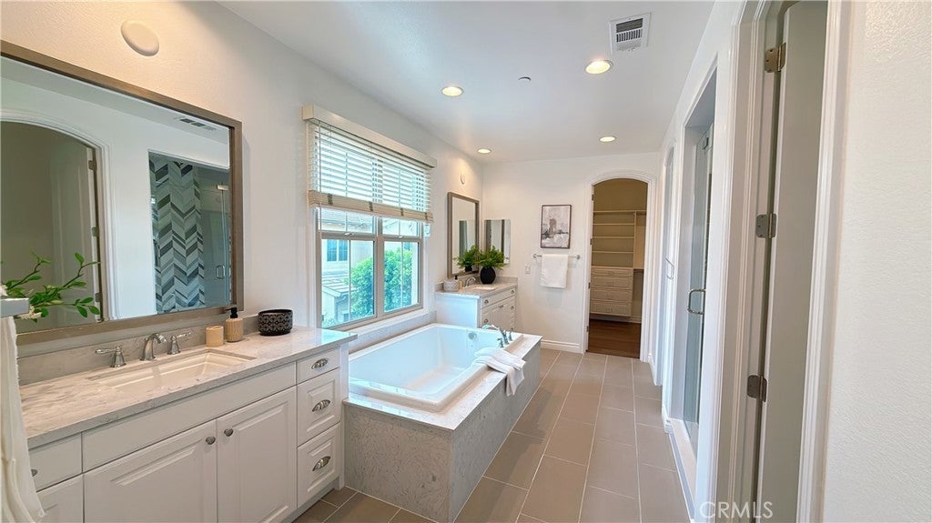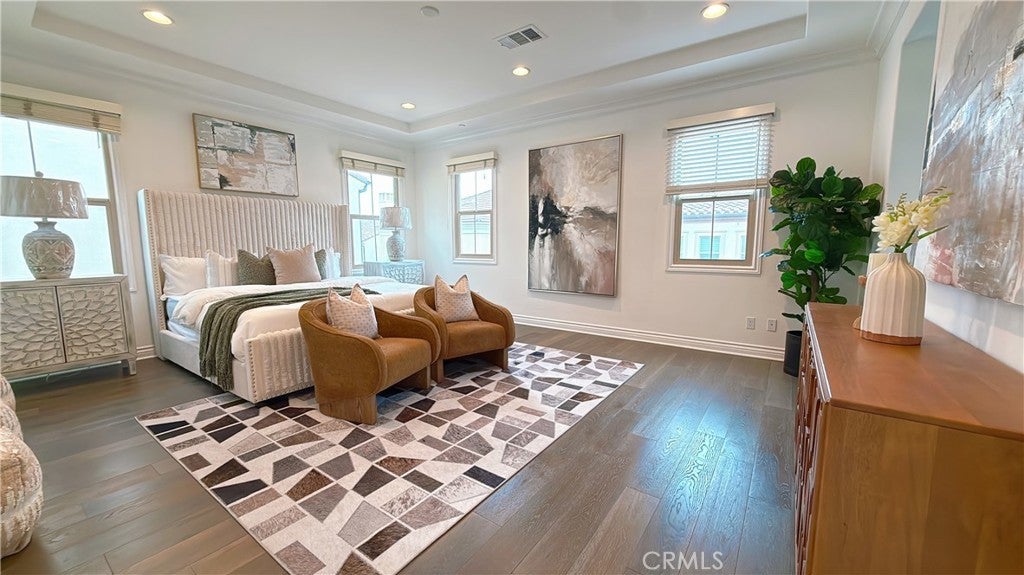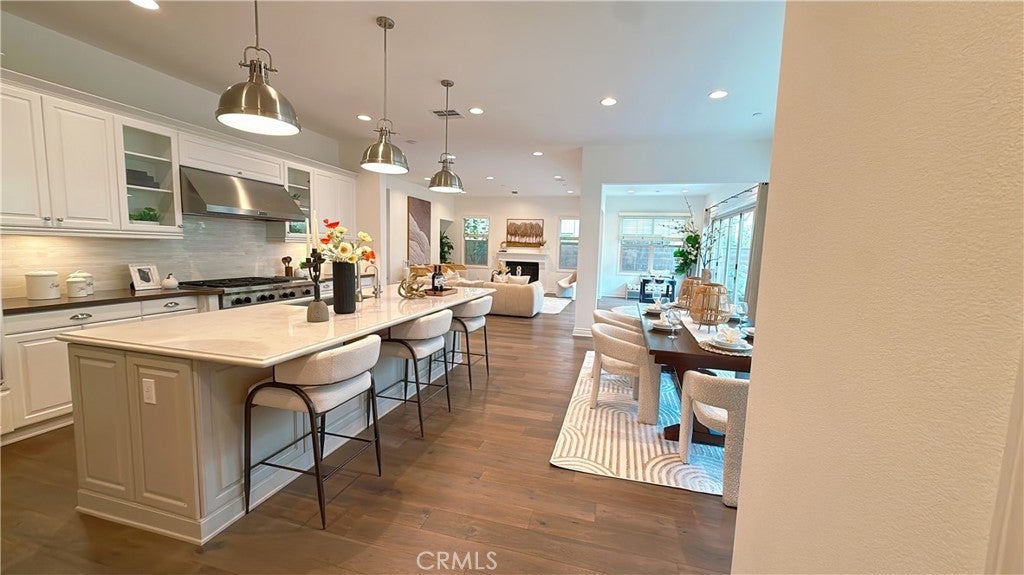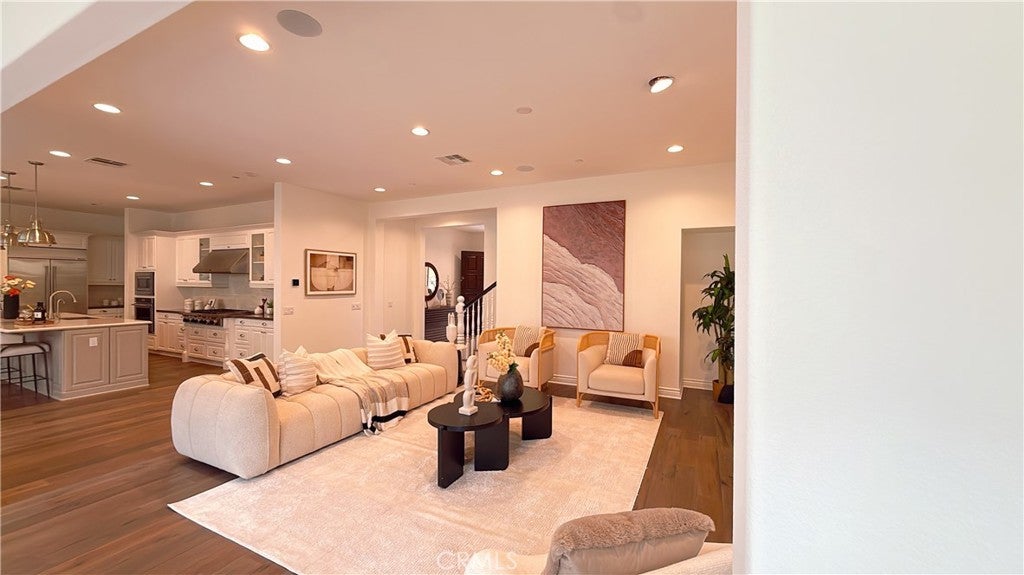 Exquisite Luxury Living at 54 Hearst, Irvine – A Stonegate Village Gem Nestled in the prestigious community of Stonegate Village in Irvine, this stunning 4-bedroom, 4.5-bathroom home with a loft offers the perfect blend of elegance, comfort, and modern functionality. Step inside to discover a gourmet chef’s kitchen designed to impress, featuring a large center island, quartz countertops, full stone backsplash, designer cabinetry, walk-in pantry, and top-of-the-line stainless steel appliances—including a refrigerator, 6-burner range, oven, microwave, and wine fridge. The open-concept main floor is ideal for both entertaining and everyday living, with a spacious living room, formal entry, and a seamless indoor-outdoor flow into the California room. A main-floor bedroom with full en-suite bath, beautiful wood flooring, cozy fireplace, and recessed lighting throughout complete the elegant ambiance. Upstairs, the luxurious primary suite showcases a tray ceiling with crown molding, a custom walk-in closet, dual vanities, a tempered glass shower, and a relaxing soaking tub. Each secondary bedroom includes its own en-suite bathroom, and the spacious loft offers flexible living space for a home office, playroom, or media area. Step outside to your cute, private backyard oasis, filled with charm and functionality—featuring more than 8 fruit and citrus trees that bring seasonal color, fragrance, and fresh produce right to your door. Whether you’re entertaining guests or enjoying a quiet morning coffee, this yard offers the perfect outdoor retreat. Sustainable upgrades include 9 solar panels, a tankless water heater, epoxy-coated garage floors, a long private driveway, and multi-sliding glass doors that enhance natural light and indoor-outdoor living. Community amenities include 7 parks, a soccer field, basketball court, 4 resort-style pools, 4 tennis courts, BBQ areas, picnic spots, and access to the scenic Jeffrey Trail—all conveniently located near award-winning schools, shopping, dining, and major freeways. Don’t miss this rare opportunity to own a designer home with a fruitful backyard in one of Irvine’s most desirable neighborhoods. Schedule your private tour of 54 Hearst today and fall in love with every detail. Solar is fully paid and included in the sale.