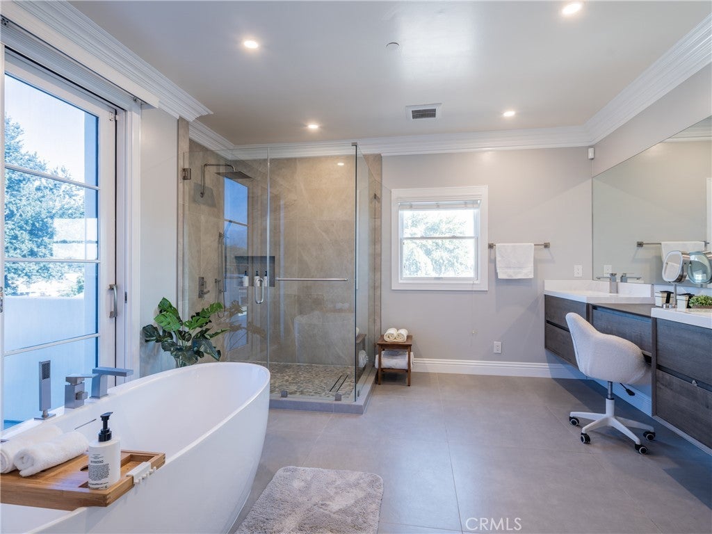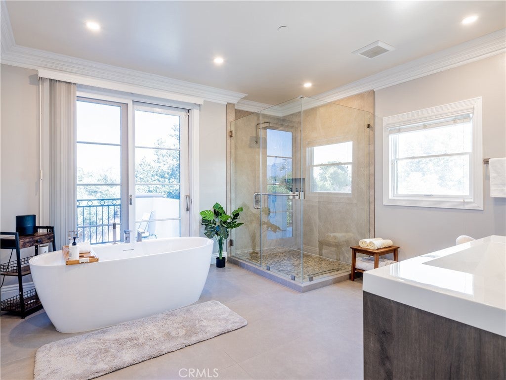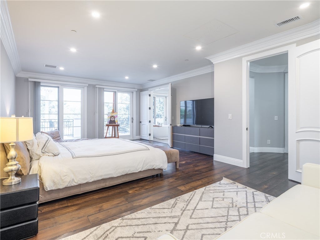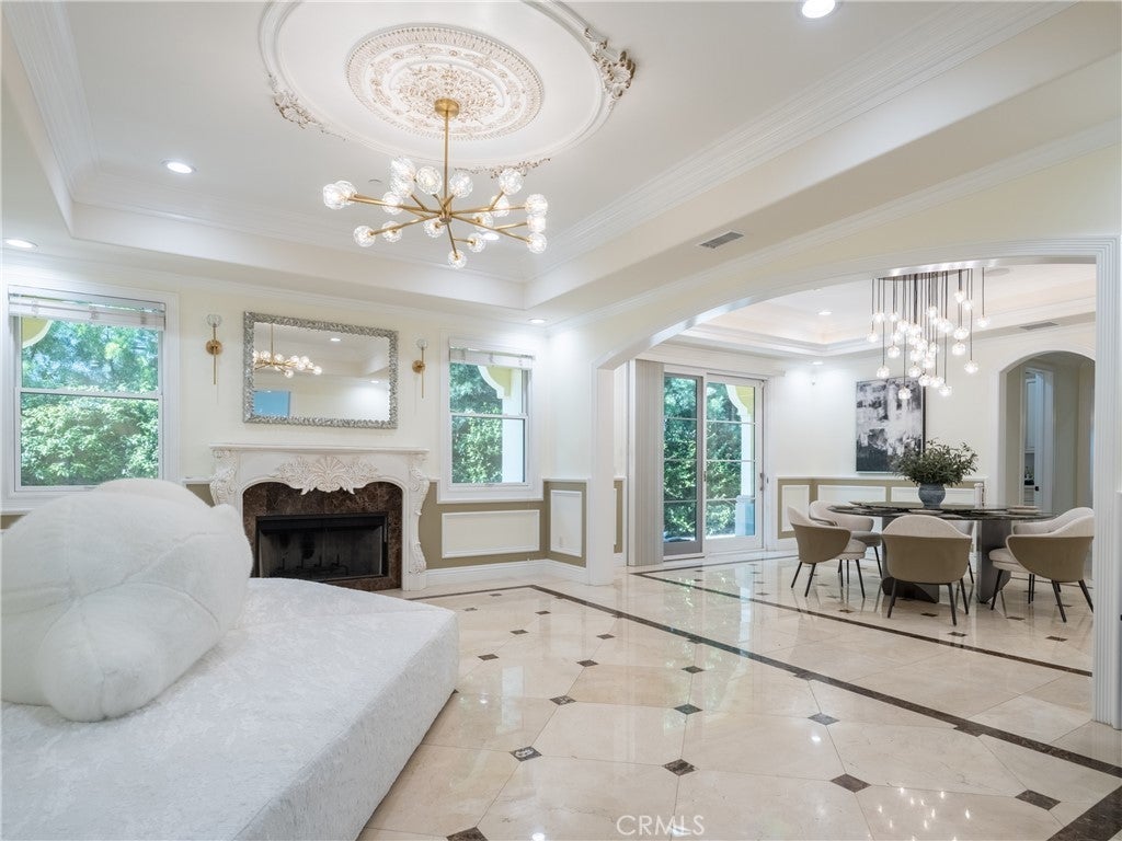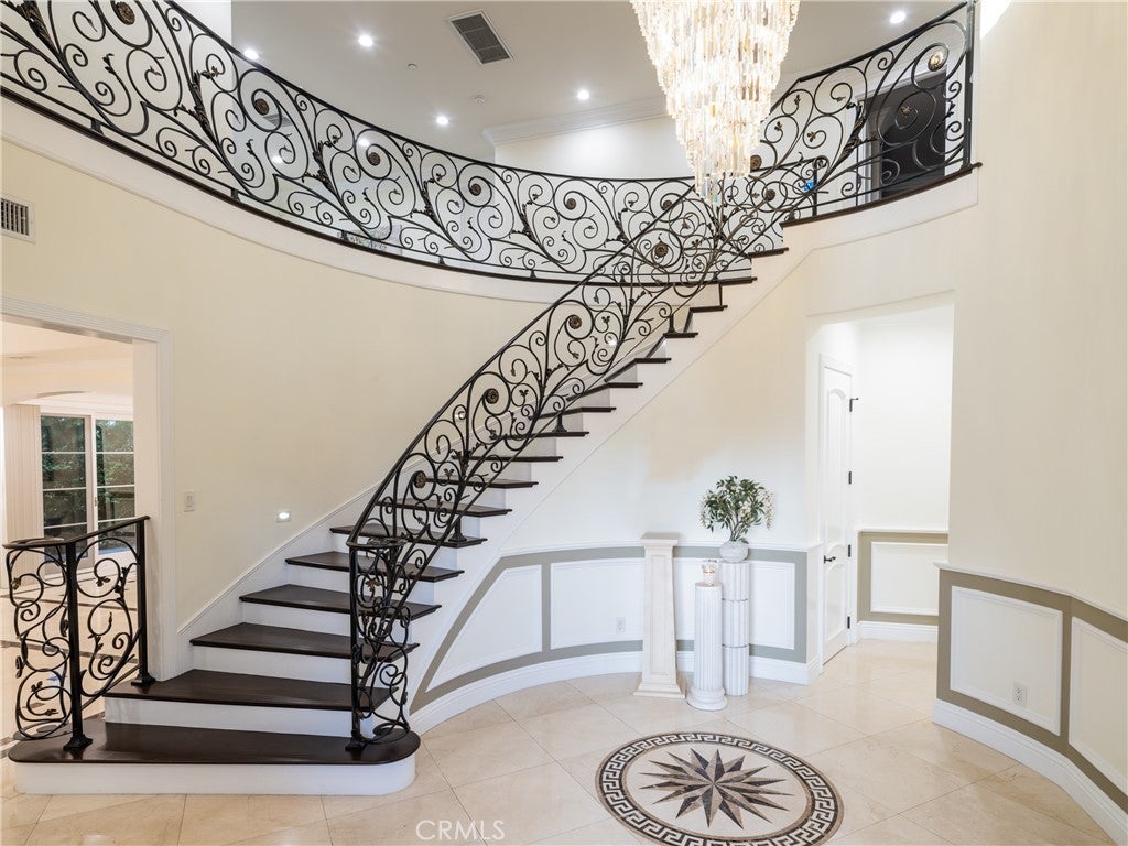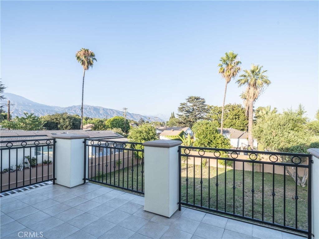 Situated in Arcadia’s desirable Mayflower Village, this elegant Mediterranean-style home sits behind its own automated front gate, offering both privacy and curb appeal. The layout features 6 en-suite bedrooms and a powder room, with two suites on the main level—one ideal for guests or extended family, and the other perfectly suited for use as a home office or study. A soaring two-story foyer opens to formal living and dining rooms, while the main kitchen includes a center island, walk-in pantry, breakfast area, and a separate wok kitchen for added flexibility. The family room with wet bar and wine fridge connects seamlessly to a covered patio and lush backyard, creating the perfect space for indoor-outdoor living. Additional highlights include a private home theater, an upstairs loft, and a luxurious primary suite with a private balcony offering beautiful mountain views, a sitting area, spa bath, and walk-in closet. A 3-car garage and well-planned layout make this home as functional as it is beautiful.