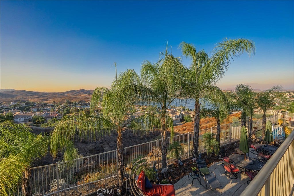 One of the Most Breathtaking Canyon Lake View Homes in the Tuscany Hills Community of Lake Elsinore! Welcome to 51 Via De La Valle, a beautifully crafted Mediterranean-style residence offering stunning, unobstructed views of Canyon Lake. Built in 2005, this expansive two-story home features 4 bedrooms, 2.5 bathrooms, and 3,493 sq ft of thoughtfully designed living space. From the moment you arrive, you’ll be captivated by the home’s architectural charm—including an arched entryway and a beautifully landscaped front yard. Inside, the layout is perfect for both everyday living and entertaining. The main level offers a formal living room with a cozy fireplace, a formal dining room, and a modern kitchen equipped with granite countertops, an oversized custom island, abundant cabinetry, and a Butler’s pantry. The kitchen opens seamlessly to a spacious family room with an enjoyable fireplace, creating a comfortable and inviting gathering space. Upstairs, all four bedrooms are generously sized, providing comfort and flexibility for any lifestyle. The versatile upstairs retreat, currently used as a family entertainment room, could easily be converted into a fifth bedroom. The luxurious primary suite is a true haven, featuring a custom walk-in closet and panoramic lake views you can enjoy year-round—including snow-capped mountains in the winter. Step outside to your resort-style backyard on a 10,890 sq ft lot, where you'll find two patio areas, mature landscaping, a custom-designed waterfall, citrus trees, and swaying palms—perfect for relaxing, entertaining, or simply taking in the peaceful surroundings. Additional highlights include a 3-car garage/Casita, central A/C, and access to the exceptional Tuscany Hills amenities, including a clubhouse, pool and spa, fitness center, tennis, pickleball and basketball courts, BBQ area, and playground. With convenient access to the 15 freeway, this home is perfectly situated for both daily commuting and weekend getaways. Don’t miss this rare opportunity to own a luxurious view home with top-tier community features in one of Lake Elsinore’s most sought-after neighborhoods!