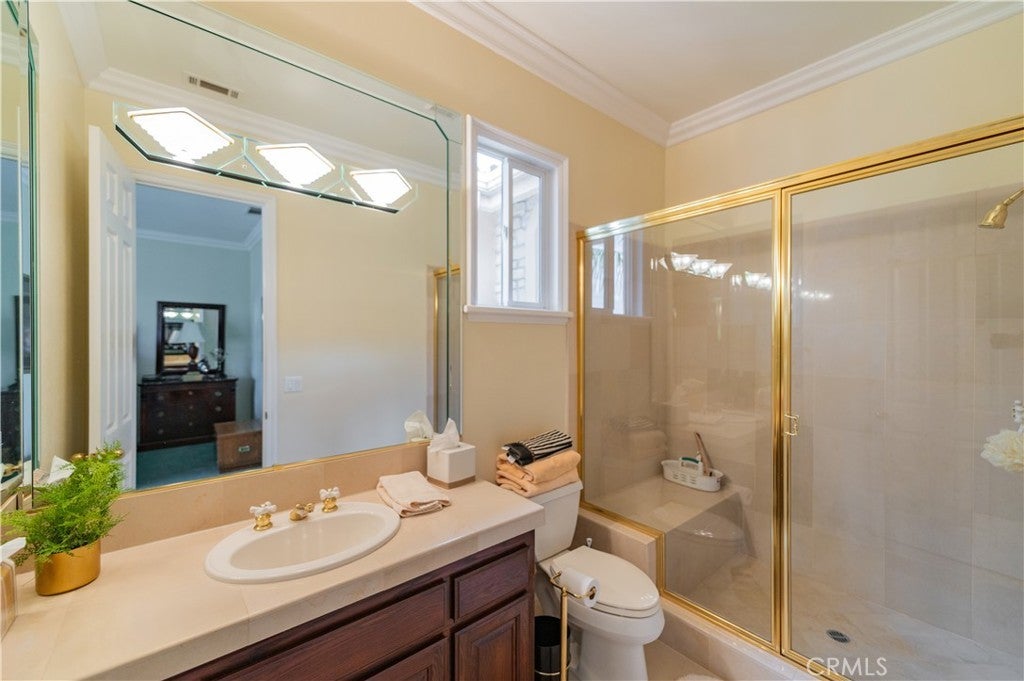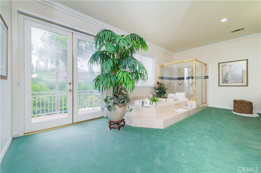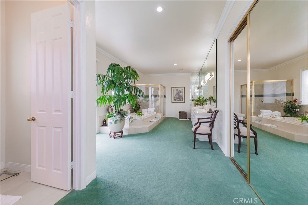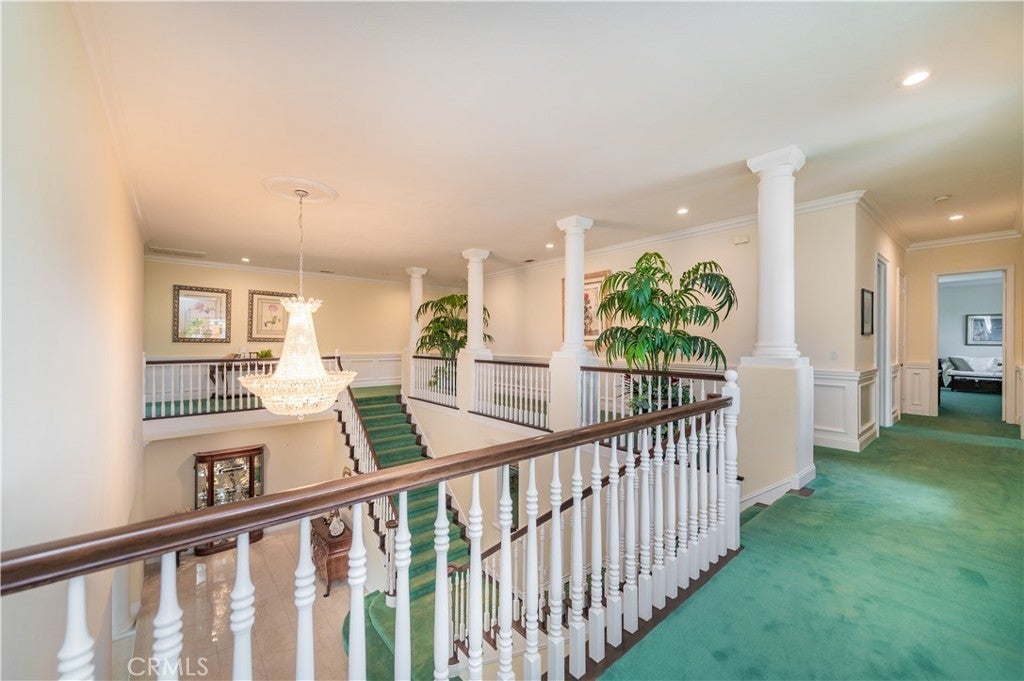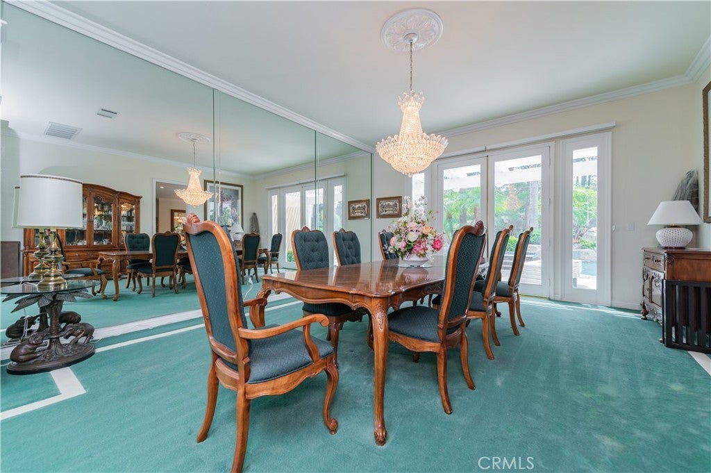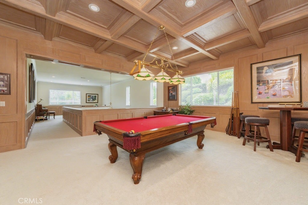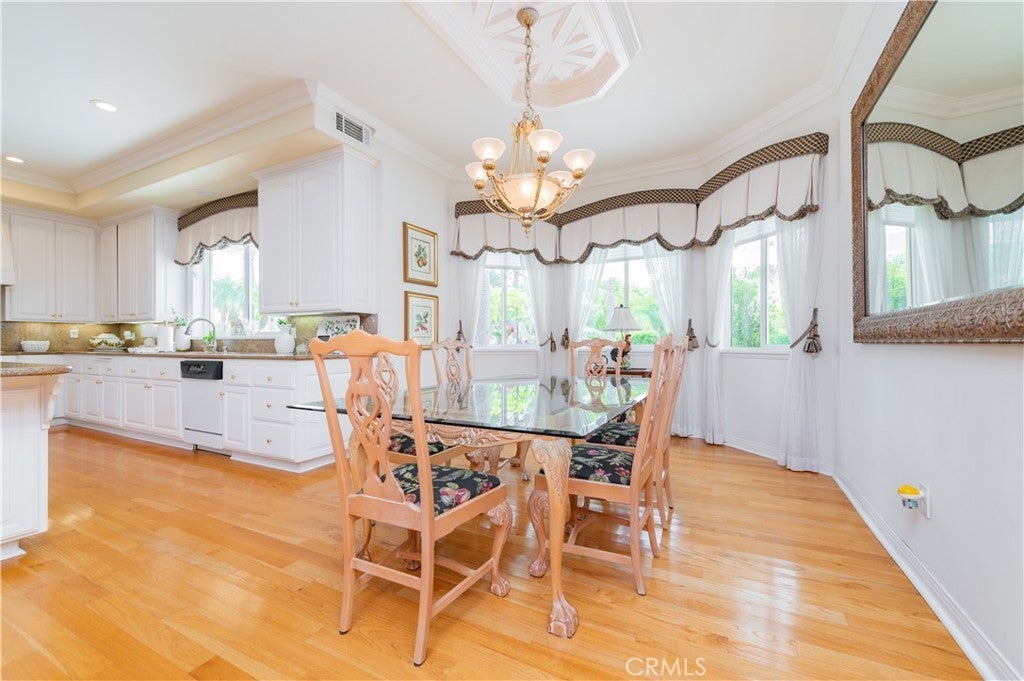 This exceptional estate, with original owner, located in the prestigious gated community of The Country, spans two parcels and boasts six luxurious bedroom suites, offering unparalleled comfort and privacy. An office with a full bath that can be used as the second downstairs bedroom suite, and an elegant, well-appointed powder room conveniently located between the formal living room and spacious family room, making it ideal for entertaining. A dramatic two-story grand entry with a crystal chandelier welcomes you. Wide double staircases leading to different sections of the upper level set an impressive tone upon arrival. The formal living and dining rooms provide generous spaces for gatherings, while the family room is equipped with a custom-built-in entertainment center and is seamlessly connected to the large open kitchen, breakfast nook, a couple of cozy conversation sitting areas, and a gorgeous wet bar with a table for wine tasting. The gourmet kitchen is a chef’s dream, complete with dual center islands, custom cabinetry, and an adjoining wok kitchen for added culinary flexibility. Enjoy casual dining in the bright breakfast nook, perfectly situated off the open kitchen layout. Designed for both everyday living and grand entertaining, this home offers a thoughtfully designed floor plan that encourages flow and connection. Crown molding throughout the home. Wide and open upper-floor hallway with wainscot paneling. The upstairs laundry room is conveniently located near all bedrooms, and a bedroom-sized storage room provides ample space for seasonal décor and miscellaneous items. An expansive bonus area with paneled ceiling and walls is ideal for billiards, gaming tables, or displaying collectibles, offering endless opportunities for leisure and personalization. Custom window coverings throughout the home add a refined finishing touch. Outside, the professionally landscaped grounds are a true oasis, featuring a resort-style pool and spa, gazebo, fire pit, flagstone walkways, tastefully placed plants, flowers, and many mature trees, plus a large grassy area perfect for recreation or relaxation. A four-car garage with built-in cabinetry ensures ample parking and organized storage. This residence combines elegant design, practical functionality, and luxurious amenities — perfect for those who love to entertain and live in comfort.