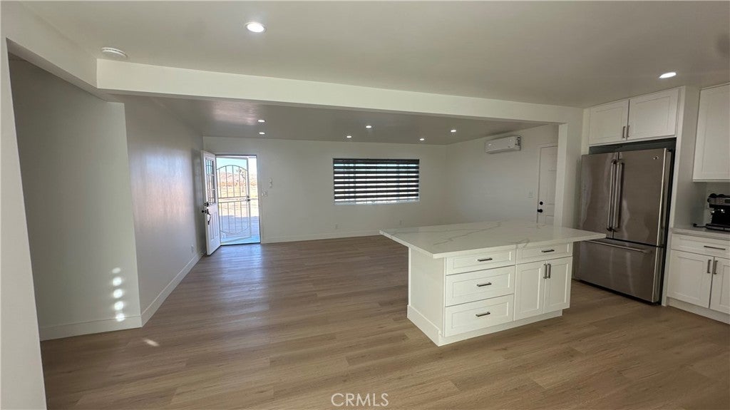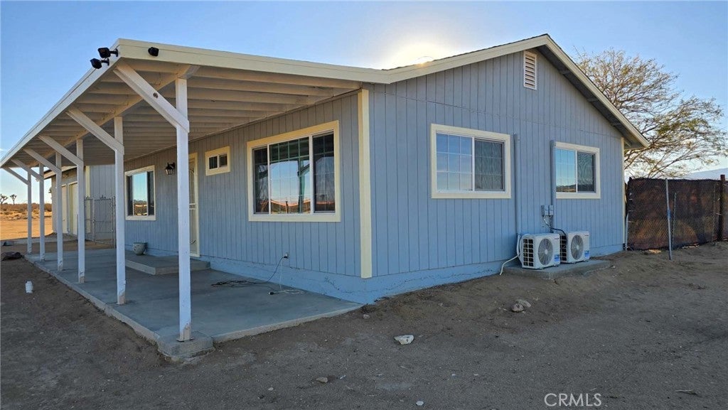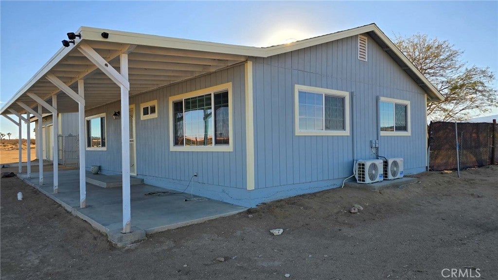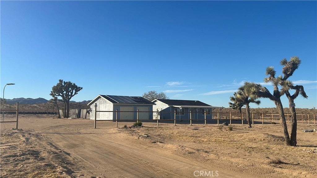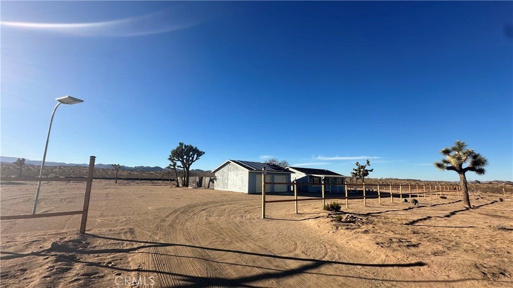 Total remodeled beautiful single story house sits on a 2.5 arcs lot in a peaceful quiet Yuca Valley neighborhood. New roofs, walls with new insulation, all new electrical wirings, new water piping, new windows, big front porch welcomes you into the huge open all purpose living/family room with recess lights, new laminated water proof wood look flooring through out the entire, brand new kitchen with a granite island opens to the grand room, two good size bedrooms with newly remodeled modern bathrooms, the entire house windows covered with luxury modern blinds, three split AC/heating units keep the entire house cozy all year long, the best of all, you won't need to spend a penny for the electricity bill since the house powered with Solar which paid off. Hurry to fill in your personal touch to make this home a sweet home.