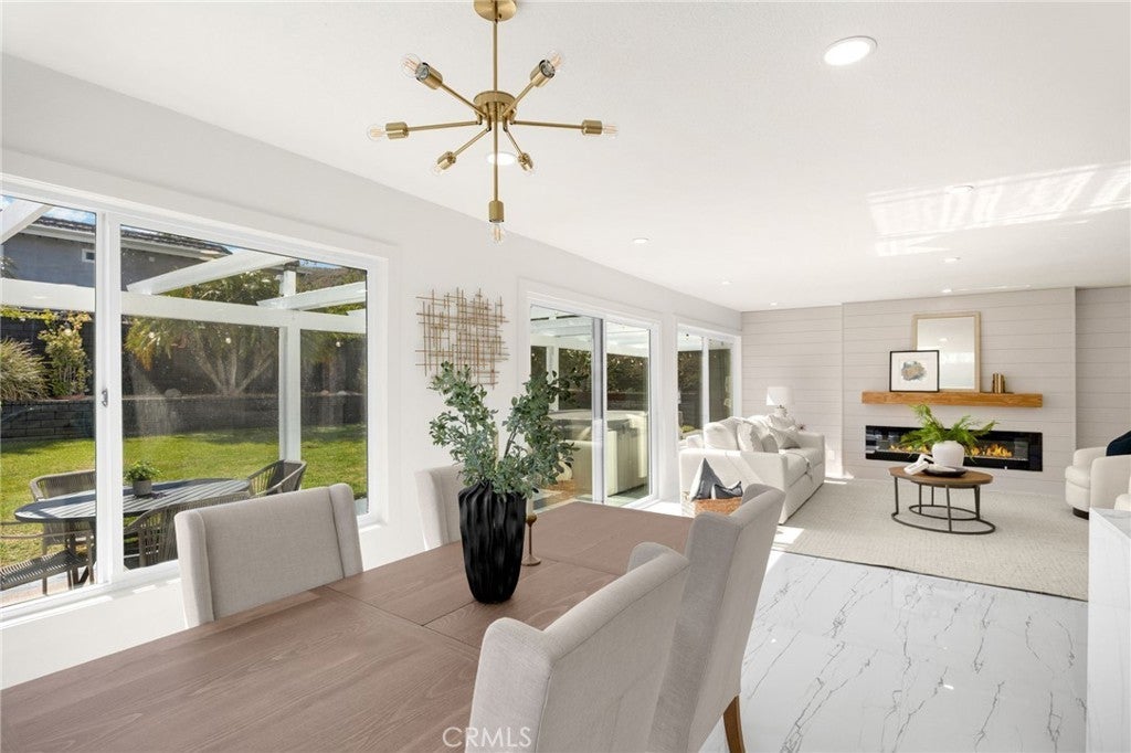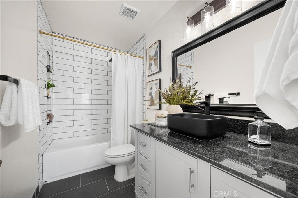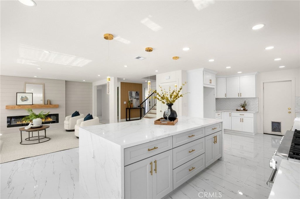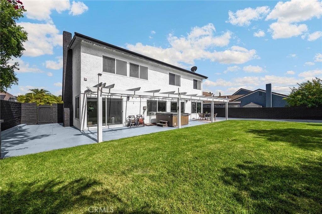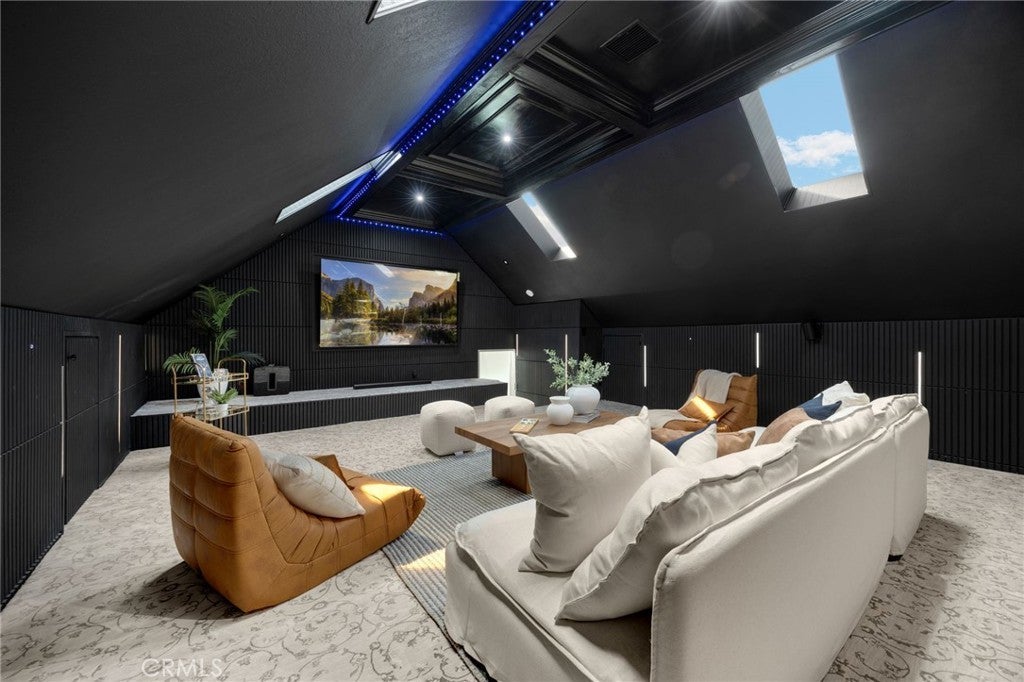 Welcome to this beautifully remodeled modern-contemporary home, an exquisite residence in the prestigious Travis Ranch community of Yorba Linda. Step inside to discover a spacious upgraded kitchen with all-new Thor appliances, a bright dining nook, and French doors opening to a backyard BBQ island—perfect for hosting gatherings. The main level includes a dedicated office nook and a guest bedroom with a fully remodeled bathroom. Upstairs, the grand master suite offers a private retreat with a luxurious en-suite bath and brand-new his-and-hers closet organizers, complete with vanity and ample storage. The crown jewel of this home is the spectacular bonus theater room—designed with a SONOS home theater system for a true cinematic experience with space for plush seating, large-screen viewing, and immersive surround sound. Whether it’s a movie night, game day, or streaming your favorite shows, this versatile bonus room delivers a complete home theater experience by night and transforms into a playroom by day. Three additional bedrooms and a second beautifully updated bathroom complete the upper level. In total, the home offers 5 bedrooms plus an office and a media (home theater) room—7 rooms in all. Outside, the meticulously landscaped backyard features an above-ground spa and a spacious patio for alfresco dining. Located in a serene neighborhood near top-rated schools, shopping, dining, and parks, this home perfectly blends style, comfort, and entertainment in “The Land of Gracious Living.”