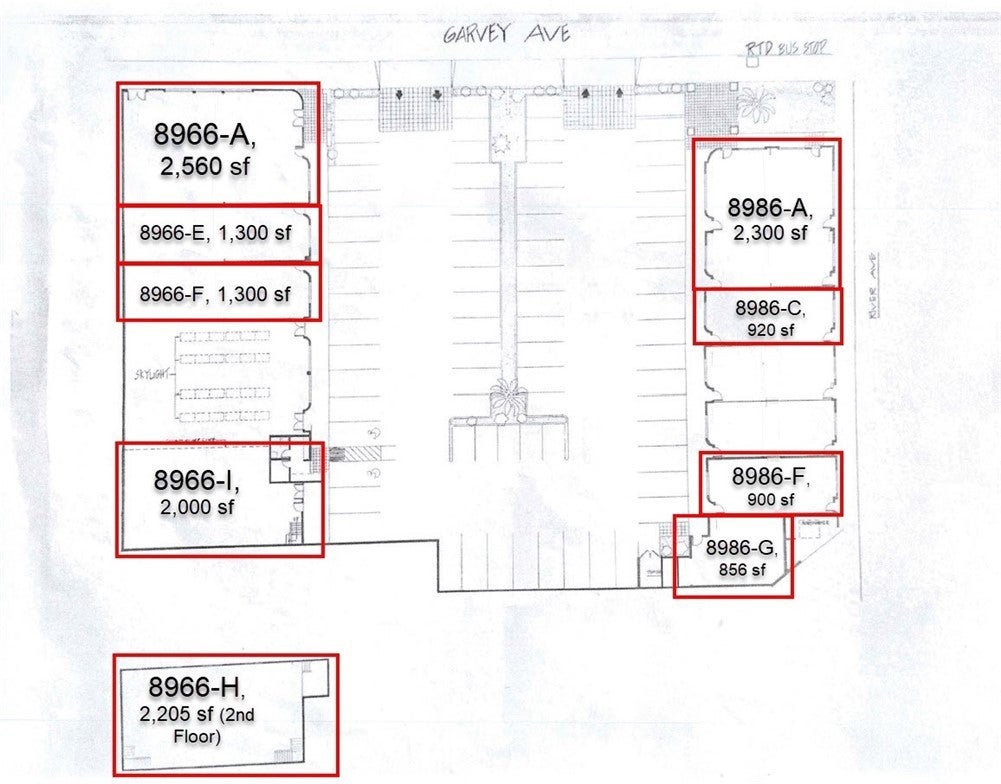8966-H (2nd Floor Unit), 2,205 SF. RETAIL or OFFICE USE READY. FORTRESS PLAZA is a 11 units neighborhood Restaurant and Retail development located in Rosemead. Anchored by well known famous tenants such as: Da Vien Coffee, Bake & Che', Hot Stone Pho' and many more. BRAND NEW CONSTRUCTION WITH NEW MODERN EXTERIOR DESIGN AND PARKING LOT (72 Parking Stalls). Approx. 17,745 Rental SF and 42,538 SF of Lot Size. ** 750 SF of Outdoor Patio Seating Area. C-3 Zoning. ** ALL UNITS CAN BE CONVERTED TO RESTAURANT USE!!! Available unit sizes between 856 SF to 2,205 SF. Signalized Intersection. Southwest corner of Garvey Ave. and Rosemead Pl. (Los Angeles County). Ample Free Parking Spaces. Easy access to Freeway 10 and 60. Traffic Count: approx. 23,465 cars per day (Corner of Garvey Ave./ Rosemead Pl.)